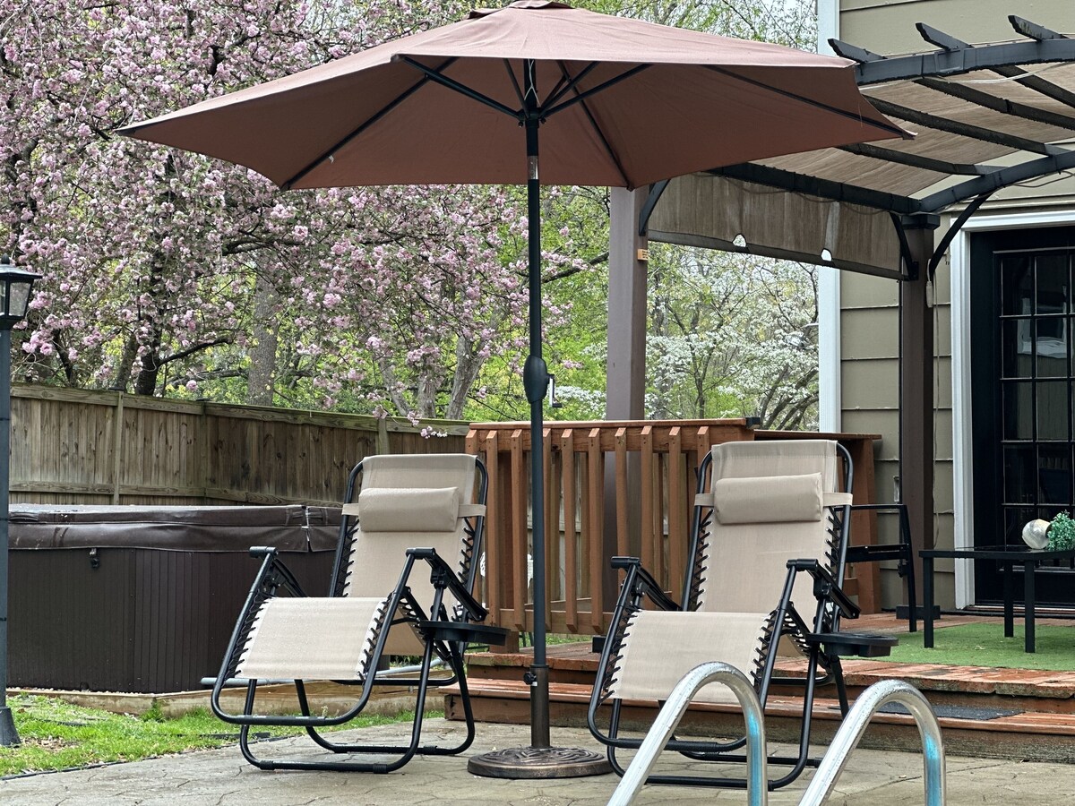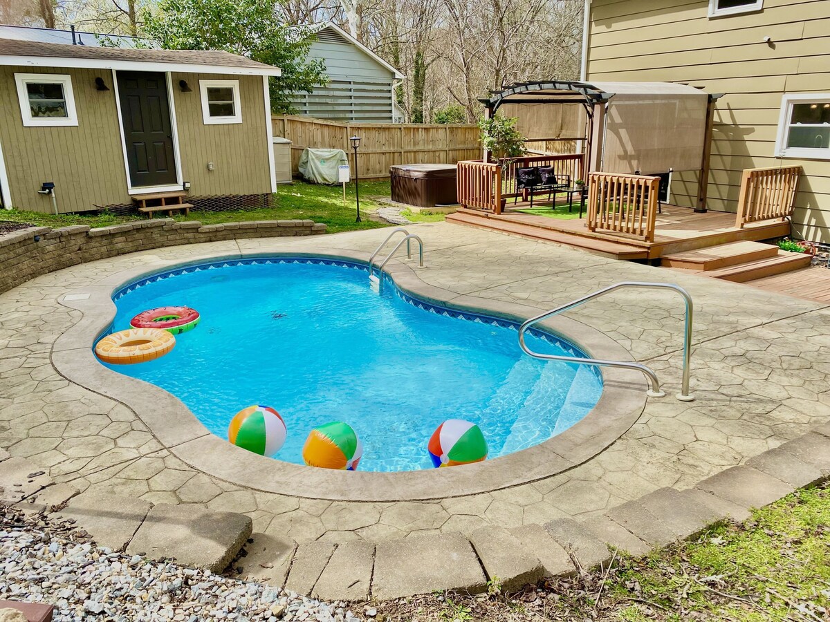 Did you say pool and hot tub? Why yes, I did! Feast your eyes on this new stunning home with a private pool (open March - October) and hot tub (open all year round). The property is 15 minutes from RDU airport and in close proximity to Downtown Raleigh (8 miles) and Downtown Durham (19 miles). This location makes it close to many popular destinations such as PNC arena, Umstead Park, NC State, Duke, UNC, RTP and many more attractions. Most places can be reached in 20-30 minutes! Our prices include all fees. No hidden fees.