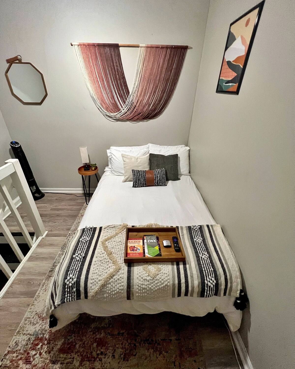 Luxe Loft on Ashe is located in the heart of Downtown Raleigh! It’s within walking distance to Western Blvd, NC State, & Hillsborough Street!⚡️Smart Roku TV, board games, free wifi, & Keurig coffee/tea station! ✨5 minutes to Glenwood Ave (nightlife) ✨5 minutes to Morgan Street Food Hall ✨6 minutes to Cameron Village (shops & restaurants) ✨10 minutes to PNC Arena ✨20 minutes to RDU Airport 🎉At 250 sq. ft it’s perfect for a weekend getaway, staycation, or for traveling professionals! Our prices include all fees. No hidden fees.