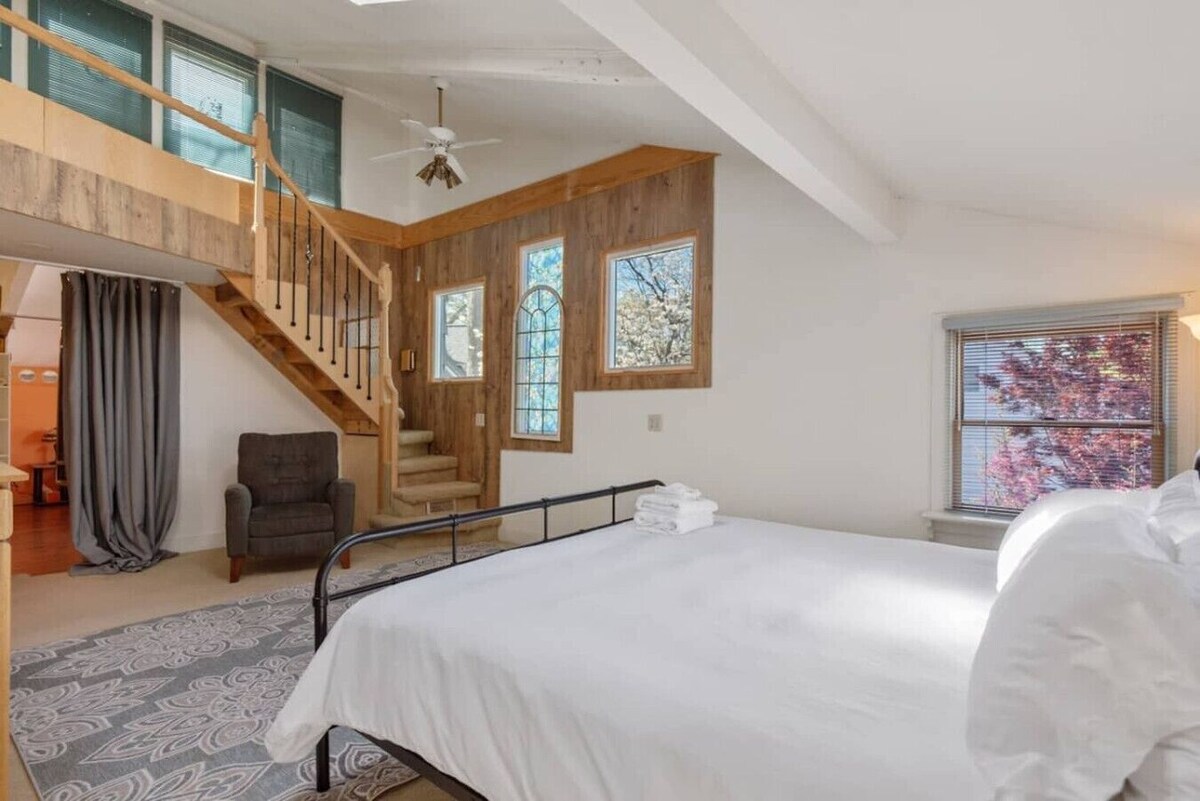 Book your fall stay at the Raleigh Mill House—a handcrafted 4BR/2.5BA guesthouse featured in HBO filming and local press. Designed by a local artist, it blends exotic woods, reclaimed architecture, and Raleigh history. Nestled in a lush garden behind a 1920s landmark and walkable to Five Points, it offers spiral staircases, koi ponds, and custom details. ~Sleeping Areas~ *Sleeping area 1: Master bedroom *Upstairs *King sized bed (sleeps two) *12 Inch Memory Hybrid Plush-Individually Encased Coils-Edge Support-Quilted Foam Cover Mattress *Walk in, cedar-lined closet *Stand alone stall shower *Vanity, toilet, bidet *Lots of windows and natural light (20 windows in this room!) *Heavy curtains close off the master bedroom for privacy Sleeping area 2: Sunrise bedroom *Upstairs *Queen bed (sleeps two) *12 Inch Memory Hybrid Plush-Individually Encased Coils-Edge Support-Quilted Foam Cover Mattress *Full hall bathroom nearby *Heavy curtains close the sleeping area for privacy Sleeping area 3: Garden Bedroom & Office *Downstairs *Double bed (sleeps two) with memory foam mattress *Desk and chair Sleeping area 4: Converted Laundry room *Upstairs *Double bed (sleeps 2) *Stackable washer and dryer *Heavy curtains close the sleeping area for privacy Sleeping area 4: Living room *Downstairs *Couch (sleeps one) *Queen air mattress (sleeps two) The Raleigh Mill House incorporates architectural features from the California Mill Valley as well as stained glass windows and trim carpentry made from rare woods. At center stage in the living room are large circular windows that once graced the towering heights of the NC State King Center and were rescued by the home`s designer just as it was being demolished. The home itself is planted in the midst of what is essentially a botanical garden, with meandering stone pathways, and is set behind a historic 1920s home (Listed on the National Register of Historic Places) in the Historic Bloomsbury district of Raleigh Five points, where it`s current owners and caretakers live. Features, not one, but two winding staircases and a beautiful custom handrail to match. Put the finishing touches on your work project in the office built from reclaimed wood. Or, gaze out at the stars on a cool fall night through the skylights as you lay on the king size bed in the master bedroom. This is not your standard, run of the mill (no pun intended) short term rental. This is an opportunity to stay in one of the coolest homes in Raleigh. Extra touches: Bidet (stand alone) Saloon style doors to enter the Master Bedroom Double shower heads Rainfall shower heads Grass cloth wallpaper All linens are washed thoroughly after each visit. All pillows and mattresses are encased with waterproof and bed bug proof protectors. Guests should park in the driveway (no street parking please). Guests can explore the yard, but please be sure to stay on the stone paths and not disturb the plants. Feel free to look into the koi pond (please do not climb on the rocks or feed the fish). Guests may use the backyard firepit area. There is no greenhouse access for guests. Landscapers and mosquito sprayers may access the exterior of the home to do their job, but will not need to enter the home. Please send us a message in the app if you need anything at all! We want your stay to be as enjoyable as possible. The Raleigh Mill House is located in the historic Bloomsbury district of the extremely desirable Raleigh Five Points neighborhood. It is minutes from downtown and virtually anywhere else in Raleigh. Within walking distance of numerous, high quality restaurants, breweries, and coffee shops, it still maintains a secluded and private feel. There are endless places to walk along the sidewalk, enjoying the beautiful homes surrounded by peaceful, giant trees and mature landscaping. Its a great place to be alone with your thoughts, or to have deep discussions with family and friends. The Five Points neighborhood is extremely walkable, and one could very easily walk to a different restaurant or brewery every night for a week or two. If you do drive, parking is typically available close to your destination. Some of our guests take an Uber/Lyft from the airport and simply walk to explore nearby restaurants for meals. There are also one-man E-scooters that may be available to rent (Search for `Lime` `Spin` or `Bolt` electric scooters online for more info) for a speedier trip. We ask that you do not park anywhere along White Oak Road when you stay at the Raleigh Mill House; only park in the driveway. White Oak Road can be a bit crowded with parked cars and we want to make sure our neighbors have plenty of places to park. **Drive/Walk times:** - RDU International Airport - 17 min drive (2-5 min more during rush hour, typically) - RTP - 25 min drive (more during rush hour) - Downtown Raleigh - 7 min drive - City Center/ NC Capitol - 7 min drive - Red Hat Amphitheater - 7 min drive - North Hills Shopping Center- 7 min drive - Red Hat Tower - 10 min - Raleigh Convention Center - 10 min drive - Oakwood - 8 min drive - Chido Taco - 5 min drive (27 min walk) - Mami Nora`s - 5 min drive (27 min walk) - Videri Chocolate Factory - 7 min drive - NC State University - 8 min drive - PNC Arena (Hurricanes Hockey, NCSU Basketball) - 12 min drive - Carter Finley Stadium (NCSU Football) - 13 min drive - Meredith College - 8 min drive - Coastal Credit Union Music Park (also called Walnut Creek Amphitheater) - 19 min drive - Marbles Kids Museum - 8 min drive - J.C. Ralston Arboretum - 11 min drive - NC Museum of Art (with walking trail) - 9 min drive - Larry`s Beans Coffee Rosters - 18 min walk (5 min drive) - Hayes Barton Cafe & Dessertery - 5 min walk - Lola`s Beach bar and grill - 5 min walk - Lilly`s Pizza - 5 min walk - Third Place Coffee Shop - 5 min walk - Neuse River Brewing and Brasserie - 18 min walk (4 min drive) - Nicklepoint Brewing - 17 min walk (4 min drive) - Lonerider Brewery - 5 min walk - Rialto Vintage Theater - 5 min w