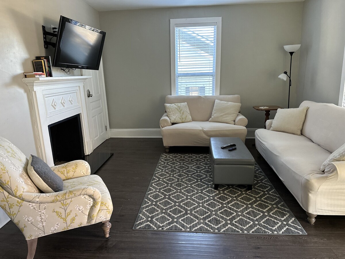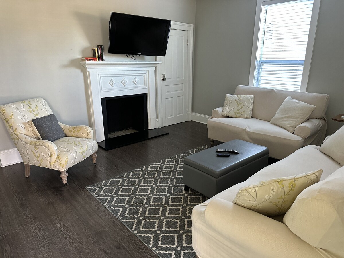Walk to Cameron Village and NC State! Jaycees Park just a block down the road. Perfect space for corporate travel. Front and back yards are fenced and landscaped. Large back deck with built-in seating perfect for entertaining. Two bedrooms and two bath, this is the perfect place to call home during your stay in Raleigh. Dog fee is $75/stay for up to two dogs. Long term >30 days: No sheets provided (can be rented for $30) and dog fee is $100. Sheets provided for short term stays. Our prices include all fees. No hidden fees.