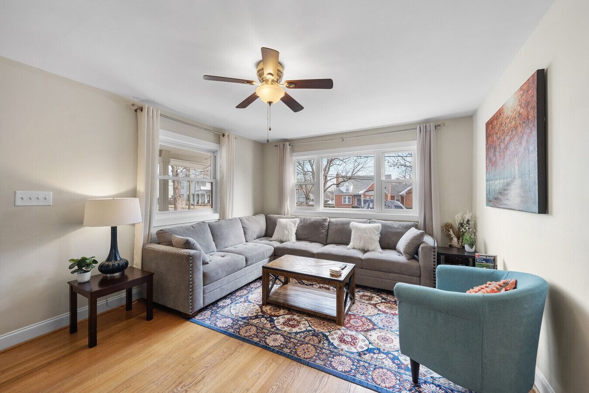 We think you'll love our fully-renovated 3 bedroom, 2 bathroom ranch-style bungalow located in the charming and historic Battery Heights neighborhood. With a fully fenced-in yard for your furry friend and beautiful original hardwood floors, our home is the perfect retreat for your next trip to Raleigh. Conveniently located just 4 minutes (1.2 miles) from Downtown, you'll have easy access to all of the city's top attractions, including restaurants, bars, and entertainment. After a day exploring, come home and relax in our air-conditioned living room, complete with a 50\ ,