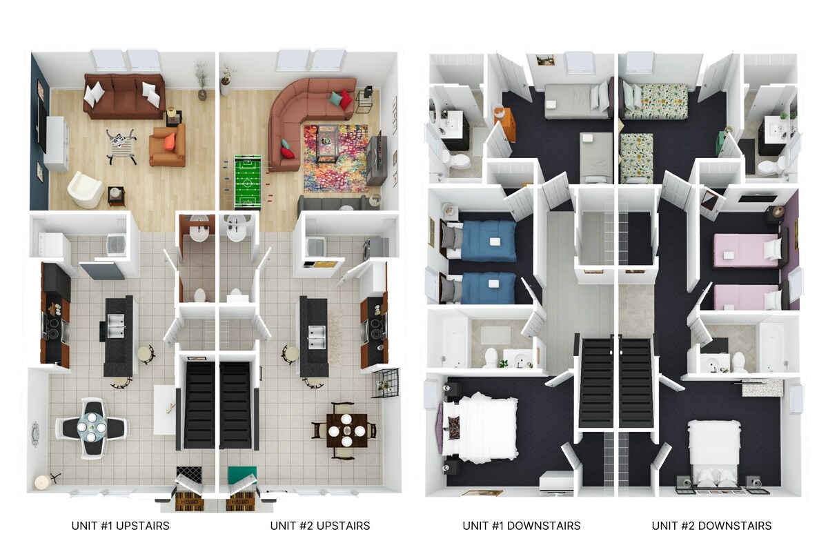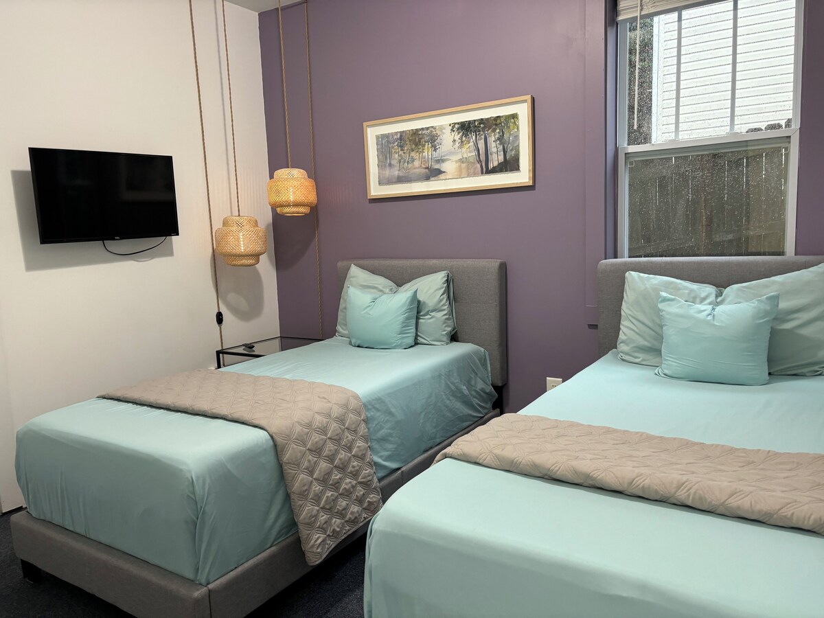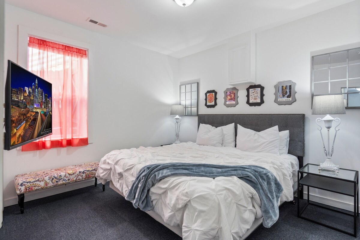 Walkable to Downtown Raleigh! Your whole team or group will enjoy easy access to the Triangle from this centrally located place. You get BOTH side of the duplex! Each side has 3 bedrooms and 2.5 bathrooms, full kitchen, etc. If you have a large group this is the place for you! Modern spacious interior and fully landscaped yard with a lighted covered gazebo. Imagine your group playing lawn games in the evening and relaxing under the stars! When it's time to hit the hay- everyone has their own real bed. Families traveling for holidays, graduations, weddings will love the layout. Business groups traveling for conventions or festivals will love being so close to Downtown. Groups will love coming together for a reunion, enjoying the backyard gazebo and comfy home! Teams will have room for everyone, even the coach! Exploring downtown Raleigh is super easy from this location. Raleigh has festivals all year long so there is always something to do! This house is pet friendly, you can bring up to 2 dogs with you. Each pet is subject to the pet fee per dog! 12 people are included in the base rate. up to 2 more guests may be added for $35/night each. Portable beds will be set up for guest number 13 and 14. YOUR PROPERTY Fully refreshed and redecorated for 2025!!!! We started a new listing to have it all fresh and new!! For your trip planning: BR1: King bed BR2: 2 Twin beds BR3: 2 Twin beds BR4: King bed BR5: 2 Twin beds BR6: 2 Twin beds 4 full and 2 half baths 2 full kitchens 2 comfy living rooms 1 amazing backyard perfect for cornhole, lawn games, and dancing under the stars! Parking on two off-street driveway pads and street parking free and readily available. REVIEWS FROM OUR PRIOR LISTING: Grant, \ We came in for the PGA tour in Pinehurst. Place was awesome for a lot of guys and enough sleeping arrangements. Uber downtown was super quick.\ The stay was the perfect location for my graduation festivities! It was clean and exactly as described. The host was super responsive and a joy to communicate with. The highlight of the home was the beautiful backyard where we spent most of our time. The weekend was unforgettable! I would definitely recommend staying here.\ Great place for a group trip. Michele was an excellent host. The outdoor gazebo was the highlight. Thank you!\ ,