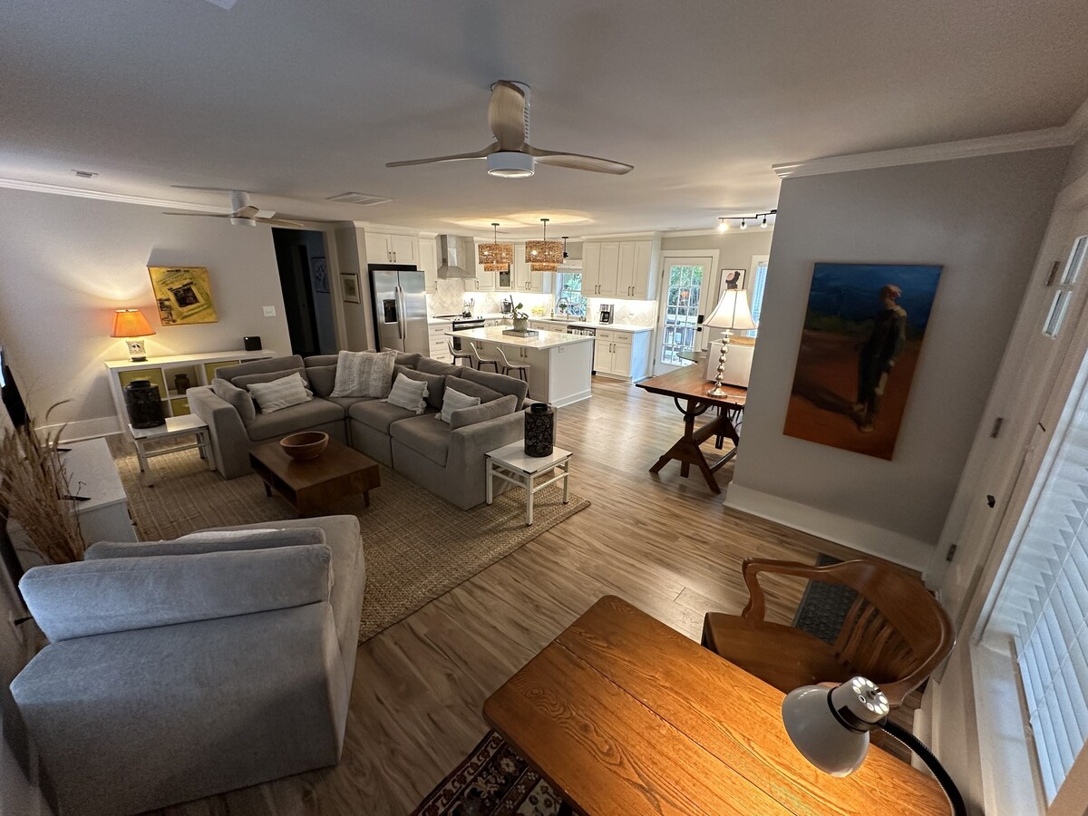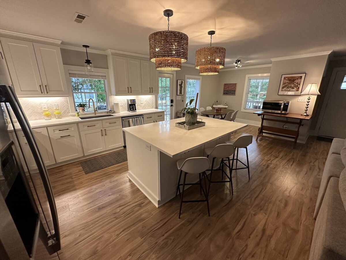 You’ll be close to all the best central Raleigh has to offer in our newly renovated cottage! Steps from shopping and eateries in the Village District, walking distance to NC State Central Campus, a mile to Glenwood South and less than 10 minutes to downtown. Or, stay in and enjoy the amenities of our freshly updated space! A brand new kitchen, open floor plan, side deck, front porch and back patio offer perfect places to kick back & relax during your time here. We would love to host you at The Village Cottage! Primary bedroom has King bed. Second bedroom has Queen bed. Third bedroom has Twin-over-Full Bunk Beds, and floor mattress. Additional twin bed with box spring & mattress available upon request. Twin Air Mattress available by request. Pack & Play travel crib available by request. Pets accepted on a case-by-case basis by request. ZSTR-000194-2023 Our prices include all fees. No hidden fees.