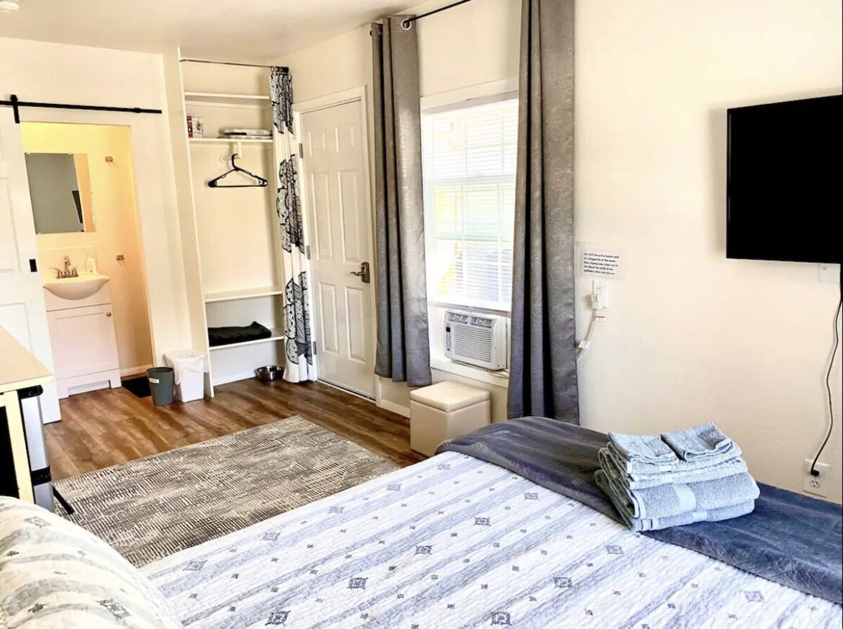 Maximum nights should be not more than 3 nights. I don’t except longer stay. This cozy guest suite (200 sq. ft.) attached to our house with separate entrance. I offers complete privacy during your stay. The suite includes a full bathroom, kitchenette with eating area, and queen bed. We don’t accept booking with U-Haul trucks. You will have a designated parking spot in the driveway that will fit regular size car. Our home is within a few minutes drive from Meridian Village, Boise Towne Square Mall, and I-84. Airport is 13 minutes away. (Please let me know ahead of time if you are bringing pets). The space is a guest suite attached to our home. You will have complete privacy with a separate entrance, a private full bathroom (with barn door).Would like to note that the coffee provided is instant coffee (no coffee maker), French press coffee available, and provided breakfast is microwaveable breakfast sandwich. The shower dimensions are 32”x32”. We offer portable crib, and floor portable chair for baby. Let us know before coming, and we will prep it for you. ( no additional fee) . We prefer to have 2 people in our studio.But if you need a place to sleep for 3 rd person we offer a foldable guest bed with mattress and sheets ($10).Just let us know ahead of time. We will put it in the studio prior to your arrival. Our prices include all fees. No hidden fees.