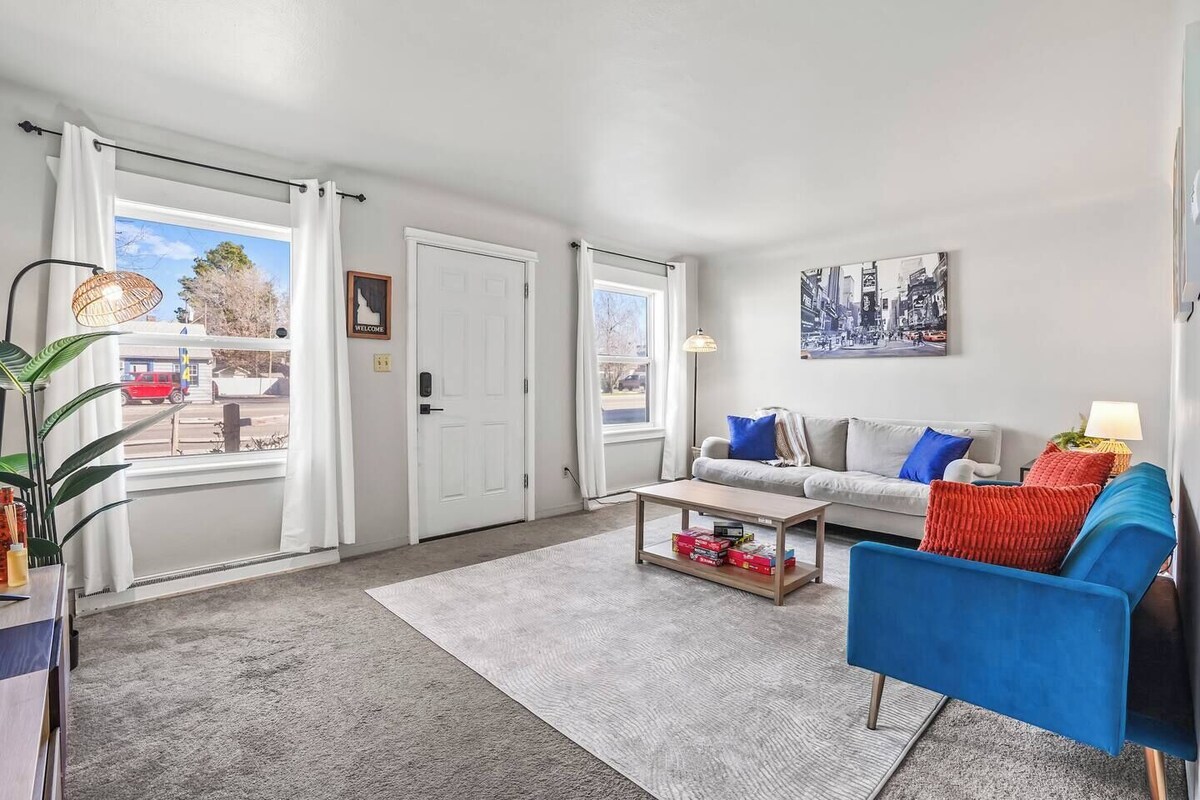 You will be close to everything when you stay at this centrally-located Cozy Cottage on Vista. Nestled only 6 Minutes from Downtown Boise, 4 minutes from Boise State, and under 5 Minutes from the Boise International Airport! Whether its playing darts or shuffle board, watching your favorite sport in the game room, or looking for an outing at a near by lake for paddle boarding, a stroll on the green belt, or a quick 40 minute trip to Bogus Basin to Ski. You will never run out of things to do! **PROPERTY SIZE AND LOCATION** This charming 1948 Cozy Cottage is the perfect blend of old-school charm and modern living. It is a single-story home with 850 sqft of usable living space for our guests. Don’t underestimate the amount of fun you can have in this cozy area! In addition to being perfectly located among all the beautiful things Boise has to offer, you’ll be greeted by thoughtful design and appliances that are ideal for both short stays and extended visits. --- **THE LIVING ROOM** In the living room, you’ll find two couches that comfortably seat the entire family or group of friends for relaxation or a movie night. There is a 55-inch smart TV that gives you access to all your favorite streaming platforms! Two large windows allow natural light to flood the space, making it feel open and airy. --- **THE HALLWAY** As you walk through the hallway to access the bedrooms or kitchen, you’ll notice a full-body mirror that not only makes the space feel larger but also lets you do a quick fit check before heading out for a night on the town, just 7 minutes away. --- **THE KITCHEN** The kitchen is fully equipped with everything you could need during your stay! It includes pots and pans for cooking, as well as a full-sized refrigerator and stovetop. The countertop features a Keurig K-Duo Single Serve K-Cup Pod & Carafe Coffee Maker with multiple brew sizes. Next to the fridge, you’ll find a full-sized microwave. Nestled in the corner of the kitchen is a 4-person dining table where you can enjoy your meals and coffee together. --- **THE GAME ROOM** Off the kitchen is the game room! We've transformed an underused garage space into a popular gaming and entertainment area. In this room, you'll find a retractable 100-inch projector screen with a ceiling-mounted projector, offering a movie theater-like experience. You can also watch a sports game on the projector while enjoying a game of darts or shuffleboard. This room is equipped with a couch that doubles as a futon, providing additional sleeping space. --- **THE LAUNDRY ROOM** Next to the game room is our fully equipped laundry room, featuring a full-sized stacked Samsung washer and dryer, along with all the products you’ll need to clean your clothes before check-out or during your stay. --- **THE MASTER BEDROOM** To the right of the hallway is the master bedroom. This room includes a closet with hangers and a pack-and-play for little ones. For maximum comfort, you'll find a queen-sized bed with nightstands on both sides for charging your devices. The master bedroom also doubles as an office space for traveling professionals, with a medium-sized desk and a chair. The desk includes a tabletop ring lighted mirror, making it a great vanity space as well. Finally, there’s a 4-drawer dresser to unpack your bags and settle in comfortably. This room faces Vista Road, which is a busy road and a sought-after location. While this comes with some road noise, we provide a sound machine to help ensure a restful night’s sleep. --- **BEDROOM 2** Across the hallway from the master bedroom is a secondary bedroom with two XL twin-sized beds. There is a shared nightstand between the two beds to maximize space, as well as a closet with a hamper and hangers. --- **THE BACKYARD** Accessible from the exterior door of the game room or the front of the house, the fully fenced backyard offers plenty of space for little ones or fur babies to roam free! Additionally, behind the fence, there are three off-road parking spots, providing easy entry and exit. --- You’ll have everything you need for a safe, comfortable stay at the Cozy Cottage on Vista! Our prices include all fees. No hidden fees.