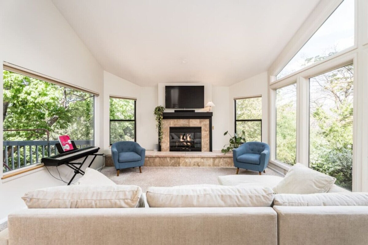 Stay in Boise's coveted North End foothills with amazing **Mountain Views**! Experience the ultimate blend of comfort, fun, and tranquility in this one-of-a-kind treetop haven. Close to everything and a perfect basecamp for your Boise adventure! - Hot Tub - Pool Table - Ping Pong Topper - Trampoline - Dart Board - 2 Dedicated work stations - 5 patios/balconies - Fenced yard - Koi Pond - Fire pits - Grill - Pets Welcome (with approval) Close to Everything! 3 mi to heart of Downtown 3 mi to St Lukes hospital 15 mi to Bogus Basin Ski Resort (DH biking in summer) Walking distance to: - Foothills Trailhead (over 200 miles of trails) - Playground/Park This stunning 3 story home offers over 4,000 sq ft for your group to sprawl in to, the perfect getaway for large families/groups. With 5 bedrooms (2 master ensuite), 4 bathrooms, 2 fully equipped kitchens, 2 living rooms, 2 laundry rooms, and the option to split the unit into two separate living quarters if desired, there's plenty of room for everyone to connect, relax, and unwind. Nestled on a quiet street in the Foothills of the iconic North End, this property offers serenity and easy access to the best of Boise. The upper level features an expansive master suite (king bed & office) with 180 degree mountain views from the bedroom, ensuite bathroom, and oversized double shower. A lovely deck with sliding glass door is accessed off of the master bedroom for uninterrupted views of the Boise foothills. A thoughtfully designed kid's bedroom (twin bunk) is located off of the master suite, and one of the laundry rooms is located on the upper level for convenience. *Note: there is a door separating the upstairs bunk room from the rest of the suite but there is no door from the master bedroom to the master ensuite. The mid level features the main living area with panoramic windows looking directly into the tree canopy outside. Living room (fireplace 1), dining room (fireplace 2), chef's kitchen, deck (with huge table & grill) , patio (with fire pit), flex room, and bathroom. This level blends the interior with the exterior and creates a truly expansive living space. The walk-out lower level is a 3 bed / 2 bath unit: 1 King ensuite, 1 Queen, and 1 Bunk room w/2 twin over full bunk beds. The lower level can be separated from the top two levels or opened up, via a dividing door, depending on your needs. It has a full kitchen, game room (pool table, ping pong, darts) dining table, living room/movie nook (w/ electric fireplace), and full laundry room. Two patios extend the livability of this space with an outdoor dining area and hot tub. Past the patios you enter the manicured back yard with a tranquil Koi pond and trampoline. Two twin rollable foldout beds are available to place in any room. Travel crib, high chair, baby gate, etc are also available. Pets welcome upon approval and pet fee Note: No access to the garage. 2 driveway parking spots and 5+ free street parking spots included. No Parties. Follow noise ordinance laws. Quiet hours: 10pm-7am. Please respect the neighborhood. No smoking on property. No access to the garage. Early check-in is available for a fee. Please contact the host for details. Our prices include all fees. No hidden fees.