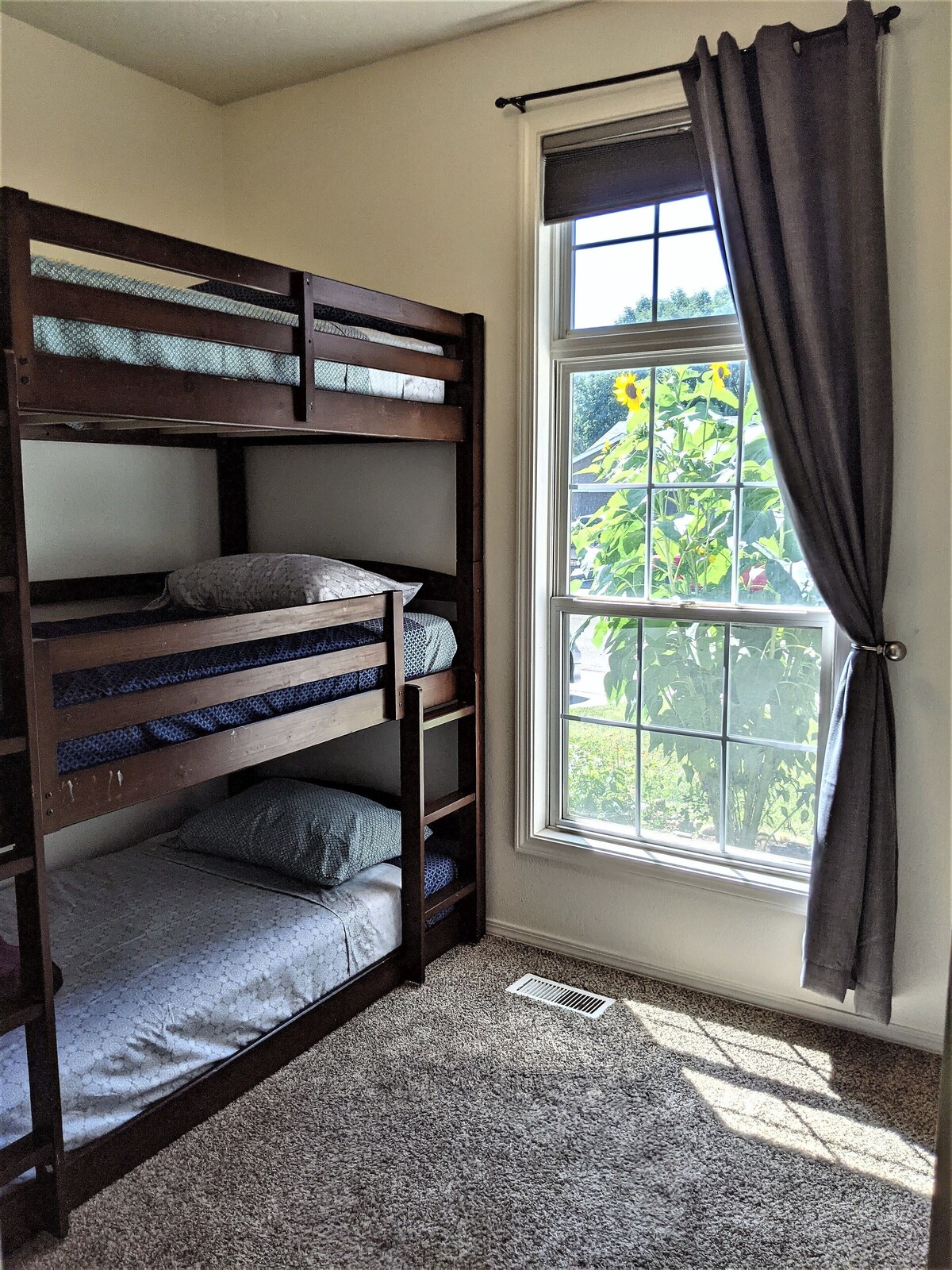 Your family will be close to everything when you stay at this centrally-located home! ✔ 1,300 sq ft home ✔ Ideal for families, longer stays & Flexcations! ✔ Reliable Wifi - ideal for working remotely! ✔ Meticulously cleaned and sanitized ✔ Fully stocked & Equipped kitchen ✔ In-house Washer & Dryer ✔ Easy Self Check-In ✔ Indoor & Outdoor Fire Place ✔ 15 Minutes to BSU/downtown Boise ✔ 10 Minutes to the Village ✔ Stocked with puzzles & games w/ a HUGE playset - **** IMPORTANT NOTE**** We will be taking down the playset mid-August ✔ Pet friendly ✔ RV parking available he space - Meticulously cleaned and sanitized between each and every guest. - Large private backyard w/ a HUGE playset - **** IMPORTANT NOTE**** We will be taking down the playset mid-August - Master bedroom features a King Size Bed, walk-in closet, and jet spa tub. - Second bedroom features Queen bed, closet, and unique history of the local Broadway scene. -Third bedroom has a super fun triple bunk for kids (or adults). - Futon in living room great for extra guests w/ linens provided. - Outdoor fireplace perfect for making outdoor smores. Plenty of firewood stocked. - Indoor fireplace perfect for making indoor smores. - Uniquely decorated space. - Easy self-check-in via. secure door keypad. - Reliable WiFi - Secure parking for one car in the double garage and can comfortably park 4 cars outside the house. - TV in living room you can easily cast your personal streaming from your device once connected to wifi. Useful for you to know: Our house comfortably sleeps 7 with 1 King size bed in the master bedroom, 1 queen size bed, and a triple twin bunk. There is a futon in the main living room if you need more space that can sleep 2. Additionally, remove the back cushions from the large sofa and you have yourself another super cozy spot for sleeping. - All beds complete with fresh sheets changed after every single guest. The kitchen comes fully loaded with appliances such as a microwave, fridge, electric stove, dishwasher, and coffee maker. Fully equipped with glasses, mugs, dishes, cutlery, mixing bowls, pots, pans, cookie sheets, cutting board, measuring cups & teaspoons, and some basic serving and cooking utensils. -Dish soap, shampoo, conditioner, body wash, and laundry detergent are available for your use. Guest access There is secure parking for one car in the double garage and you can comfortably park 4 cars outside the house in the driveway and off street. Other things to note There is keyless entry to the home which a code will be provided to you after you book with us. Please remember that you're staying in our home, not a hotel. Please treat the place with respect. If any problems arise, we will do our best to take action ASAP, but there is no one living on site 24/7. Our prices include all fees. No hidden fees.
