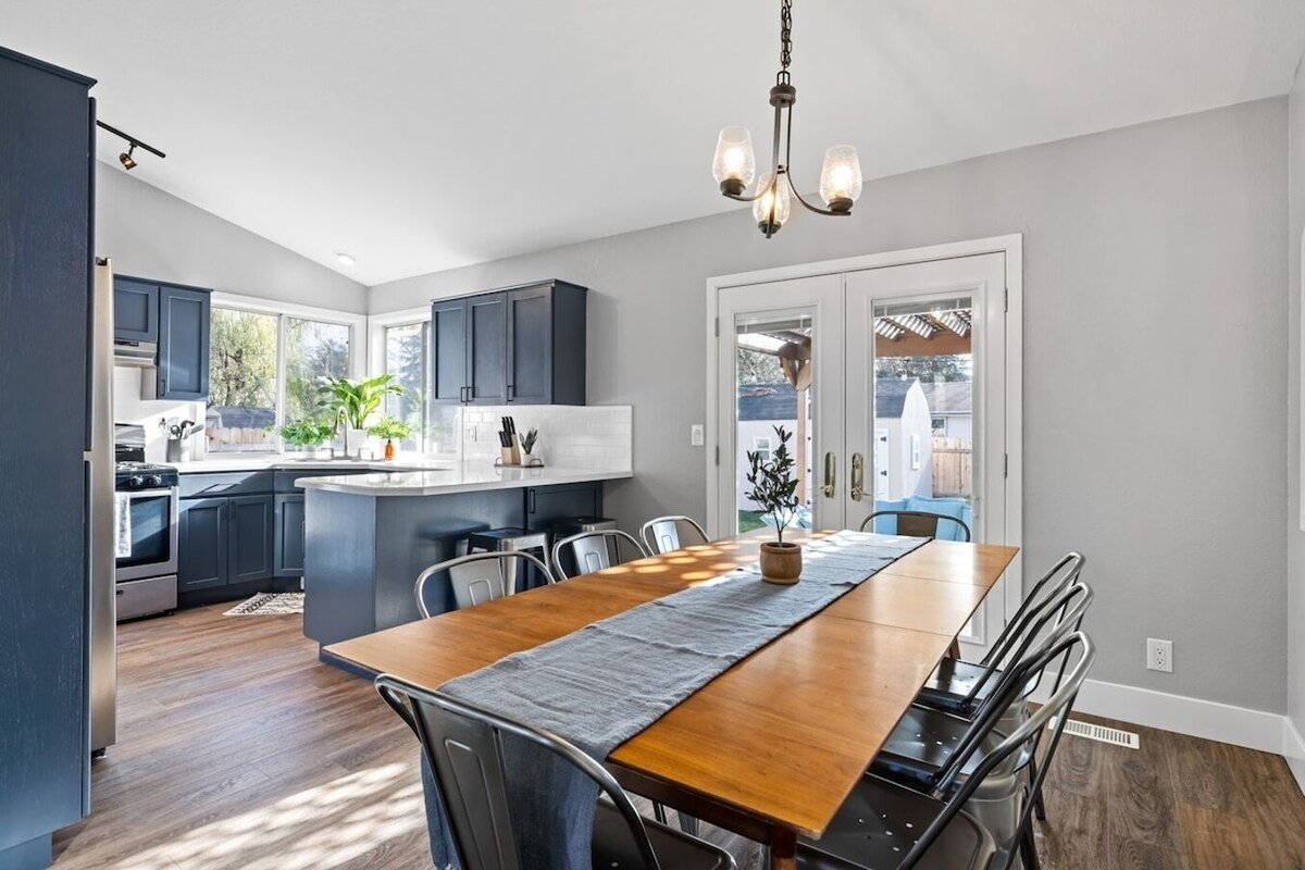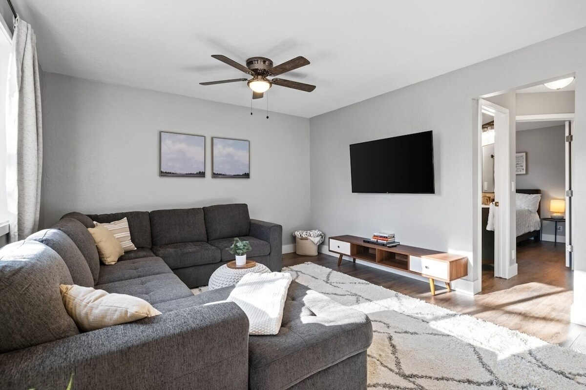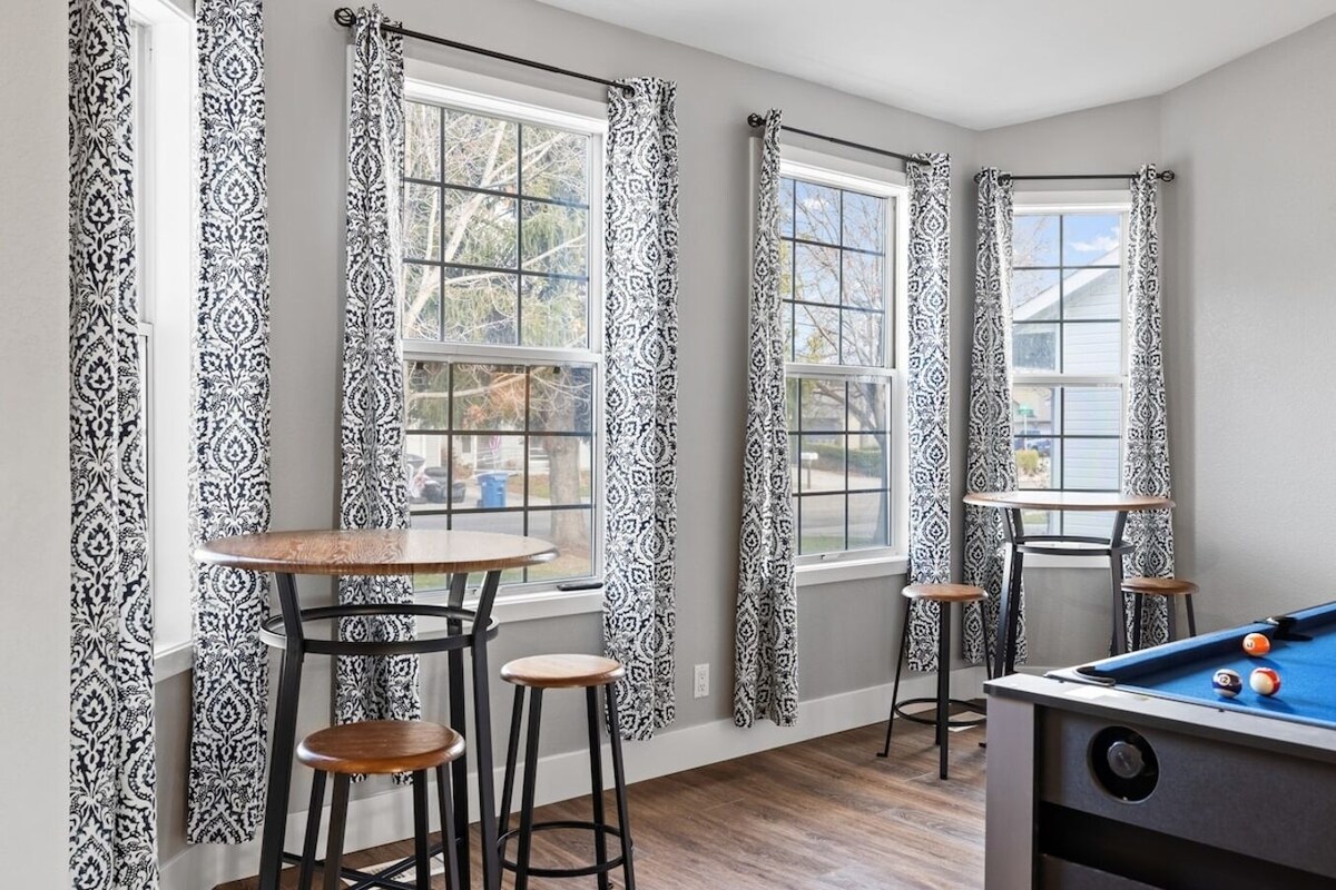 Get the best of both worlds when you stay at this Boise vacation rental situated at the crossroads of big-city entertainment and outdoor recreation! This 4-bed, 3-bath home offers all of the comforts of home with a fully equipped kitchen and modern furnishings. You don't have to venture far to get your urban fix in the downtown area teaming with unique shops, local eats, museums, and sites. Follow up your day in the city with fresh air and float the Boise River or hike the foothill trails! Keyless entry for easy check-in and check-out. We are here for you during your stay, but our level of interaction is up to you. We are only a phone call or message away. The whole home is yours! 1700 square feet of comfortable living space, perfect for mid-term stays and families. Main level: Enjoy a fully functional kitchen which includes oven, stove, microwave, cooking utensils, basic cooking supplies, and a kitchen table with seating for 8 people. Enjoy watching all of your favorite tv shows, movies or sports in the game room, or play an assortment of games provided. We also have a large gaming table that includes ping pong, pool table, air hockey and mini basketball. There are two bar tables that are perfect for playing board games or watching TV at. Down a few steps is a large living room that includes a sectional that folds out into a queen bed, smart TV and some of our favorite books. There is one bedroom downstairs as well as a full bathroom. A two car garage is available for use, as well as a washer and dryer. Upstairs: 3 spacious, comfortable bedrooms and two full bathrooms. The master bedroom is equipped with a walk in closet. The \ room is equipped with a twin trundle bed for additional sleeping. Outdoor: patio seating, coffee table, globe lighting, grill, yard games and a large yard for other activities! The house provides coffee, a refrigerator and freezer, baking and cooking items, board games and cards, towels, clean sheets and comforters, washer and dryer to keep up with cleaning needs, and much much more! Please note that for stays exceeding 29 nights, Idaho law requires that we must obtain a lease from you before hosting your stay. Our company policy also dictates that stays exceeding 29 nights require an extra cleaning every 29 days. This will be billed at the cost of an additional cleaning fee. These extra cleanings help keep our home an enjoyable place for all renters and really help our cleaning crews at the time of checkout. Please keep these policies in mind if booking a long term stay. Any unauthorized pet will be charged $250. A late checkout fee of $30 will be charged after 15 minutes late. An additional $30 will be charged every 30 minute increment after that. There is no cable TV, but there are many apps that can be logged into. Our prices include all fees. No hidden fees.