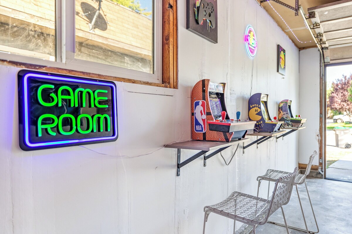 Discover Boise’s heart from this charming home, where convenience and comfort come together perfectly. Located just moments from the mall, dining, downtown, BSU, and BOI Airport, you'll have easy access to all that Boise has to offer. This home features three TVs, a spacious yard with a BBQ and fire pit, an updated kitchen with modern appliances, high-speed internet, and a washer/dryer for your convenience. The game room is a true highlight, offering hours of entertainment with classic arcade games like Pac-Man, NBA Jam, and Ninja Turtles, as well as a dartboard and foosball table. Whether you're here for adventure or relaxation, this home provides everything you need for a memorable stay. With a pet-friendly dog door and ample amenities, you and your furry friends can enjoy both indoor and outdoor spaces. Perfectly suited for both fun and relaxation, this home is an ideal base for exploring Boise or simply unwinding. Book your stay today and experience the magic of Boise firsthand! Our prices include all fees. No hidden fees.