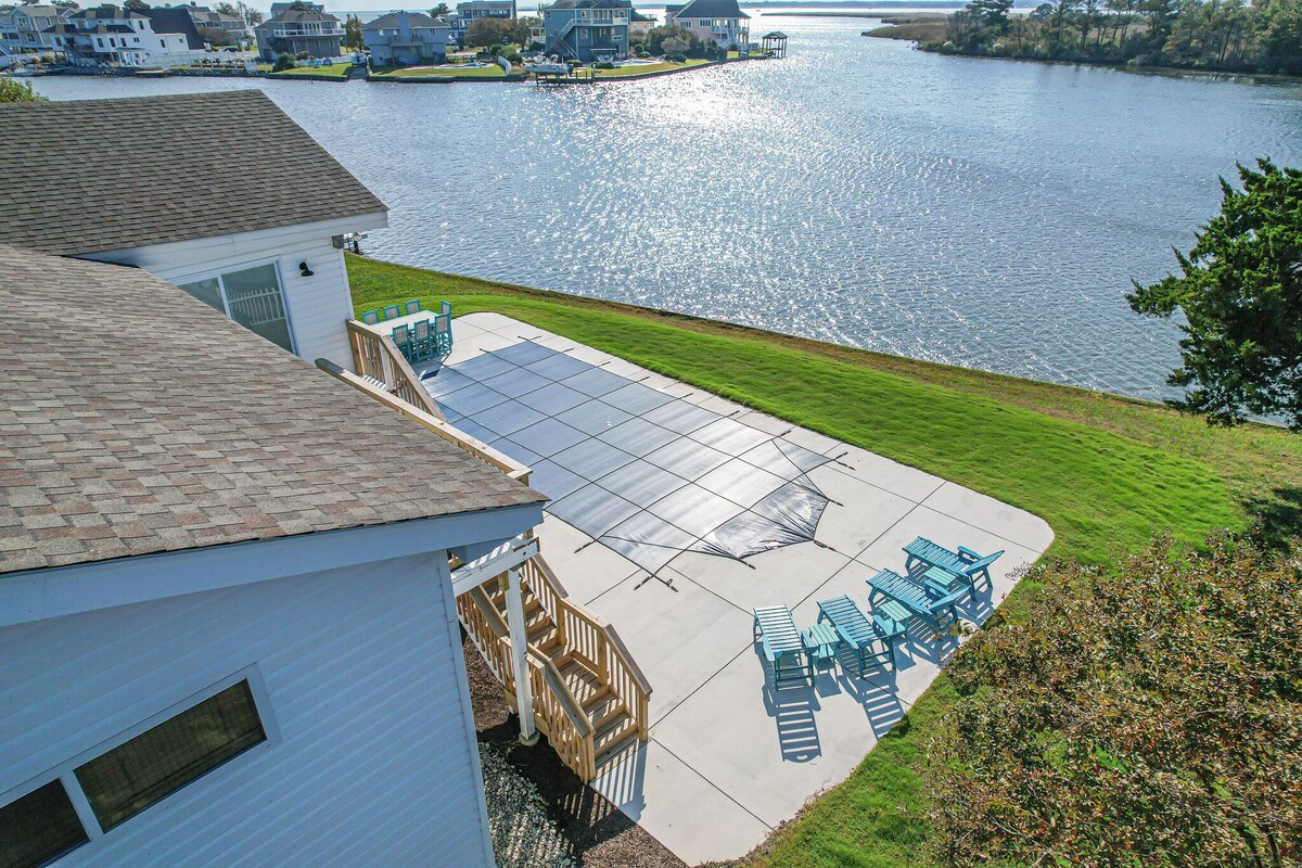 Welcome to Gypsy Bay! Please Note: This property is available for Saturday to Saturday rentals. We welcome multiple weeks with discounts, but check-ins and check-outs are exclusively on Saturday! Nestled along the picturesque bay, Gypsy Bay is a stunning five-bedroom, three-bathroom waterfront home, perfect for family vacations, accommodating up to 14 guests. This charming bungalow features a newly renovated kitchen, complete with modern appliances and a spacious island ideal for entertaining. The open family room flows into a sunlit dining area, where you can enjoy meals with a breathtaking bay view. A convenient coffee and beverage bar, equipped with both a drip coffee maker and a Keurig, adds to your comfort. Bedroom Layout: First Floor: King suite with a scenic view of the bay and pool area, featuring a private bathroom with a shower and single vanity. Second Floor: Luxurious primary King suite with a glass sliding door that opens to a private deck overlooking the bay, plus a double vanity bathroom. Three additional bedrooms include two King rooms and a bunk room accommodating six, all sharing a bathroom with a double vanity and tub/shower combo. Outdoor Amenities: Step outside to the private pool deck, where you'll find ample seating for sunbathing and a shaded dining area—perfect for unwinding after a beach day. For indoor fun, the garage recreation room features a full-sized pool table, seating, refrigerator, TV, and bar. All bedrooms include TVs, while the living room and garage rec room boast large screen TVs. Enjoy high-speed Wi-Fi and access to streaming apps, including HGTV, Disney+, Netflix, and Prime Video. For your convenience, a six-seat golf cart is provided to shuttle you to a nearby handicapped-accessible beach access, located just half a mile away. It’s also perfect for trips to the local ice cream shop or donut market! Adventure Awaits: Fishing enthusiasts can cast a line right from the backyard, and for the more adventurous, Gypsy Bay offers two kayaks for exploration. Pool Availability: Open from May 1,2025 to October3, 2025. Special Discounts: We offer a 5% discount for active service members. Experience breathtaking sunsets on Sandbridge Island at Gypsy Bay. Our local family is dedicated to making your stay memorable! Explore More: Visit our sister company, SandbridgeRentalsLLC.com, for rental options on golf carts, electric wheelchairs, and beach wagons—guests receive a 20% discount! Our prices include all fees. No hidden fees.