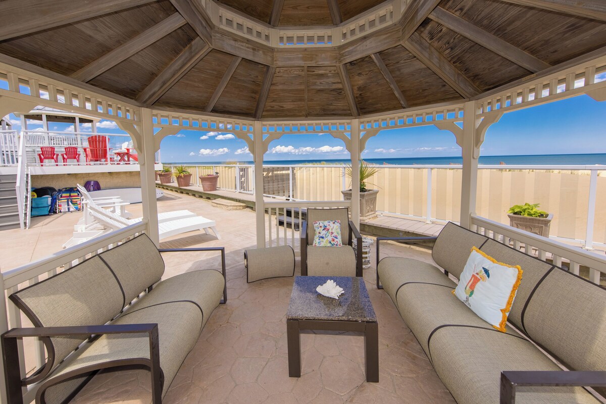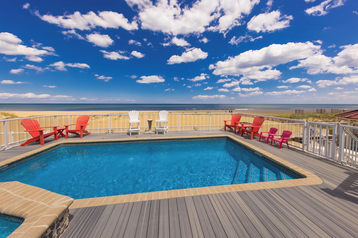 This is a new listing we dded which is the same property as the Seaside Sanctuary beach house with added Lower Level - the new additions. We invite you to checkout the reviews (Over 90 reviews to-date) - Seaside Sanctuary beach house - https://www.vrbo.com/1010413 For any questions, please contact us at 757-754-6161. We have Seasonal Policy for the year- For peak season - summer time booking is Restrict however, our guests could always change the week to an available week that is suitable for them. We will always work with our guest making sure they don't loose their booking, We've added this new listing Seaside Serenity , to showcase the recent updates/ new addition and upgrades rot the property. This listing offers 2 FULL kitchen , 7 Bedrooms instead of 5 bedrooms , with added living space and an additional full kitchen. This multi-level \ beach house with multi level balconies overlooking the ocean , caters to multi generational family and friends. Nested along the coast of the Atlantic Ocean in stunning Sandbridge Beach, the Seaside Serenity offers tranquility and peaceful ambience of being by the sea . Perfectly capturing the relaxing and calm atmosphere for an unforgettable vacation. This perfectly sized, four-level home boasts 7 bedrooms , 6.5 full bathrooms, outdoor showers and TWO FULL kitchen, offering amazing ocean views throughout, and gorgeous furnishings. The two full kitchen is especially ideal for the especial holidays such as Hanukkah Jewish and Passover or Thanksgiving holiday family gathering. For any questions, please contact us at 757-754-6161. We have Seasonal Policy for the year. The architecture of this home is unique to our coastal community. All bedrooms are spacious, and the high ceilings in the living areas enhance the villa's open feeling. The grand entrance and covered porch invite you inside, where you are instantly greeted by breathtaking panoramic views of the Atlantic Ocean. Floor-to-ceiling windows and a strategically angled floor plan capture the beauty of the ocean and our incredible beach. The main level of Seaside Serenity is elegantly decorated with creamy couches and designer appointments, and is bright and cheerful with all of the arched east facing windows. Relax in front of the gas fireplace in the evening, while watching your favorite TV show on the flat screen. The open floor plan allows for a casual ability to join together or spread-out, as the living room opens to the dining room and then the kitchen. The kitchen is well stocked with everything you need, with granite &custom stone Quartz kitchen counter tops, smooth cook-top, built-in double oven, dishwasher, microwave, free standing ice maker, full refrigerator, and wine refrigerator. The dining table seats everyone, and the additional counter top seats 4. Enjoy conversations and an incredible view off the deck, spend hours watching the surf and the water games of the popular dolphins and pelicans that frequently pass by. The lower Level of this home with enclosed beach piles offers a gorgeous Camberia quartz counter top Full kitchen with lots of windows , access door to the beach , Two bedrooms (one King Size bed, One Queen), a living room area, and two full bathrooms - one shared between the two bedrooms and one accessible from the living space/ kitchen area and from the outdoor on this level. The First level of this home offers a King Master Suite with a private bath and TV, along with a King Bedroom and Queen Bedroom that share a Jack-N-Jill bath. All of the bedrooms offer designer bedding and window treatments with beachy accents throughout. The upper level is home to two bedrooms; one a King Master Suite with Private Bath and Jacuzzi Tub, as well as a gas fireplace and a private balcony. The second Queen bedroom has a private bath as well. The arched windows offer remarkable views to wake up to. There is plenty of seating outside on the Multi-level deck area, with a table for al fresco dining, and loungers for afternoon siestas after a day splashing in the beautiful blue Atlantic Ocean. Beach access is directly from the house \ , which also offers an open shady place , great for younger children to hide from the sun and the elderly to cool off in. A great house for a family bringing the grandparents /children and pet along! We are pet friendly but we do have pet rules. Please check pet rules. Must have its own bedding. CAC, CTVs, wireless internet access, , 1 gas fireplaces (electric grill, jetted tub, wine refrigerator. Fireplace available for off-season use only October-May, Weber Grill/ BBQ., Bed Sizes: Br1 - King, Br2 - King, Br3 - King, Br4 - Queen, Br5 - Queen The Pool is open all year round and maintained as part of the booking . The option to heat the pool (Gaz only - extra fee would be applicable ) is available ( 3 seasons only...). WE have outdoor outlet to be used for Electric Vehicle) . There are applicable fees of $250 per week/per car. Also we offer rental of Low Speed Vehicle 6 person Electric Golf cart (Bintelli) , pictures are posted here. The cost is $150 /day and $1000 for the week, Booking is preferably done in advance but it could be requested upon arrival. The LSV is to be added to the guests car insurance and must have a driver license. Document is to be provided prior to the rental. If you like to add the option of pool heater , to start the heating system and gas fill up is $650 and the daily gas usage of $75 / day to heating daily / nightly constantly to 75-78 degrees . Our prices include all fees. No hidden fees.