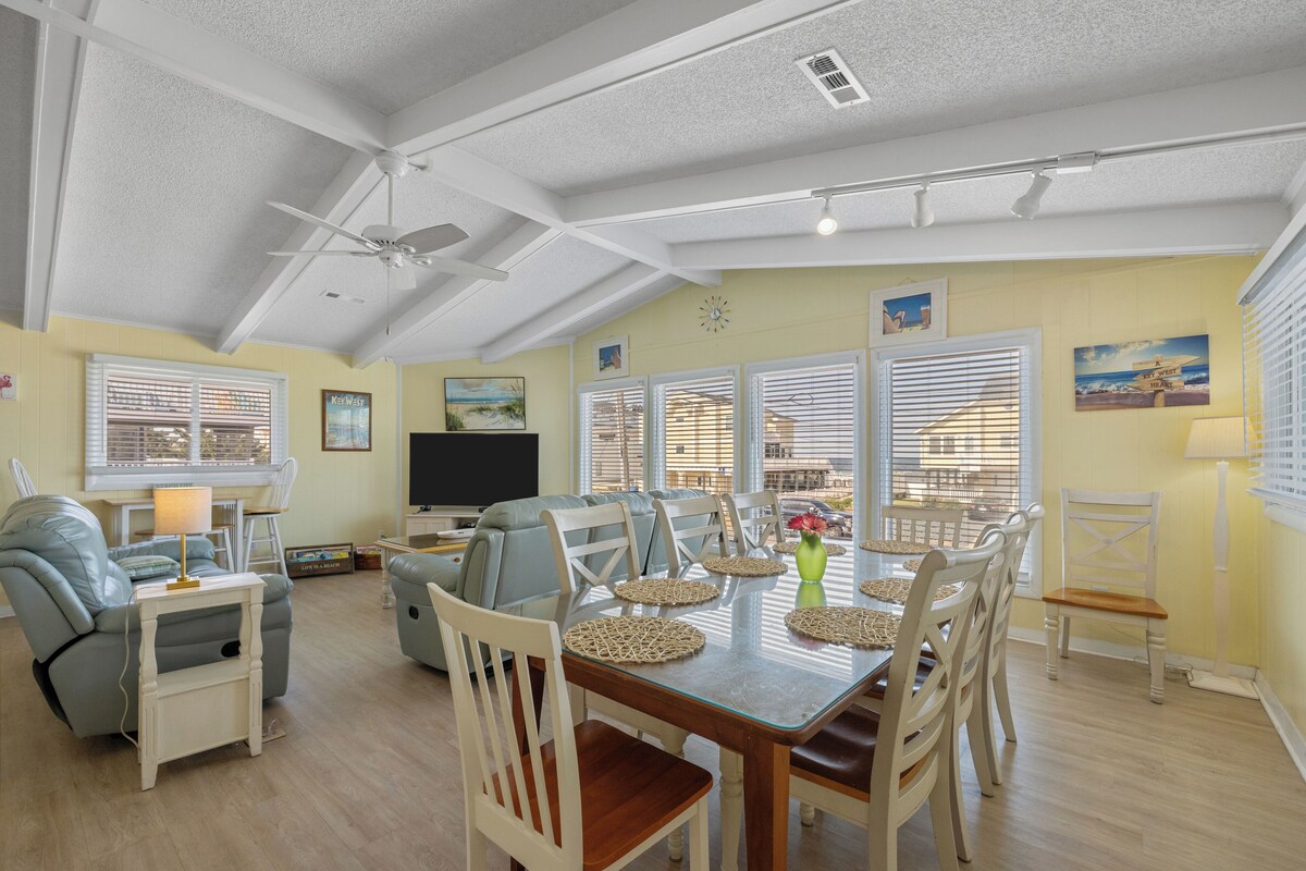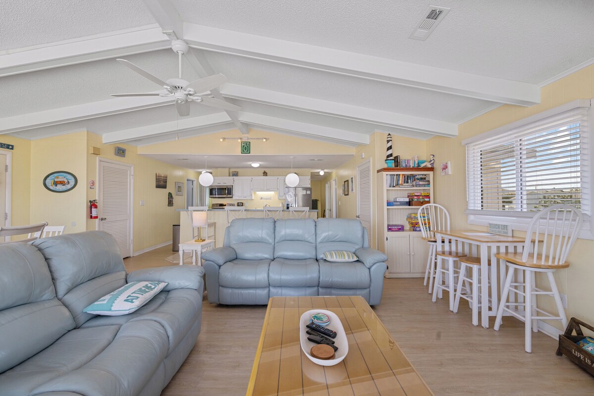 Welcome to A Key West Heart! This breathtaking semi-oceanfront beach house is designed for a cozy and relaxing beach vacation, making you feel right at home. You'll love the Key West Island-style decor and upscale furnishings throughout the home, perfect for you and your family to truly unwind. Step outside and take a refreshing dip in the in-ground pool, or find a shaded spot under the house to cool off in the hammock. Right across the street, you'll find easy access to the beautiful sandy beach. You and your family will appreciate the convenience of being just a few steps away from having your toes in the sand. The views from this beach house are truly spectacular. Head up to the rooftop deck to enjoy panoramic ocean views, or relax on the screened porch. Nothing beats watching a sunset over the beach from here! Bedroom 1: 1 King; Bedroom 2: 1 King; Bedroom 3: 1 Queen; Bedroom 4: 2 twin over twin bunk sets; Bedroom 5: Double and twin over twin bunk set Our prices include all fees. No hidden fees.