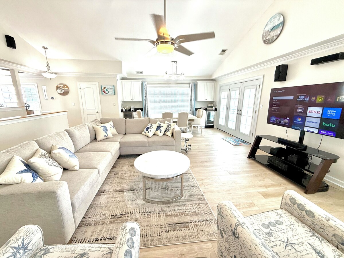 Just a 2-minute walk to the Beach and Boardwalk, this spacious home is perfect for the whole family! Rinse off after a sandy day in the outdoor shower, then unwind in the oversized primary bathroom, featuring an indulgent 8-head shower. Soak in stunning views from the third-floor balconies or enjoy a cozy evening in the private English Pub. Nestled in the heart of Old Beach area, you’ll be steps away from concerts, restaurants, and endless entertainment. The Ultimate Beach Escape starts here! Experience Virginia Beach like a local in this 4-bedroom house. The bedrooms feature a king bed, 3 queen beds, 1 twin bed, and 1 bunk bed, ensuring a fantastic night's sleep for all guests. With 4 bathrooms equipped with showers and hair dryers, your stay will be both soothing and enjoyable. Relax in the living room with a cozy sofa bed for additional space. Experience what Virginia Beach has to offer with a stay at our house. Our prices include all fees. No hidden fees.