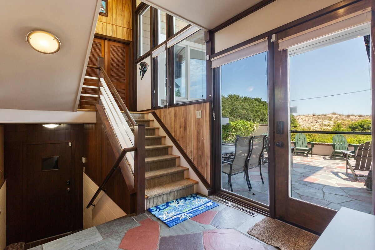 This luxurious oceanfront Smart Home has stunning views of the widest beach in north end of Virginia Beach. In a quiet residential neighborhood, this property feels like a private refuge from the moment you round the corner of the driveway—truly a place to get away from it all! Inspired by the 1953 Norfolk residency of Frank Lloyd Wright, this family property was designed by local architect, Herbert Smith, and built in 1955. The home is registered on the Virginia Beach Historic Register. Mid-century aesthetics were retained when updating in 2006. The owners—the daughter and grandson of the original owners—continue to uphold the tradition of southern hospitality. This home is tucked away in the middle of the block in a quiet residential neighborhood, off a cul de sac. Sandswept provides a perfect retreat for families. However, it is not suitable for noisy gatherings of unrelated adults. Residents on our street value the quiet serenity of this special area. Awarded a Star Award by Virginia Green Travel, this eco friendly home was fully renovated in 2006 to comply with Energy Star and LEED ReGreen standards. By using non-toxic laundry and cleaning products and having no VOCs in the furniture and finishes, this is a wonderful home for anyone with chronic allergies or asthma. The Home • a split level mid-century home with 3,100 square feet on four levels, two patios and two decks. Ample space to gather together and to separate for moments of quiet reflection. Three flights of steps and no elevator make this inaccessible for the handicapped. • a rooftop deck with “the best view in Virginia Beach” to view dolphins, sunrises, sunsets and full moons. The rooftop room and deck can only be accessed via a spiral staircase. • Cook on the deck with the electric grill or prepare more complex meals in the kitchen and send food up in the dumb waiter. • 2 full spa-like bathrooms have luxurious jetted tubs that provide air massage and chromatherapy. Toilets are in “water closets” separated from bathing area. • Smart Home with whole house audio, Lutron automatic shades and lighting, with dimmers to create mood lighting whenever and wherever you want • High speed WiFi, two Smart TVs with Firesticks, and one DVD player • Port-a-crib, Pack and Play, highchair, booster chair, infant seat for dining and outdoor swingset, diaper pail and training toilet are available for toddlers; please request in advance • No smoking inside or within 20 feet of an open window • Protect indoor air quality by leaving outside shoes at the door. Copy and paste this link to a website with a slide show and 3D Virtual Tour to visualize the layout of this multi-level home.: https://spw.virtualtidewater.com/sites/bejjbmg/unbranded The Beach • Two beach carts make it easy to carry small children and chairs etc to the beach • Two exterior showers with hot and cold water to easily clean off the sand from the beach • several SunShades and a 10' x10' shade canopy – easy to assemble and weighs only 8# The Grounds • high-speed EV charger for guests with electric vehicles • swing set for the kids protected from winter winds and summer sun • Parking for four SUVs or six cars depending on size of vehicles—an unusual luxury in this part of Virginia Beach • certified Backyard Wildlife Habitat that attracts and feed birds, butterflies and other wildlife • solar and wind powered clothes dryer imbue your clothes with the fresh smell of the sea Dogs • Dogs permitted on a case-by-case basis, with an extra pet fee • A shaded, fenced dog yard can be shared with owner’s dogs • Dogs are allowed on the beach before 10:00 a.m. and after 6:00 p.m. in the summer and anytime the rest of the year. Nearby amenities • the widest beach in Virginia Beach, accessible via a city maintained boardwalk • two blocks away: entrance to walking paths in First Landing State Park • 3 miles: The Resort is an easy bike ride along the access road • 6 miles: The Virginia Aquarium, Auto World Bumper Cars and Ocean Breeze Water Park • Day Trips: Busch Gardens, Water Country and historic Williamsburg, Yorktown and Jamestown are an hour away Non-toxic cleaning to preserve indoor air quality • Eco friendly non-toxic cleaning products safe for people and pets • Hypoallergenic laundry detergent strips free of paraben and phosphate to wash all pillow cases, shams and duvet covers between each set of guests • Refillable hand and shower soap dispensers with hypoallergenic soaps • Eco friendly tablets to clean dishwasher and toilets • Natural pest control such as diatomaceous earth, borax, essential oils, and ultrasonic pest repellers instead of toxic pesticides The upper four floors are dedicated to our guests. The ground floor is occupied by the owner who resides on the property and shares common spaces such as laundry, Zoom Room (reserve in advance of need) and swing set. We offer round-the-clock assistance when needed but otherwise respect our guests’ privacy. Our guests often note appreciation for our sharing this unique family home. Keywords: Oceanfront, Private, Quiet, exclusive Northend Virginia Beach, Award winning Green Vacation Rental, awesome views, Perfect for Family Vacations, quiet beach retreat, good for those with asthma or allergies Our prices include all fees. No hidden fees.