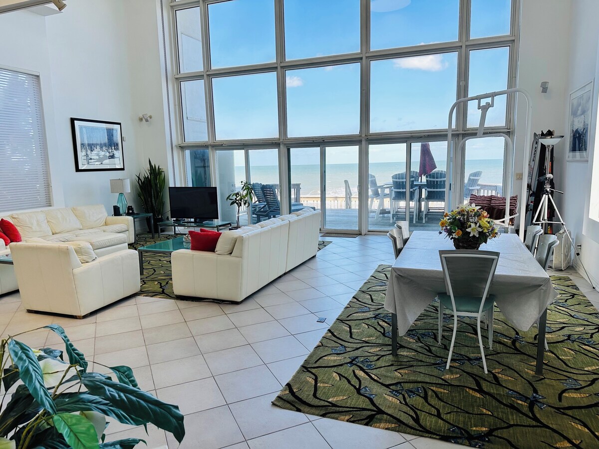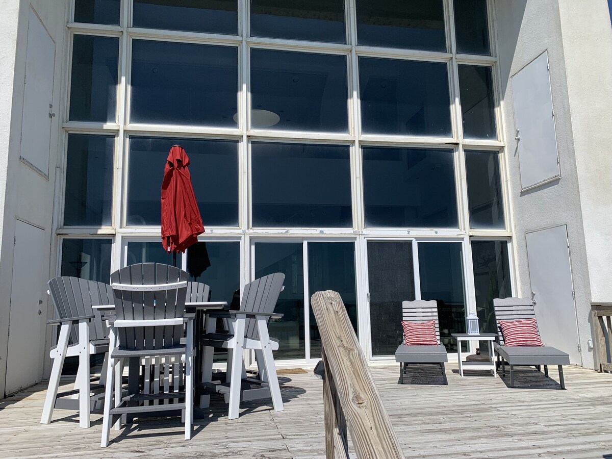 Come and live on the beach - expansive views from all rooms - three stories of glass overlooking the Atlantic Ocean. Glass elevator. Beautifully furnished (contemporary) with original artwork on 6 levels - Master level with loft overlooking ocean. 2 Queen rooms o 2nd level with private bathrooms. Great dormitory room on 1st level with walk out to the beach. We have a sun deck at the ocean (the gazebo left us last year in a storm) Large dormitory style room with bunk bed, queen, twin and trundle opens directly to covered patio, elevated beach walk and outdoor hot and cold shower. Beach chairs and umbrellas with lots of outdoor furniture. New deck and walkway has been installed We have done extensive work over the winter. All previous problems have been addressed and we are ready to go. Come to your almost private beach and during season complete with lifeguard. Come have fun at the beach! Keywords: Single Family Our prices include all fees. No hidden fees.