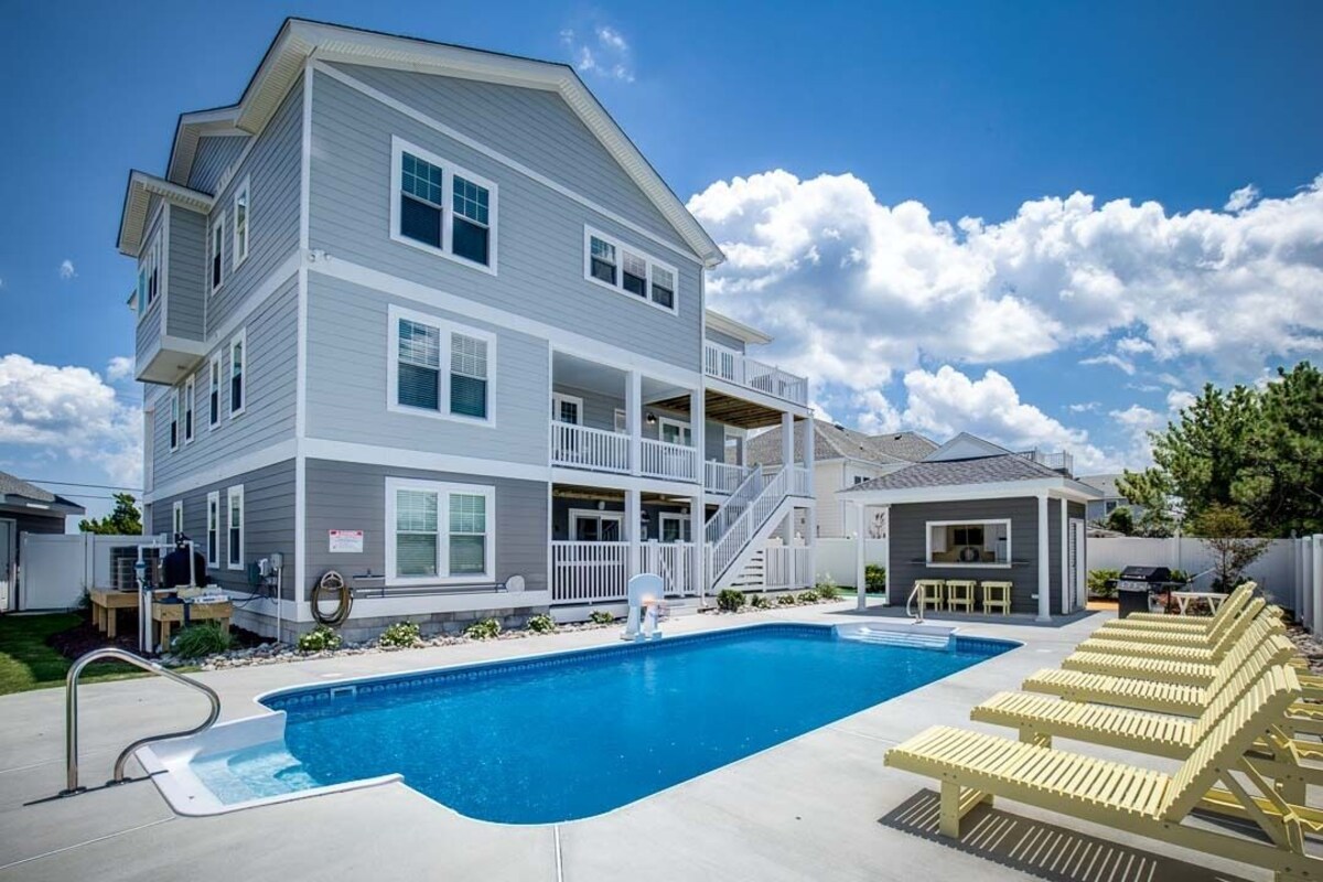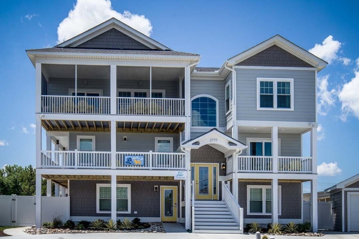New for 2024: Mid-level master bedroom with bunk bed (double over double) and bunk bed (twin over twin) converted to a master bedroom with three double beds. Ruff! If that's dog for \ Ruff Life” here! Smart HDTVs, LCD TV's in all the bedrooms, and wireless internet access keep the whole gang connected. Top level has a chef's kitchen with plenty of storage, granite countertops and Stainless Steel appliances. There is plenty of seating for meals, or you can lunch on the ground level with the kitchenette with bar with seating for 6, or take it poolside to the cabana bar. Take in the ocean view and breezes on the top deck screened porch, or play with the kids in the pool, a game of billiards or ping pong. The beach access is easy, and there are 7 master suites for ultimate privacy. After a tough day on the beach, the ground level patio has a hot tub for relaxing while the kids enjoy evening playtime in the pool. RBC-built homes feature numbered bedrooms for easy room selection! Top-Level: Living Room with Smart TV, Blu-Ray Player, Fireplace (Electric), and Deck Access; Dining Room with Table (seats 12) and Additional Table (seats 8); Kitchen with Bar (seats 4), Blender, Coffee Maker (Drip & Keurig), 2 Dishwashers, Microwave, 2 Oven/Stoves, 2 Refrigerators, Toaster, Pantry, Pots, Pans, Dishes, and Cooking Essentials; Screened Porch; King Master Bedroom (#9) with TV and Attached Full Bathroom with Tile Shower; King Master Bedroom (#8) with TV and Attached Full Bathroom with Soaker Tub and Tile Shower; Hall Half Bathroom. Mid-Level: King Master Bedroom (#7) with TV, Deck Access, and Attached Full Bathroom with Tile Shower; Queen Master Bedroom (#6) with TV and Attached Full Bathroom with Tile Shower; King Master Bedroom (#5) with TV, Deck Access, and Attached Full Bathroom with Whirlpool Tub and Tile Shower; Master Bedroom with 3 Double Beds (#4) with TV, Deck Access, and Attached Full Bathroom; Laundry Room. Ground-Level: Rec Room with TV, Ping Pong Table/Pool Table, Kitchenette (microwave, mini-fridge, dishwasher, and sink) with Bar (seats 4), and Deck Access; Bedroom with Bunk Bed (Double over Double) and Bunk Bed (#3); Queen Master Bedroom (#2) with TV and Attached Full Bathroom with Tile Shower; King Bedroom (#1) with TV and Access to Hall Full Bathroom; Poolside Cabana with TV, Refrigerator, and Bar (seats 4); Outdoor Full Bathroom. Extras: 2026 Beach Gear Credit, Distance to the Beach: 320 ft., Dogs Allowed (2), Elevator, Grill (Gas), Hot Tub (seats 8), Keyless Entry, No Smoking, Max. Occupancy: 26 people, Parking: 9 Cars, Private Pool (11 x 22), WiFi. Additional amenity details: Private Pools are open from May 2, 2025 until October 12, 2025 and May 1, 2026 until October 11, 2026. Pool heat is not an option for this property. Pets are not allowed in pools under any circumstances. An additional fee will be charged to leaseholder for the chemical balance, cleaning or damage that would cause the replacement of a vinyl pool liner. Hot tubs are available year-round. This property provides a $250 credit toward beach gear delivered to your rental property. *Delivery fees may apply.* Offer only good for full weeks booked with check-ins beginning between May 22, 2026 and September 6, 2026. All Sandbridge Blue properties provide bed linens and bath towels for a small fee added to every reservation. We provide 1 bath towel and washcloth per advertised occupant. We provide 1 hand towel and 1 bar of soap per bathroom sink. We also provide kitchen towels. Beds are made prior to your arrival, and we provide a starter supply of toilet paper, bathroom soap, paper towels, and dishwasher detergent. Sandbridge Blue makes every commercially reasonable effort to maintain reliable information about the vacation rental properties we manage. As such, all information and descriptions are subject to daily updates and changes. We are not responsible for changes in furnishing, inventory, and décor implemented by individual homeowners. Photos, virtual tours, and floor plans are meant to be illustrative in nature. All vacation rental information is deemed reliable but not guaranteed. If you have any questions please give us a call. The use of the property is restricted to use by You and Your family, unless it is agreed upon, in writing, to occupancy by a non-family group. A “family” means parents, grandparents, children, and extended family members vacationing at the property. For example, the use of the property by fraternities, sororities, groups under the age of 24, or unrelated groups is prohibited. Our prices include all fees. No hidden fees.