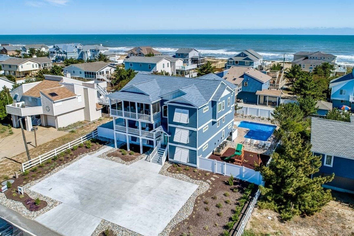 “All-Sea-Sun” will astound you with high end finishes and furnishings, a large beautiful kitchen, elevator, and an outdoor pool and living area that will be where you spend all your time when you are not at the beach. Seven masters give almost everyone their own private bath, and all baths will have custom tile and stone countertops. All bedrooms and gathering areas have smart TVs so no matter where you find yourself, games and streaming are available for you and your guests. Top floor has a great room area that includes a living area with electric fireplace with access to a large screened porch. What a great spot to enjoy ocean breezes without the inconvenience of bugs! The kitchen has plenty of storage and countertop space, with stone countertops and all stainless steel appliances. It's a chef's kitchen with 2 gas ranges, 2 ovens, 2 dishwashers, and a large center island for work station, storage and seating for 4. The main large dining table seats 12 and there is a second dining table that seats 8. The elevator is centrally located through all three levels. Two king master suites are on this level. The second level has 4 master bedrooms, each with a private bath. There is a king bedroom with access to the mid-level deck. The master with 2 Duo Bunks has access to the front mid-level deck. The laundry room is on this level with 2 sets full size stackable washer/dryers. The other two masters have king beds and all the delightful appointments you would expect from a vacation rental of this caliber. The ground-level has one king master suite with access to the patio and pool deck. There is also a bedroom with a queen bed a double over double bunk bed that shares a full bath with the hallway, for a “semi-private” master bath. Let the games begin! Full size billiards table invites all for friendly competition, or how about Texas Hold'em with the teens at the game table? Not in the mood for billiards? No worries, you can play foosball too! There is a wet bar with a mini fridge making snacks and drinks convenient for the rec set or from the pool area. The rec room opens directly onto the covered patio with a hot tub ready to go! Now we get to the fun stuff! The private pool area has ample decking and deck furniture for lounging in the sun while the kids splash and play in the pool. There is a poolside cabana with a Bar, Mini Fridge and LCD TV so even while watching the kids, dad won't miss his favorite team play their game. Poolside Cabana Half Bath is a lifesaver with kids coming back and forth from the beach or spending time at the pool. There is also a children's play area with swings and shuffleboard. This is the house for “All-Sea-Sun” for you and your family. Inside, outside, beach side…this will be a hit with everyone. RBC-built homes feature numbered bedrooms for easy room selection! Top-Level: Living Room with Smart TV, Surround Sound, Fireplace (Electric), and Deck Access; Dining Room with Table (seats 12) and Additional Table (seats 8); Kitchen with Bar (seats 4), Blender, Coffee Maker (Drip & Keurig), 2 Dishwashers, Microwave, 2 Ovens/Stoves, 2 Refrigerators, Toaster, Pots, Pans, Dishes, and Cooking Essentials; Screened Porch; King Master Bedroom (#8) with Smart TV and Attached Full Bathroom with Whirlpool Tub and Tile Shower; King Master Bedroom (#7) with Smart TV and Attached Full Bathroom with Tile Shower; Hall Half Bathroom. Mid-Level: King Master Bedroom (#6) with Smart TV and Attached Full Bathroom; King Master Bedroom (#5) with Smart TV and Attached Full Bathroom; King Master Bedroom (#4) with Smart TV and Attached Full Bathroom; Master Bedroom with 2 Pyramid Bunks (#3) with Smart TV, Deck Access, and Attached Full Bathroom; Laundry Room. Ground-Level: Rec Room with Smart TV, Foosball Table, Pool Table, Wet Bar (mini-fridge, refrigerator, dishwasher, and sink), Additional Table (seats 6), and Deck Access; King Master Bedroom (#2) with Smart TV and Attached Full Bathroom; Queen Bedroom with Bunk Bed (Double over Double) (#1), Smart TV, and Access to Hall Full Bathroom. Extras: Distance to the Beach: 670 ft., Dogs Allowed (2), Floor Plan, Elevator, Hot Tub (seats 8), Keyless Entry, Max. Occupancy: 24 people, No Smoking, Parking: 8 Cars, Private Pool (11 x 22), Shuffleboard, WiFi. Additional amenity details: Private Pools are open from May 2, 2025 until October 12, 2025 and May 1, 2026 until October 11, 2026. Pool heat is not an option for this property. Pets are not allowed in pools under any circumstances. An additional fee will be charged to the leaseholder for the chemical balance, cleaning, or damage that would cause the replacement of a vinyl pool liner. Hot tubs are available year-round. All Sandbridge Blue properties provide bed linens and bath towels for a small fee added to every reservation. We provide 1 bath towel and washcloth per advertised occupant. We provide 1 hand towel and 1 bar of soap per bathroom sink. We also provide kitchen towels. Beds are made prior to your arrival, and we provide a starter supply of toilet paper, bathroom soap, paper towels, and dishwasher detergent. Sandbridge Blue makes every commercially reasonable effort to maintain reliable information about the vacation rental properties we manage. As such, all information and descriptions are subject to daily updates and changes. We are not responsible for changes in furnishing, inventory, and décor implemented by individual homeowners. Photos, virtual tours, and floor plans are meant to be illustrative in nature. All vacation rental information is deemed reliable but not guaranteed. If you have any questions please give us a call. The use of the property is restricted to use by You and Your family, unless it is agreed upon, in writing, to occupancy by a non-family group. A “family” means parents, grandparents, children, and extended family members vacationing at the property. For example, the use of the property by fraternities, sororities, groups under the age of 24, or unr