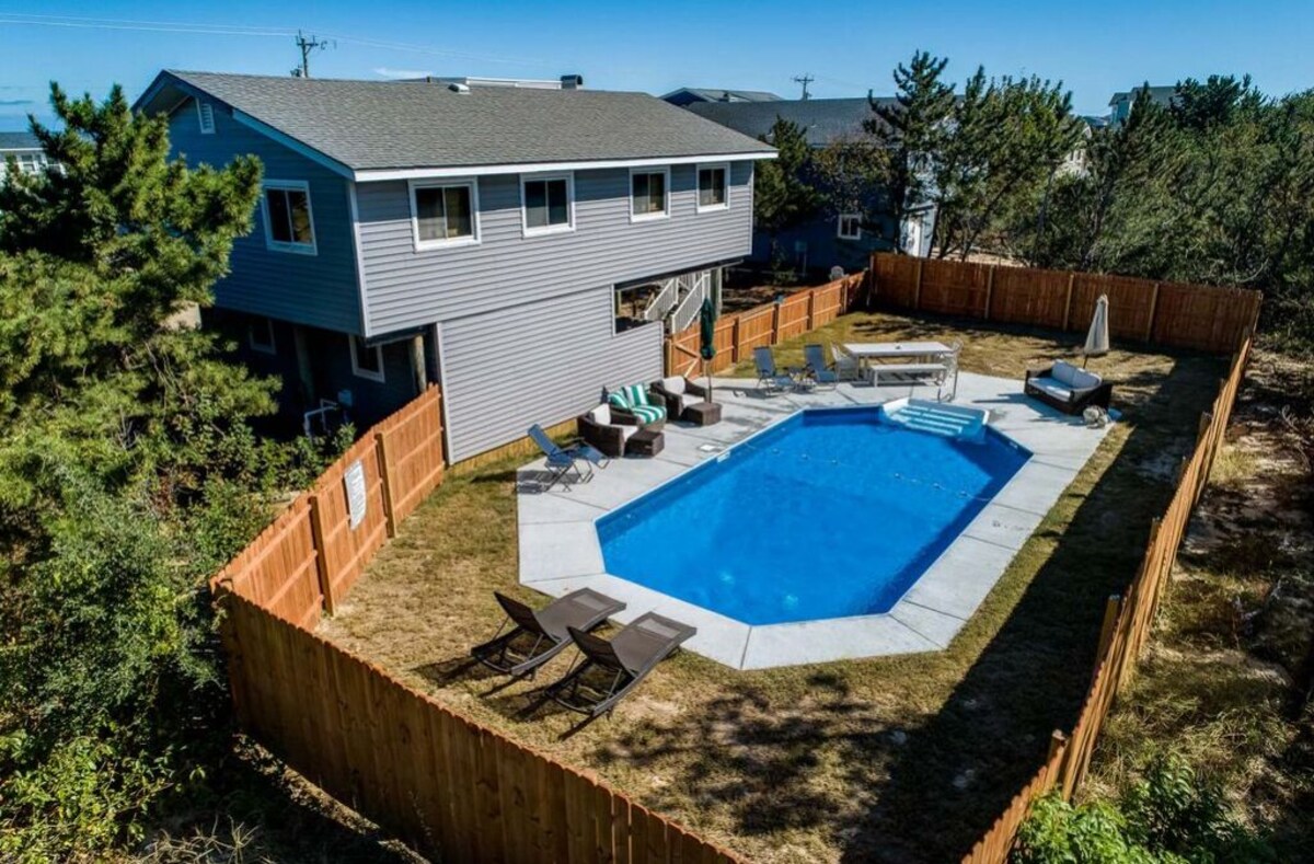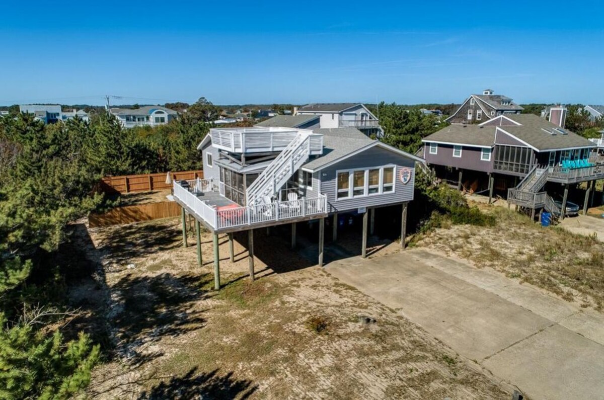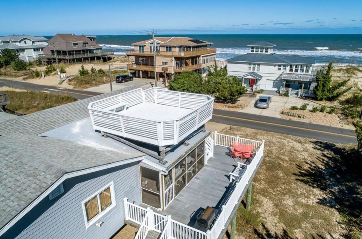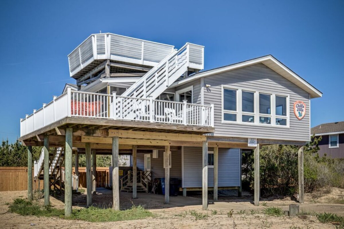 Welcome to ChillaVilla, your perfect beachside escape! As a local family, we’ve proudly offered this charming rental since 2018. Overview: Relax in our delightful 5-bedroom, 2.5-bath retreat (please note, VRBO has not updated the bath information). With beach access just a short walk away, you’ll find it hard to choose between a day on the sand or lounging by your private pool. ChillaVilla features a beautiful blend of cozy character and modern updates. It’s dog-friendly, so your furry companions can join in on the fun! Enjoy stunning views from the rooftop deck, and let the wall of windows in the great room fill the space with natural light and glimpses of the ocean. Imagine unwinding by the pool after a day at the beach, and take advantage of the convenient half bath located in the large laundry room. Living Space: The bright, open-concept great room, dining area, and kitchen create an inviting atmosphere. The kitchen, equipped with new quartz countertops and stainless steel appliances, features a bar with a sink that overlooks the great room—perfect for family meal prep. The large island allows everyone to join in, and it’s an excellent spot for quick breakfasts after your morning beach walk. The dining table accommodates 10, and the bar seats 4. Step out onto the screened porch to enjoy the refreshing ocean breeze—an ideal spot for relaxation. The great room is equipped with a 55-inch LCD TV, and each bedroom also has its own TV. Stay connected with high-speed internet and enjoy streaming services like Netflix, Prime, Disney+, and Discovery+, and ESPN+ Layout: Top Level: Great Room with 55\ ,