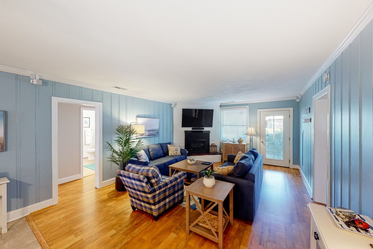 Off The Board Our calendar is updated in real-time & our nightly rates are accurately displayed. Simply enter your desired dates and click 'Book Now!' This delightful beach home is reminiscent of coastal classic cottages where groups vacation year after year. The charming and sunny exterior features a professionally landscaped and enclosed yard lends for a perfect, relaxing vacation. Enjoy endless hours in the pool and sunning in comfortable chairs and chaises. The upper-level sun deck is a great spot for catching the gorgeous evening sunsets over the canal! The breezy screened porch is comfortably furnished and makes a great location for a relaxing morning coffee, enjoying the sights and sounds of summer. The interior is painted with warm beach colors and filled with beach and nautical art. A spacious family room awaits your guests, offering a large TV, and five bedrooms that include a large king suite and private bath, with a separate door leading to the pool. All bedrooms offer TVs, and the two additional large bathrooms are located next to the other bedrooms. The layout makes this a great choice for a family to share with friends or relatives. The kitchen is open and well-equipped with cabinets and gadgets to help you prepare sumptuous summer meals. Access to the beach path is right across from the home. The owners offer you WiFi, a gas grill, and outdoor speakers. Things to Know Check-in time: 4:00 p.m. Check-out time: 10:00 a.m. All guests shall abide by Vacasa’s good neighbor policy and shall not engage in illegal activity. Quiet hours are from 10:00 p.m. to 8:00 a.m. No smoking is permitted anywhere on the premises. The pool will be open from late April through early/mid-October. The fireplace is not operational. This property is managed by Vacasa Virginia LLC. If you are bringing a dog on your trip, the pet fee is already included in your quote when selecting ‘Yes’ to pets. If you would like to add more dogs, please contact us. Parking notes: There is free parking available for 5 vehicles. Please note: this home resides in a noise-sensitive area and the owners participate in our Good Neighbor protection program. Our smart home technology will alert our team if excessive decibel or occupancy levels are detected, allowing us to reach out directly with a reminder of maximum occupancy and quiet hours. This technology is privacy compliant, and only monitors the presence of decibels and devices-not any personal conversation or information. Thank you for supporting our efforts to be good neighbors! Damage waiver: The total cost of your reservation for this Property includes a nightly damage waiver fee, plus tax if applicable (the “Damage Waiver”). (A discount may be applied for stays of 28 nights or longer, if permitted.) The Damage Waiver covers you for up to $3,000 of accidental damage to the Property or its contents (such as furniture, fixtures, and appliances) as long as you report the incident to the host prior to checking out. The Damage Waiver fee eliminates the need for a traditional security deposit. More information can be downloaded from the \ on the checkout page. Due to local laws or HOA requirements, guests must be at least 25 years of age to book. Guests under 25 must be accompanied by a parent or legal guardian for the duration of the reservation. Our prices include all fees. No hidden fees.