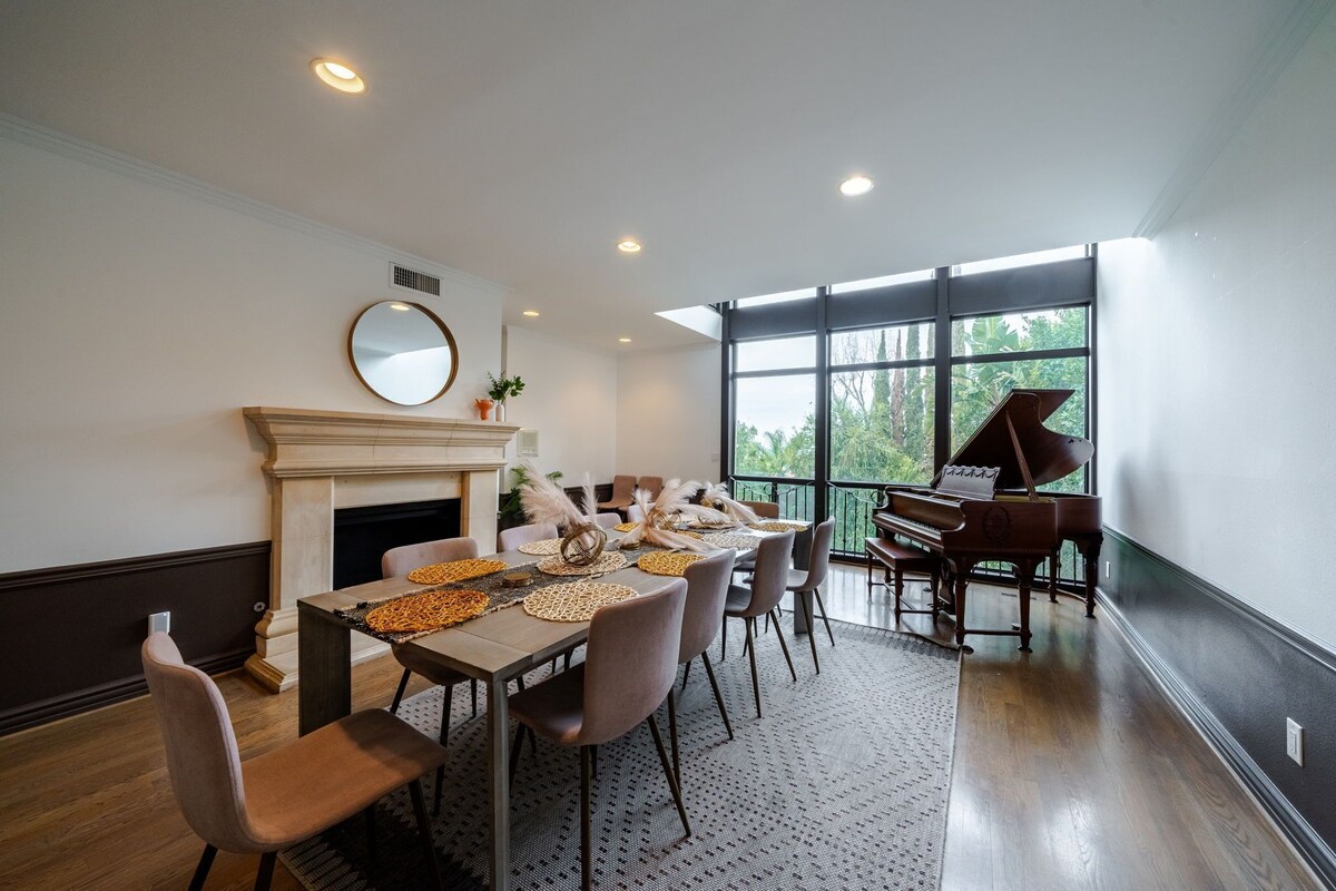 Escape to Tranquility at our Stylish Sherman Oaks Mansion with Heated Pool and Jacuzzi - 4400 Sq Ft, 3 story, 6br/3.5ba - Pool/Spa - Large fully equipped kitchen - Formal dining - Indoor Bar - Poolside-kitchen w/ bar - Pool Table - Courtyard dining - Very Private - Newly added Ping Pong Table - Fully sound proofed Music Studio: many famous musicians have recorded there - Indoor Sauna - Grand Piano(not tuned) Swanky, sophisticated and sumptuous are words to describe the interior of this glamorous 4,400 sq ft home formerly owned by a Hollywood celebrity. Highlights: - 3-story mansion has 6 bedrooms, with a total of 8 beds, (all queen beds) 3 full bathrooms and 1 half bathroom - The home sleeps 16 guests - Garage, and driveway with parking for 4-5 cars. - Fast Wifi with Smart TV's equipped with Netflix - Board Games Top (1st) Floor: Enter this home on the top (1st) floor through a street-level upper courtyard adjacent to the driveway. - Two bedrooms; a master with a queen-size bed and ensuite bath, and guest bedroom #2 which has two queen-size beds. - Master has an ensuite bath, huge, dazzling master closet, large slanted windows, a smart TV and a work desk and chair. - Ensuite master bathroom features an oversized soaking tub, custom tiled walk-in shower, and a huge, granite, double-sink vanity. Middle (2nd) Floor The second (middle) floor of the home has an open floor plan containing the kitchen, living room, game room with pool table, and formal dining room. The gourmet kitchen boasts gorgeous, extra-thick black granite counters, plenty of cabinet space, kitchen island with sink, state of the art stainless steel appliances including a french door sub-zero fridge, dual convection oven, gas range and dishwasher. The breakfast bar offers stool seating for six; below a stunning modern, rectangular, crystal chandelier. There is a covered, outdoor teak-wood dining table with seating for six, on a balcony just off the kitchen. A game area with a pool table divides the kitchen from the living room. (This home has games for the whole family, such as giant jenga, monopoly, etc.) There’s a corner bar beside the pool table with stool seating for four. A large Smart TV sits above the polished granite fireplace. A panel of sliding glass doors lead from the living room out to a balcony overlooking the courtyard and pool. The formal dining room has a large modern-farmhouse style table that seats ten guests. Floor to ceiling windows offer guests a calming view of azure skies and lush green courtyard foliage. It’s like dining in the treetops! A dramatic, contemporary stone fireplace in the middle of the room and a stylish circular wall cut-out at the back of the room are architectural details that add an ambiance of sophistication and grandeur to the dining room. Lower (3rd) Floor: The lower (3rd) floor of this Sherman Oaks mansion has four bedrooms, and also opens up to the outdoor courtyard with dining area, outdoor kitchen and pool. Bedroom #3 has a queen-size bed, bedroom #4 has two queen beds, bedroom #5 has a queen, and bedroom #6 has a queen. These lower level bedrooms share two bathrooms. ----------- OTHER THINGS TO NOTE: Pool/Spa Heating: If you'd like to enjoy a warm swim or soak, we offer pool heating for an additional $100 per night. Please note, the pool can take anywhere from 5-10+ hours to heat up, depending on the outside temperature. Spa takes 45 minutes to 4 hours. Note that you cannot heat both at the same time. Please keep in mind: our pool is surrounded by beautiful nature, which can sometimes lead to leaves and twigs ending up in the water. On windy days, there may be more leaves than usual, but we do have a twice a week pool cleaning service to keep it in tip-top shape. We do keep a pool net there just in case you need to use it. PLEASE NOTE: we’re in the process of replacing the old fridge, and the new one is already installed at the property. You’ll have a fridge available for use, but please note that the freezer section won’t be functional for now. Thanks so much for your understanding! To abide by local legal requirements, you may be asked to complete a secure verification portal by providing a copy of your official government-issued photo ID, confirming your contact information and sharing the purpose of your stay. The information is collected for screening and verification only and is not stored or used for any other purposes. By making a reservation, you acknowledge that you may be required to provide a copy of a valid government-issued ID prior to check-in. You understand that your check-in instructions might be withheld until you have successfully completed verification steps in our guest portal. For security and to prevent unauthorized parties, please be aware there are two cameras on the property: - Ring Doorbell Camera at the front door entrance - Backyard facing pool ----------- We're thrilled to have you considering our property for your next stay! When making your reservation, we'd love to know a bit more about your group. If you wouldn't mind, please provide us with the following information when you book or message us: 1. How many guests will be staying with us and their approximate age range? Will there be any visitors stopping by during your stay? 2. The purpose of your visit – is this a relaxing vacation, a busy business trip, or something else entirely? 3. Confirmation that you've had a chance to read through our house rules. You can find these in the \ section at the bottom of the listing. ------------- House Rules: Welcome to our home! We want you to have an amazing time, so we've put together some friendly tips to ensure everyone has a great stay: 1. **No smoking or parties, please!** We have a NoiseAware and Ring doorbell to help us keep things quiet and peaceful for all. 2. **Respect our neighbors.** Please keep things quiet after 10 pm, especially any music or outdoor gatherings. No swimming for groups or kids after 10 pm either. 3. **Let us k
