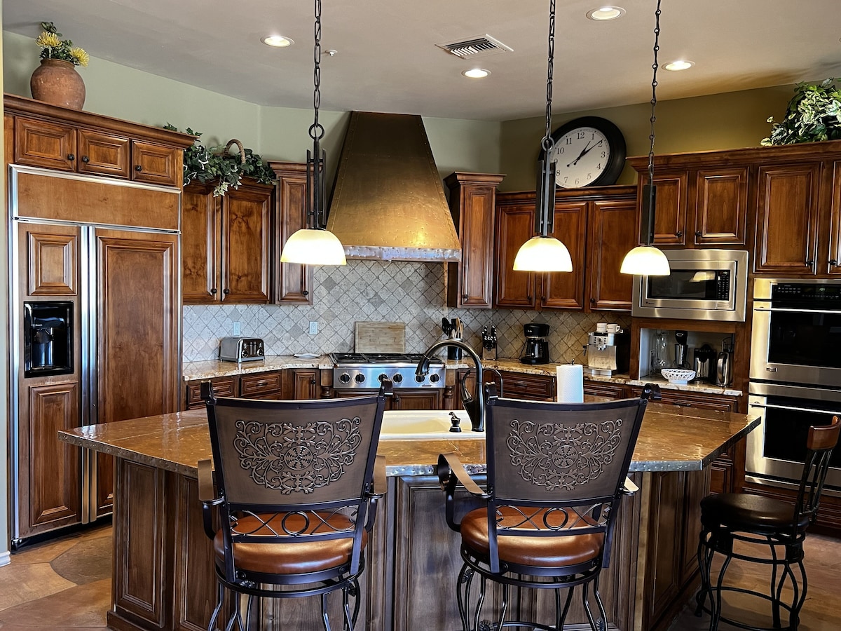 Welcome to your desert oasis, where luxury meets the rugged beauty of the Sonoran landscape. This custom vacation home is the epitome of desert elegance, designed to provide the ultimate retreat for you and your fellow travelers. Located at 3000 ft elevation in the foothills north of Phoenix, the air is cooler and cleaner than in the city. Cave Creek and Carefree are adjacent towns minutes away, sharing a unique natural environment but contrasting personalities. The location is also ideal for day trips south to Old Town Scottsdale and Phoenix or north to Sedona, Prescott, Jerome, and Flagstaff, and for golfers there are 15 courses within 15 miles. As you enter the main house, you're greeted by spacious interiors adorned with contemporary furnishings and tasteful southwestern accents. The open-concept living area invites relaxation with plush seating and panoramic views of the surrounding desert scenery. The master bedroom features a California king bed, shower, spa tub, and walk-in closet. The two additional bedrooms have queen beds and connected private bathrooms with his/her sinks and showers. Whip up culinary delights in the gourmet kitchen, equipped with a large copper-clad island, 6-burner gas range, double convection ovens, state-of-the-art appliances, granite countertops, and ample space for cooking and entertaining. Step outside onto the expansive patio, where your private paradise awaits. The house backs up to the beautiful Tonto National Forest which is home to the unique wildlife of the Sonoran Desert. It is not unusual to see deer, javalena, coyotes, roadrunners, and bobcats near or on the property. Take a refreshing dip in the sparkling pool or soothe your muscles in the bubbling spa, all while soaking up the warm Arizona sun. Fire up the outdoor barbecue and dine alfresco under the stars. Cross the custom bridge spanning the desert wash, where you'll find a charming casita, offering additional accommodations for your guests. With its own private courtyard/covered patio and outdoor fireplace, it's the perfect spot to unwind and enjoy the tranquility of the desert. \ is a phrase often used to characterize the city. It captures the essence of Scottsdale as a place that seamlessly blends the natural beauty of the desert landscape with upscale amenities and a vibrant cultural scene. Immerse yourself in the local art scene, wander through the galleries of Old Town or experience the iconic architecture of Taliesin West, Frank Lloyd Wright's winter home. Indulge in world-class dining at award-winning restaurants or rejuvenate your senses at one of the many renowned spas. With its sun-kissed days and star-filled nights, Scottsdale promises an unforgettable escape. Venture west to Carefree, a hidden gem nestled in the foothills of the Continental Mountains. Downtown Carefree has quaint shops and boutiques, art galleries, restaurants and a small amphitheater that hosts the farmer’s market, art shows, and cultural events. In the center of town, you’ll see the largest Sundial in the country. Carefree is characterized by its charming small town feel and quaint street names like Ho Hum Road, Tranquil Trail and Easy Street. Carefree also features some of the best local dining. Carefree invites you to rediscover the simple pleasures of life. Just a short drive away lies Cave Creek, a rugged frontier town that prides itself on maintaining the flavor of the Old West. Experience the thrill of a horseback ride through the natural Sonoran Desert terrain or embark on an off-road adventure along rugged mountain trails. Discover the rich cultural heritage of the area at historic sites like Frontier Town or immerse yourself in the lively atmosphere of local saloons and honky-tonks. The restaurants lining Cave Creek’s main road feature a wide range of fare from fine dining to cowboy cookouts. You will also find fun western stores, art galleries and specialty shops like those in the new Stagecoach Village shopping and dining district. Whether you're seeking outdoor excitement or authentic western charm, Cave Creek offers a taste of the untamed spirit of the desert. From the cosmopolitan allure of Scottsdale to the laid-back charm of Carefree and the rugged frontier spirit of Cave Creek, this trio of Arizona destinations promises an unforgettable visit filled with adventure, discovery, and endless possibilities. Come experience the magic of the Sonoran Desert from the comfort of your own private sanctuary and create memories that will last a lifetime. Our prices include all fees. No hidden fees.
