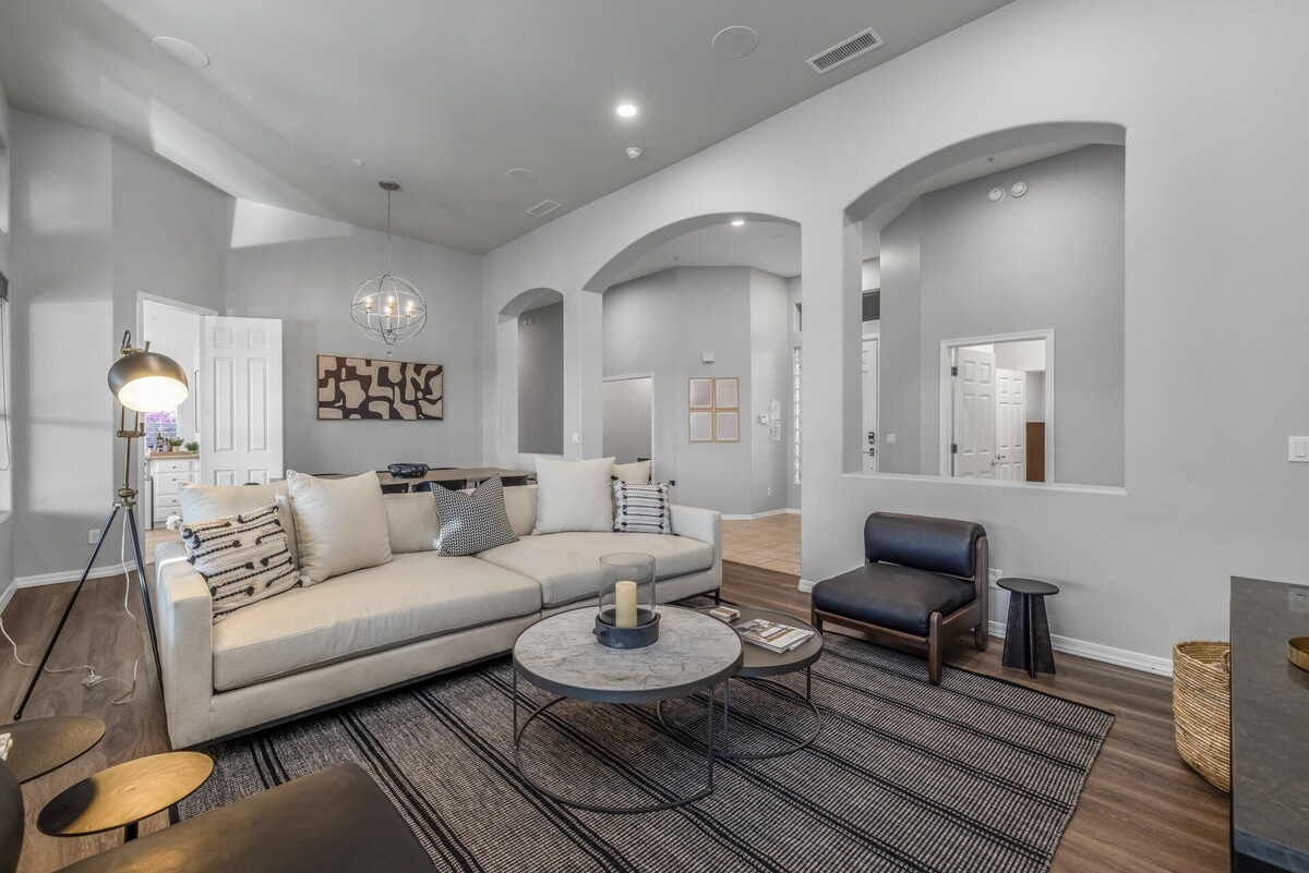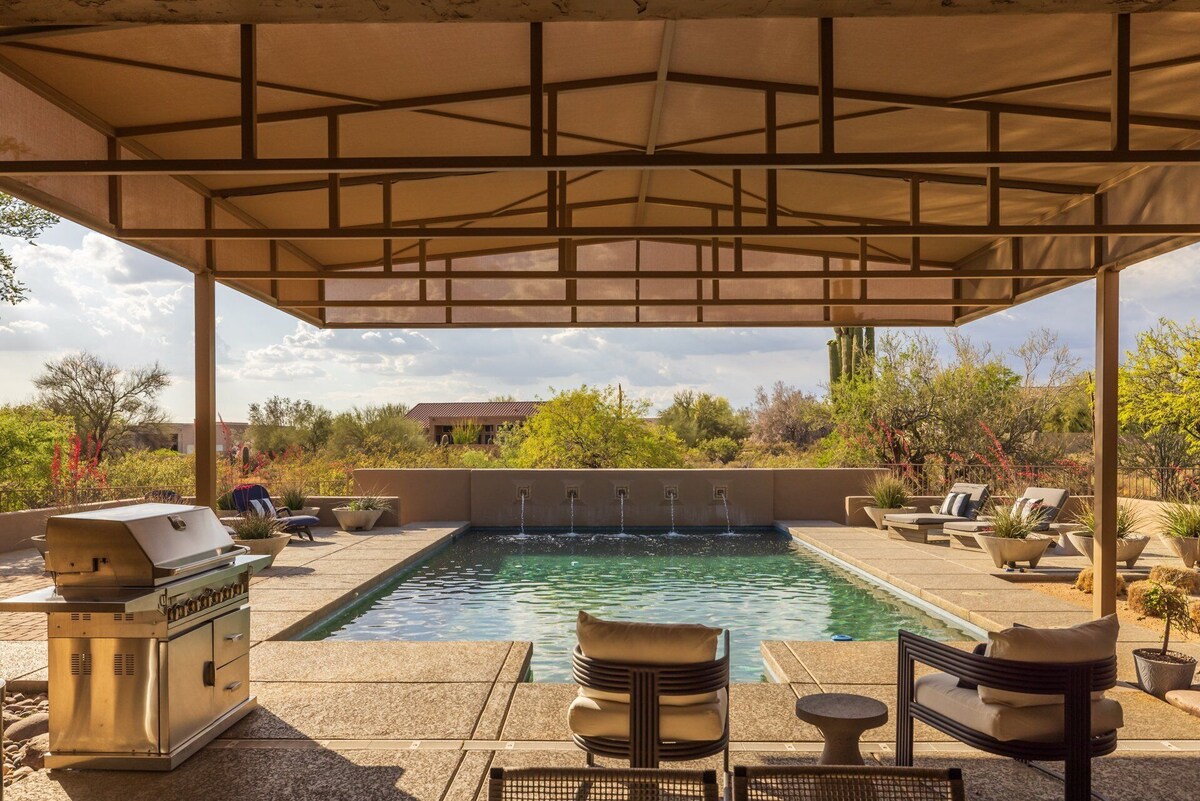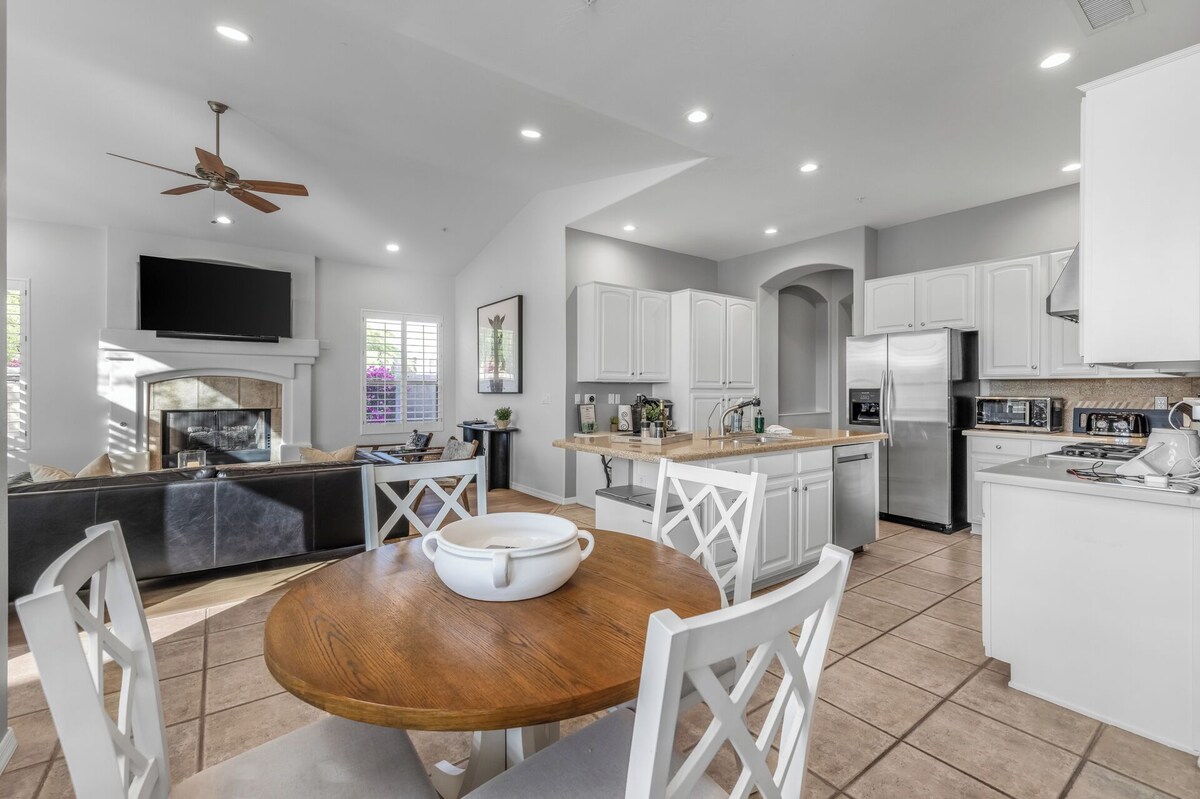 Located in the lovely North Scottsdale area is this stunning Scottsdale Redbird property sits on ¾ acre lot within a sought-after neighborhood. Its prime location places you conveniently close to numerous local activities and attractions, such as golfing, sightseeing, dining, and more. This stunning single-story home features 3,000 square feet with three bedrooms, an office and three bathrooms to accommodate up to eight guests. After stepping through the front door, you will find yourself in the open floor plan living area holding the living room, kitchen and dining room — all accented by high ceilings. The space is further accentuated by large windows overlooking the resort-style backyard. Main Living Room: This room offers comfortable leather furnishing including and a 55” Smart TV Second Living Room: This open area offers leather sofa seating, accent chairs and a gas fireplace and opens to the kitchen area- Perfect for gatherings! Kitchen: The kitchen is fully equipped with stainless steel appliances. The kitchen island offers seating for 3. Enjoy your morning coffee at the breakfast table which offers seating for 4. There's even a lighted 48-bottle wine fridge. Dining Room: The formal dining area offers seating for six guests. Office: Need to get some work done while on vacation? Enjoy this private office space that offers a desk area and wireless printer. Bedrooms/Bathrooms: Master bedroom — King bed, 55” Smart TV and private access to the backyard. Enjoy a book in the seating area; the spacious ensuite bathroom offers a double sink vanity with a spacious shower and oversized tub. Bedroom 2 — King size bed, 55” Smart TV and ensuite bathroom with tub/shower combo. Bedroom 3 — Queen size bed, 55” Smart TV. Access to full shared bathroom with shower. Bedroom 4/Bonus Room — Located off the laundry room is the bonus room, which offers a Queen murphy bed for additional sleeping. Also in this space is seating and an additional fridge. Full shared bathroom 3 offers a shower. Outdoor spaces: The outdoor area is your personal sanctuary! Take a refreshing swim in the private, unheated saltwater pool or unwind under the covered patio. With a variety of seating options available, you can bask in the sun or enjoy a meal in the shade. Additionally, the space features a propane BBQ for your cooking pleasures. Pool: Yes, private and not heated Hot Tub: No Internet Access: High-speed Wi-Fi Internet Entertainment: Multiple Smart TVs throughout Laundry: Full-size washer and dryer in the laundry room Parking: Two car garage and additional parking in driveway for 2 vehicles Air conditioning: Yes, central Pets: Yes, one dog allowed with a $250 non-refundable pet fee Security cameras: No Distances: TPC Scottsdale — 7.5 miles Scottsdale Quarter — 7.8 miles Scottsdale Airport — 8.7 miles Scottsdale Waterfront & Fashion Square Mall – 20 miles Old Town Scottsdale – 21 miles Scottsdale Museum of Contemporary Art — 21 miles Please note: Pursuant to ARS § 32-2121 Property Manager does not solicit, arrange or accept reservations or monies, for occupancies of greater than 31 days. Contact us for details! Arizona TPT #21390393 City of Scottsdale Permit #2038788 Our prices include all fees. No hidden fees.