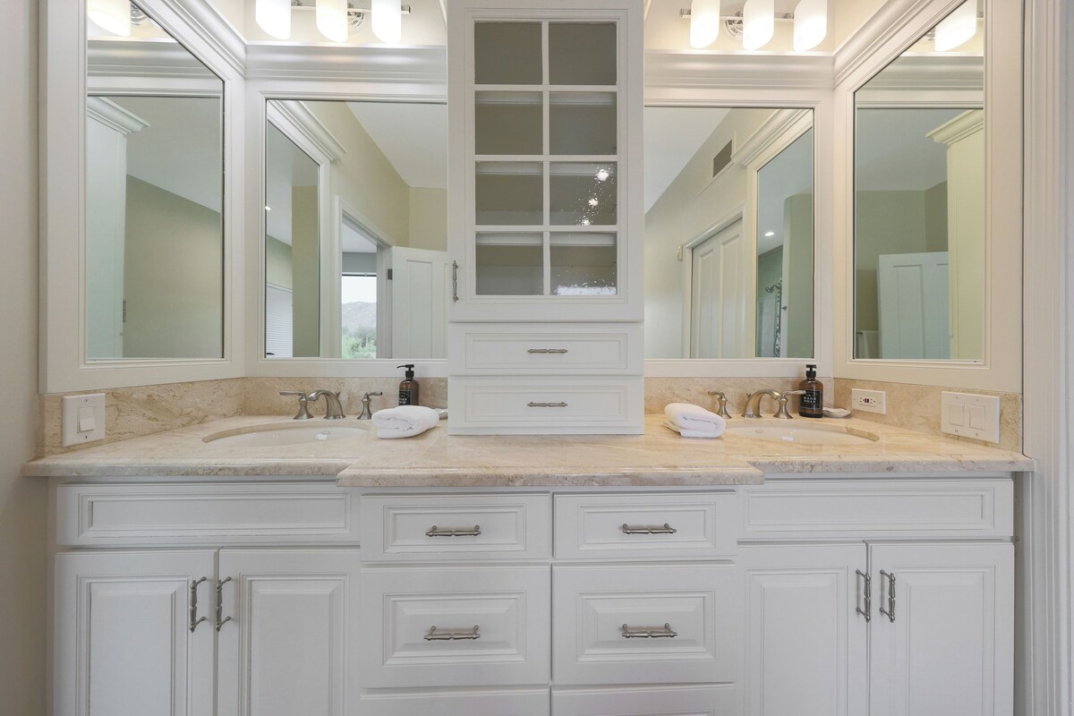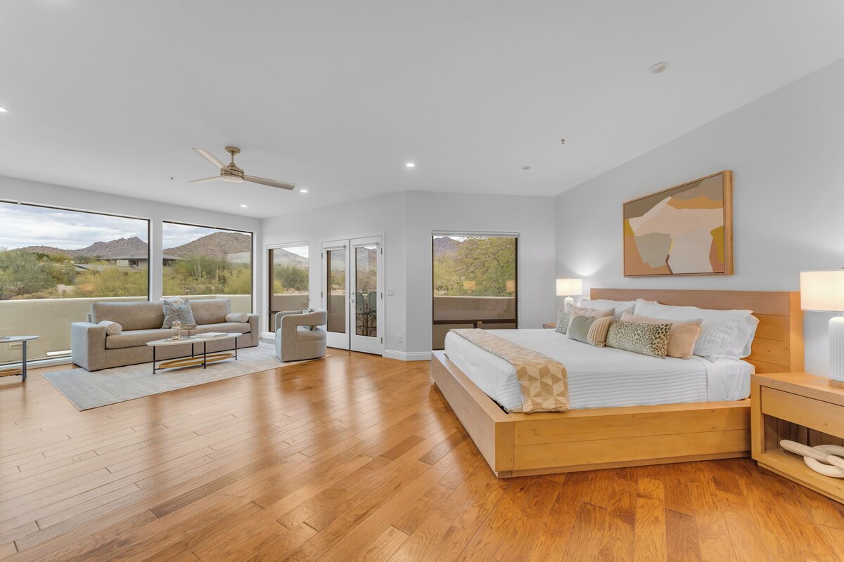 Experience Scottsdale with friends and family in this 6-bedroom house. This fantastic property boasts 5 king beds, 3 bunk beds, and 5.5 bathrooms with all the essentials. 5 of the 6 spacious bedrooms are ensuites! This new rental has activities for everyone to do from the gameroom to the putting green. The fully stocked kitchen and large living room with plenty of seating and excellent mountain views wont disappoint. This property is close to golf, restaurants and shopping. Grayhawk Golf Club - 5 Minutes Troon Golf Club - 14 Minutes TPC Scottsdale - 10 Minutes Kierland Commons - 15 Minutes Phoenix Sky Harbor Airport - 30 Minutes Scottsdale Airport - 15 Minutes NFL Sunday Ticket included Indoor fireplaces are non functional fireplaces. Our prices include all fees. No hidden fees.