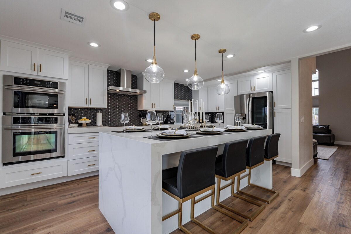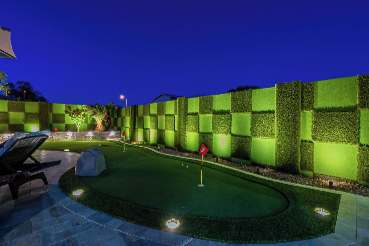 Amazing location, just a little more than 1 mile away from State Farm Arena, Westgate Entertainment District, Desert Diamond Casino, Peoria Sports Complex, & Top Golf. The stadium is a $142 million venue where the AZ Cardinals & Coyotes play football/hockey. The backyard features a HEATED Pebble-Tec POOL, Billiards, Mini-Putt-Putt, Jacuzzi, Ping-Pong Table, Fire Pit, BBQ Grill, Foosball, & Jenga. Each room is equipped with Smart TVs WITH CABLE. The home is internet/Wi-Fi ready and offers 24-hour check-in with a Smart Lock (No Key Needed). \ applies here. This house has it all. The backyard is a high-end resort, featuring beautiful custom landscaping worth $250k. It includes outdoor Travertine flooring around the heated Pebble-Tec pool, a spa/hot tub, 9 TVs inside, a custom Kitchen-Aid BBQ and kitchenette with an outdoor stove, a 12-person outdoor table, 12-person firepit tables with a custom pergola, 10 sun lounge chairs, and 2 zero-gravity floating lounge chairs. For games, the backyard has a mini-putt-putt, ping-pong table, foosball table, cornhole, Jenga, and a dartboard. Inside the game room, you’ll find a billiards table, 5 arcade games (Pac Man, Galaga, NBA Jam, Mortal Combat 2, Big Buck Hunter), and 25 other board games. Some of the games include Monopoly, Apples to Apples, Poker, Chess, Playing Cards, Cards Against Humanity, and another game called \ As soon as you walk inside the kitchen, you’ll notice built-in Samsung appliances, a new Samsung refrigerator, and a 36\ re at "home" when you pool\ We do not allow you to 'instant book' this home. After we share the address with you in the VRBO message log, we will pre-approve your request. This home is not located in Scottsdale, but rather in nearby Peoria, Arizona. Once the address is provided, you can determine if the location is suitable for your group. If the location meets your requirements, you can then enter your credit card information to book the home. If the location is not suitable, there is no need to enter your credit card information or proceed with the booking. The Listing ID NUMBER on VRBO is 4480321. You can enter the listing ID into the VRBO search engine to view a map of the home's location. Please confirm that the address is suitable for your group before entering your credit card information, as all terms and conditions remain the same. This serves as an addendum to the listing description on VRBO.** On a side note, the pictures displayed in this listing are of the actual home you are booking. The VRBO cancellation policy is a no-refund policy, so consider obtaining travel insurance if you are concerned about being unable to honor your reservation. Events and parties of any kind are prohibited at all homes we manage. We do not allow guests or visitors. The price is calculated based on the amount of guests inputted on the reservation. Prices are higher for larger groups and more competitive for smaller groups. This property has surveillance cameras outdoors in the front and backyard that record audio and video. Such security is standard in high-end accommodations and is mandated by insurance for liability. For concerns about camera use, please contact me before booking. Our prices include all fees. No hidden fees.