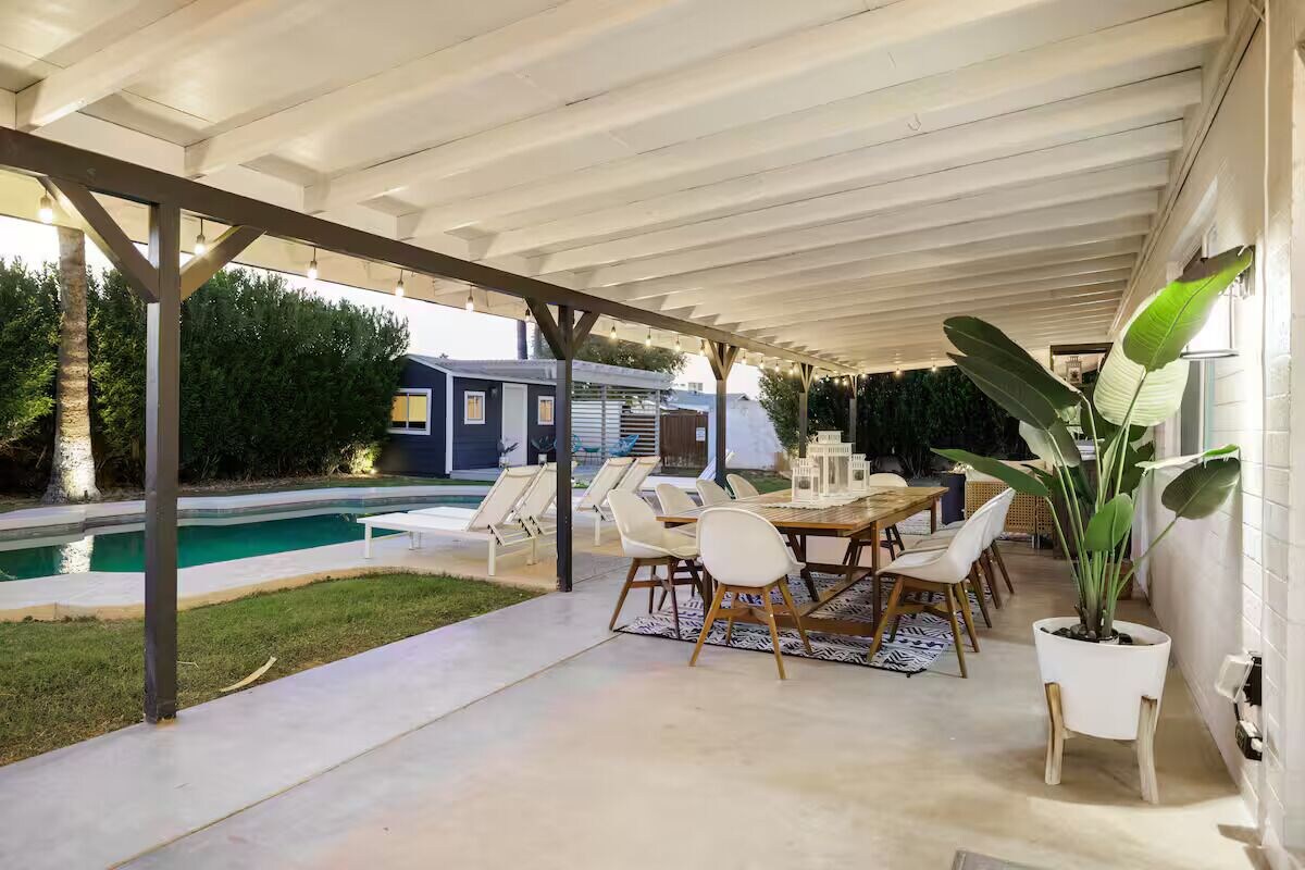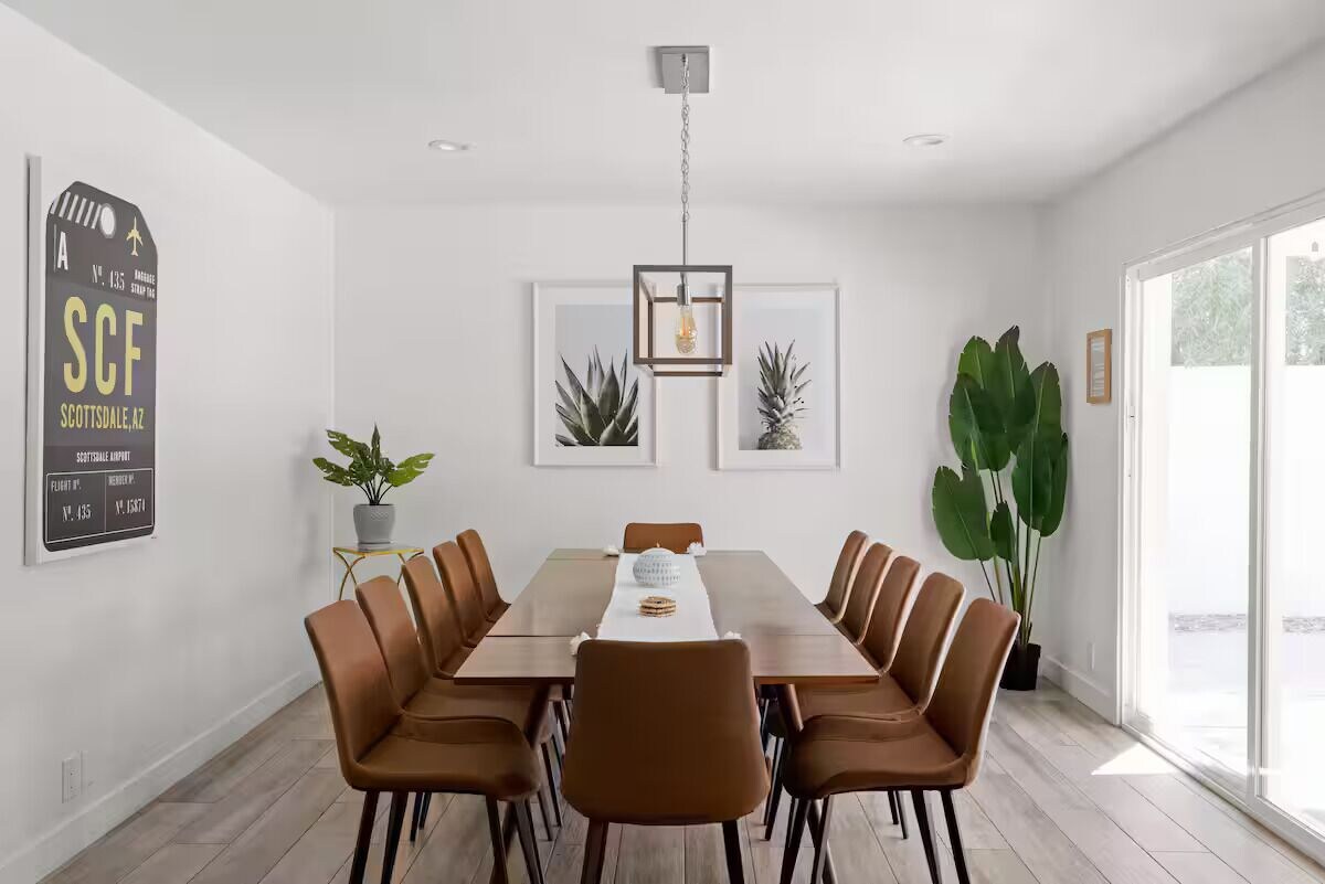 Blue Agave is a newly remodeled oasis only minutes away from Old Town Scottsdale! This open floor plan is perfect for young adults or families to enjoy. Complete with a heated pool, cornhole, BBQ grill, and outdoor dining with tropical views of palm trees and mountains! This is the ultimate private resort vibe, with picturesque spots around every corner! Our prices include all fees. No hidden fees.