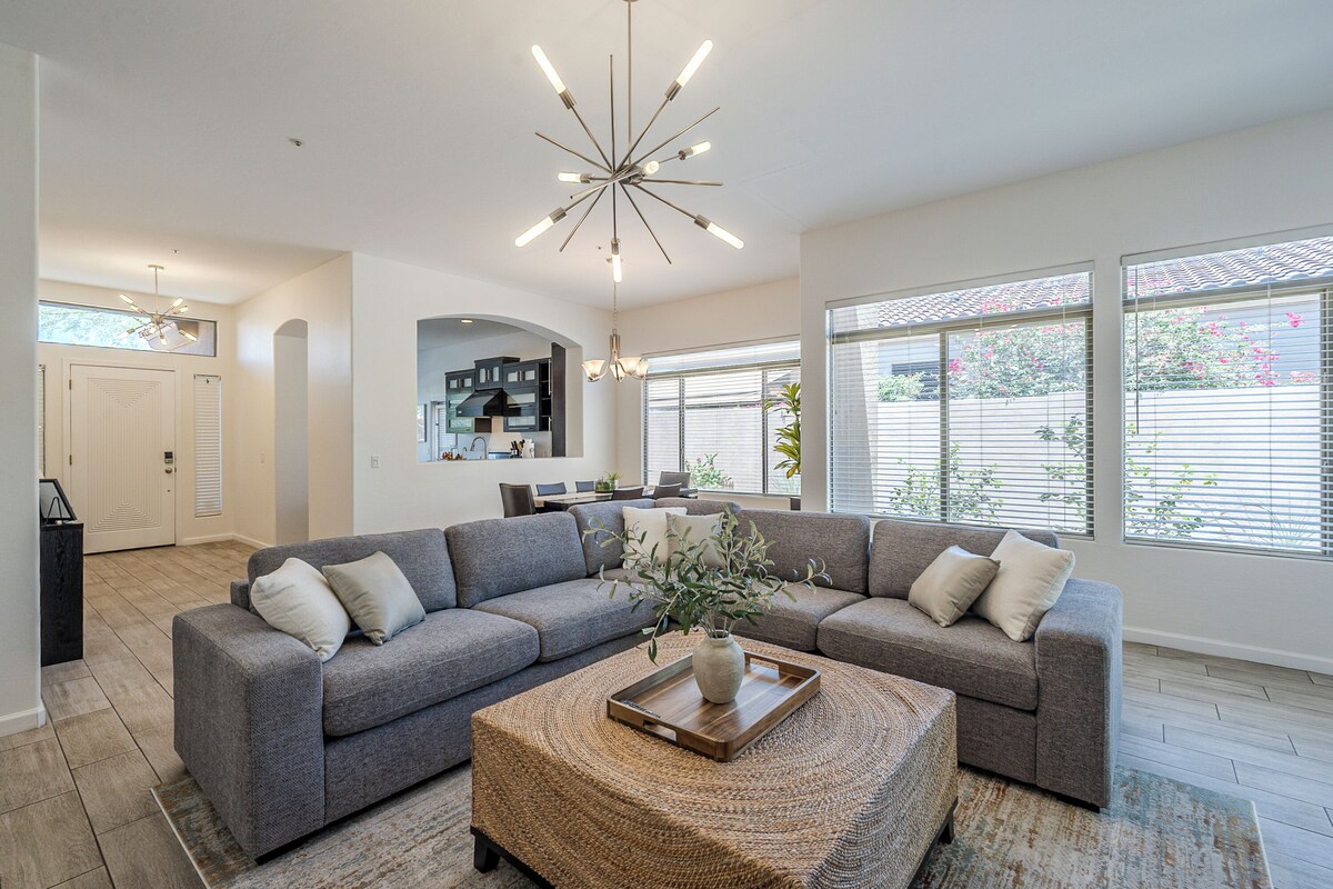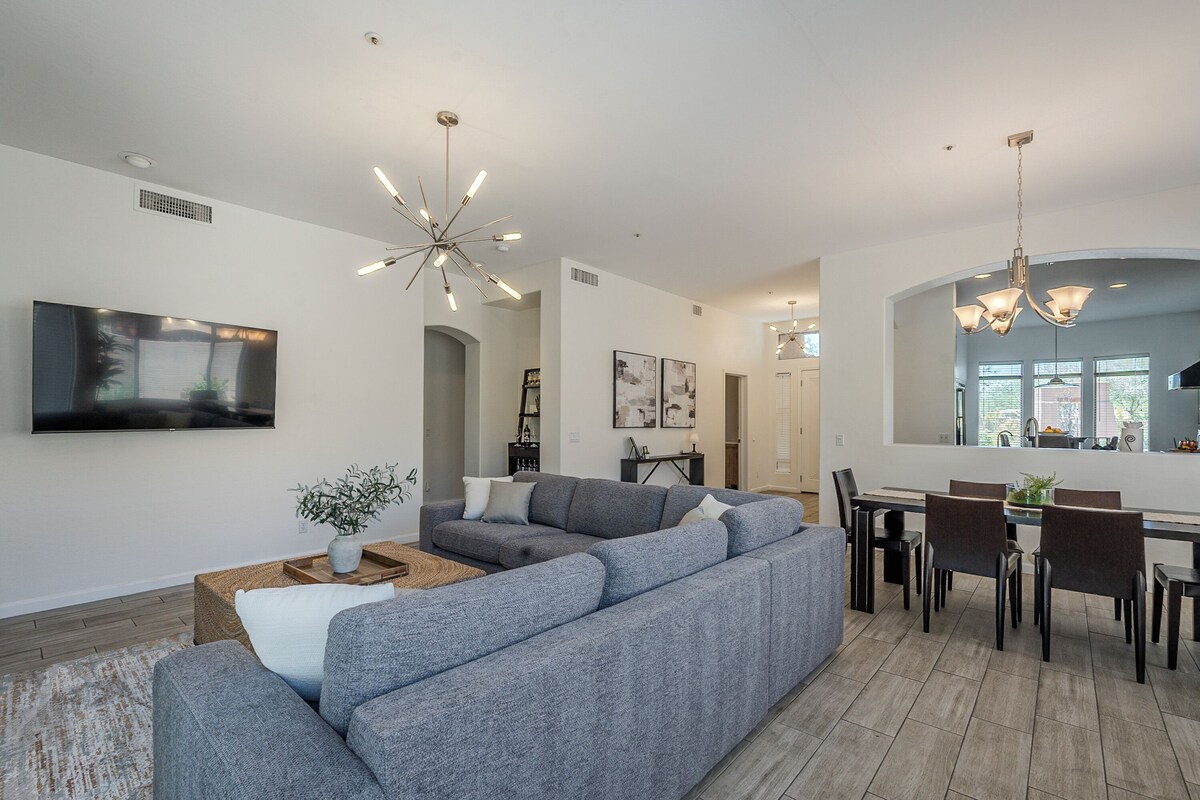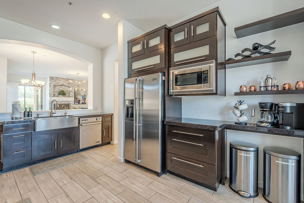 Perfectly situated in the gated community of Greyhawk in North Scottsdale, this retreat is your escape from it all. Greyhawk is a golfer's paradise with 2 world class courses. Enjoy miles of paved walking trails, walk to neighborhood restaurants & coffee shops, and enjoy the heated community pool year round. Perfect for snowbirds, golfers, couples and families. 8 mins → TPC Scottsdale 13 mins → Kierland Shopping Center 25 mins → Old Town and Fashion Square Mall 30 mins → Sky Harbor Airport ☼ 1900ft² TOTAL ☼ 3 bedrooms ☼ Large chef's kitchen ☼2 full bathrooms ☼ Built-in BBQ ☼ Fully fenced backyard ☼ Chef's Kitchen w/ high-end appliances ☼ Smart TVs in all rooms ☼ 1 King Bed, 2 Queens ☼ Dedicated workspace ☼ 2-Car Garage ☆☆ KITCHEN☆☆ - Large and fully stocked chef's kitchen - Coffee and tea bar with creamer and sweetener - Keurig machine & drip coffee pot (ground coffee + filters provided, BYO Pods ) - Toasters, Ninja Blender, electric tea kettle - Pots, pans, baking dishes and sheets - Storage containers for leftovers - Refrigerator: filtered water + ice dispenser - Dishwasher with detergent - Spices and olive oil - Hand soap and dish soap provided - Cocktail shaker and stemmed glassware ☆☆DINING☆☆ - Dining table seats 6 - Kitchen bistro table seats 4 - Outdoor dining table seats 4 ☆☆BATHROOMS☆☆ - Primary Bath: walk-in shower + soaking tub + double vanity - Second Bath: walk shower + vanity - Fluffy towels, washcloths and hand towels provided - Hair dryer in each bathroom - Shampoo, conditioner, body wash, TP and hand soap provided ☆☆BEDROOMS☆☆ - Primary Bedroom: King bed + dresser & walk-in closet + Smart TV + patio access - Bedroom 2: Queen bed + closet + Smart TV - Bedroom 3: Queen bed + closet + Smart TV *These bedrooms are all down one hallway ☆☆ENTERTAINMENT☆☆ - 65\ ,