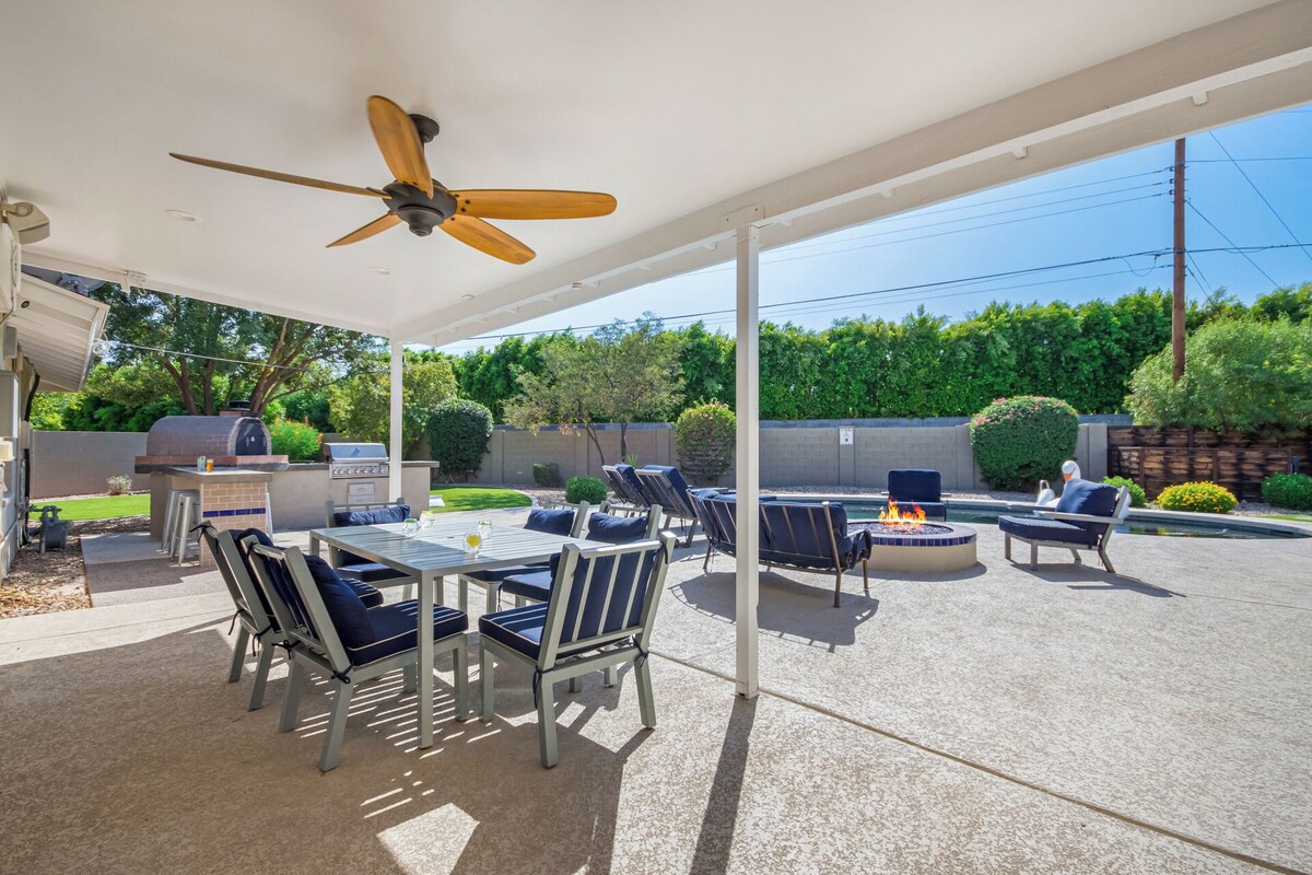 Welcome to your Mountain Serenity, a stunning desert dwelling in the heart of Old Town Scottsdale! This gorgeous 5-bedroom, 4-bathroom desert home perfectly combines timeless elegance and contemporary luxury. The breathtaking views of the iconic Camelback Mountain provide an awe-inspiring backdrop for the most spectacular sunsets you can witness right from your backyard. Minutes from major shopping centers with hundreds of high-end restaurants, shops, and attractions. It is a perfect getaway for shoppers, entertainment, or golf course seekers. Whichever, you will want to stay in this home and never leave! Not to mention, there are many activities for people of all ages. IF YOU ARE INTERESTED IN THIS PROPERTY, PLEASE READ THE LISTING ENTIRELY. By booking, the guest agrees they have read all the details about the property and agree to our terms and conditions. Private Yard: You decide to start your day with a dip in the private pool. The crystal-clear water is inviting, and you enjoy a refreshing swim while soaking up the warm Arizona sun. The poolside loungers provide the perfect spot to relax and unwind as you take in the panoramic desert views. After your swim, you head over to the fire pit area. Surrounded by comfortable seating, it's the ideal place to gather with your family and friends. You light a cozy fire pit and share stories and laughter as the flames dance in the desert breeze. As the day progresses, you decide to put the wood-burning pizza oven to good use. You create a delectable homemade pizza by gathering fresh ingredients from the local farmer's market. The tantalizing aroma fills the air as you bake your creation to perfection. With a mouthwatering slice in hand, you enjoy a leisurely lunch on the spacious patio, savoring the flavors and the picturesque views. As the day draws to a close, you relax on the patio, watching the sunset colors paint the sky above Camelback Mountain. Living Area: Step inside this enchanting desert-dwelling and be greeted by a spacious living room that invites you to unwind and relax. Sink into the plush sofa as you catch up on your favorite primetime shows or indulge in a movie marathon. The windows bring the mesmerizing desert landscape indoors, allowing you to marvel at the natural beauty and observe the vibrant Arizona wildlife. The living room sets the stage for unforgettable moments, with the mountains majestically framing the setting sun. Kitchen: The fully equipped kitchen has stainless steel appliances, plenty of granite countertop area, and all the essentials to unleash your inner chef. Prepare delicious meals or whip up a quick bite to savor at the breakfast bar on the island. Treat your loved ones to an intimate backyard dinner on the patio for a special occasion, creating your own private sanctuary amidst the stunning natural surroundings. As the evening unfolds, gather around the fire pit and recount the day's adventures over the delightful warmth of roasted marshmallows. Bedrooms: Mountain Serenity features 5 beautifully appointed bedrooms with a range of bed sizes. The primary bedroom offers luxurious king-sized beds, providing the utmost comfort for a restful night's sleep. The second bedroom features a cozy queen-sized bed, perfect for a peaceful retreat. The third and fourth bedrooms both have 2 full-size beds, perfect for more room to invite friends and family on your trip. The fifth bedroom has one full bed, one twin bed, and one twin over full bed size, which is perfect for sleeping more guests. Entertainment: Old Town Scottsdale is renowned for its shopping scene. You can visit the Scottsdale Fashion Square, one of the largest shopping malls in the Southwest, featuring high-end brands and designer boutiques. The nearby Scottsdale Waterfront offers a mix of upscale shops, art galleries, and trendy restaurants. With hundreds of restaurants nearby, you have an array of culinary delights to choose from. Old Town Scottsdale caters to all tastes from upscale dining establishments to casual eateries. Whether you're in the mood for fine dining, international cuisine, or local Southwestern flavors, you'll find something to satisfy your palate. The beautiful desert landscape surrounding your home offers plenty of outdoor activities. You can go hiking or biking in Camelback Mountain or nearby McDowell Sonoran Preserve, immersing yourself in nature and enjoying panoramic views. Golf enthusiasts will find numerous world-class golf courses in the area to tee off. Parking: The property features a driveway with 2 parking spaces available during your stay. The tranquil ambiance of the desert envelops you, providing a sense of peace and contentment. In the evening, you retire to one of the beautifully appointed bedrooms, each offering a sanctuary of comfort and style. However you decide to spend your stay, Mountain Serenity is one to call home, and a GoodNight Stay is guaranteed. Bed Setup: Primary Bedroom: 1 King Bed with En-suite Bathroom 2nd bedroom: 1 Queen Bed 3rd bedroom: 2 Full Beds 4th bedroom: 2 Full Beds 5th bedroom: 1 Full Bed, 1 Twin Bed, and 1 Twin over 1 Full Bed (Bunk Bed Style) Additional Sleeping: 1 Pull Out Couch In the Living Room and 1 Complimentary Air Mattress Interested in Pool Heat!? Optional pool heat is typically requested between Oct - Apr when nightly temperatures get cooler. For this particular home, pool heat is $75/night and only available for the full duration of your stay. We require 5 days' notice from check-in if wanting to add this amenity for your stay. Explore the Area: 3 mins: Old Town Scottsdale 3 mins: Scottsdale Fashion Square 5 mins: Phoenician Golf Club 5 mins: Entertainment District 5 mins: Chaparral Park 6 mins: Arcadia, Arizona 6 mins: Paradise Valley, Arizona 7 mins: Scottsdale Stadium 7 mins: Silverado Golf Club 8 mins: Camelback Mountain 9 mins: Arizona Canal 10 mins: OdySea Aquarium 10 mins: Butterfly Wonderland 10 mins: Topgolf 10 mins: Talking Stick Resort and Casino 10 mins: Talking Sti