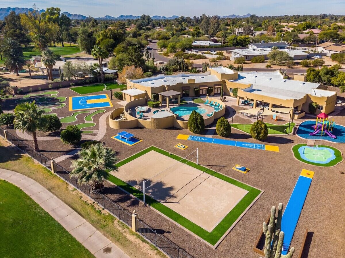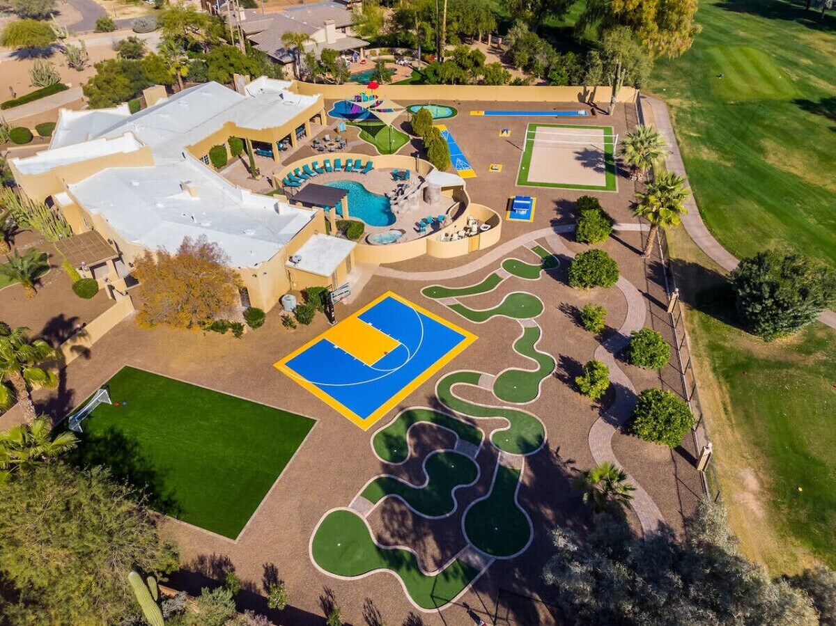 We are proud to present “The Sundown Estate”. This is the #1 resort vacation home in Scottsdale for entertaining and fun. If you’re vacationing with friends or family you`re guaranteed to have fun and make memories that will last a lifetime. PROPERTY HIGHLIGHTS: -This property is situated in one of the most prized areas of Scottsdale, it’s close to everywhere you want to go. -Everything is brand new inside and out. Over $1 million was recently invested into renovating this property to create a one of a kind showpiece. This is our crown jewel, you won’t find a property like this anywhere else. -The home is lavishly furnished yet comfortable with all new high-end furnishings from Restoration Hardware, Pottery Barn, and Crate & Barrel -Resort backyard is packed full of fun for adults and kids of all ages -This one and a half acres estate is gated and walled in for privacy -Two Master Bedrooms (one is a full apartment w/kitchen) -Three Kitchens (main kitchen, butler`s/catering kitchen, apartment kitchen) -Guest apartment with living room, kitchen, and bath -Three-car garage -New smart TVs in all bedrooms and main areas, including outside -Wireless high-speed internet -Nest smart home thermostats -No stairs to climb, everything is on one level -Inside dining room table seats up to 20 people -Outside dining table seats up to 18 people -Top of the line luxury mattresses and premium luxury linens -Eat fresh fruit right off the tree or make a morning juice. The property has its own fruit orchard with orange trees, tangerine trees, lemon trees, and grapefruit trees. -Huge one-of-a-kind custom bar in the game room that was featured on the set of a Hollywood blockbuster film. -Amazing views overlooking the Starfire Golf Course. -The pool and spa will be heated for your stay. The pool will be heated between 82 and 85 degrees. The spa can be heated with the push of a button upon your arrival. FREE BABY PACKAGE INCLUDED WITH YOUR STAY: -Pack N Play (2) -Highchair (2) -Stroller -Booster Seat -Toys -Books -Plastic Utensils, Cups, Bowls, Plates OUTDOOR GAMES, ACTIVITIES, AND AMENITIES INCLUDE: -Bowling -Volleyball Court -Shuffleboard -Cornhole -Putting Green -Nine-Hole Mini-Golf Course -Golf Driving Range Cage -Basketball Court -Ping Pong -Soccer Field -Outdoor BBQ -Gas Fire Pit -Children’s Playground -Children`s Splash Pad -Fruit Orchard -Heated Saltwater Pool with Rock Waterfall and Slide -Eight-Person Saltwater Spa -Covered Outdoor Dining for 18 people -Outdoor TV -Private Sitting Area with Fountain INDOOR GAMES INCLUDE: -Air Hockey Table -Foosball Table -Poker Table -Variety of 17 Board Games and Card Games OPTIONAL SERVICES WE CAN PROVIDE OR OFFER ASSISTANCE: -Daily Housekeeping Service -Full Concierge Service -Transportation Coordination -Catering and In-Home Chefs -On-Demand Grocery Delivery -In-Home Massage -In-Home Yoga Classes -Babysitting -Additional Children/Baby Supplies This Property Is Close To Everything... You`re just a few minutes away from the best restaurants, grocery stores, shopping venues, golf, scenery, activities, events, casinos, hiking, biking, and nightlife. EVENTS: -Waste Management Phoenix Open 4 Miles/9 Minutes -Barrett-Jackson Collector Car Auction 5 Miles/12 Minutes -Scottsdale Arabian Horse Show 5 Miles/12 Minutes -Cactus Bowl/Cheez-It Bowl 16 Miles/20 Minutes -Fiesta Bowl 33 Miles/35 Minutes SHOPPING: -Kierland/Scottsdale Quarter 3 Miles/6 Minutes -Fashion Square 6 Miles/12 Minutes SPRING TRAINING: -Arizona Diamondbacks 4 Miles/12 Minutes -Chicago Cubs 14 Miles/14 Minutes -Chicago White Sox 33 Miles/35 Minutes -Cincinnati Reds 39 Miles/40 Minutes -Cleveland Indians 39 Miles/40 Minutes -Colorado Rockies 4 Miles/12 Minutes -Kansas City Royals 35 Miles/40 Minutes -Los Angeles Angels 21 Miles/24 Minutes -Los Angeles Dodgers 33 Miles/35 Minutes -Milwaukee Brewers 26 Miles/30 Minutes -Oakland Athletics 16 Miles/20 Minutes -San Diego Padres 27 Miles/30 Minutes -San Francisco Giants 8 Miles/16 Minutes -Seattle Mariners 27 Miles/30 Minutes -Texas Rangers 35 Miles/40 Minutes CASINOS: -Talking Stick Resort 5 Miles/12 Minutes -Casino Arizona 12 Miles/14 Minutes GYMS: -LA Fitness 1 Mile/4 Minutes -Pure Barre 2 Miles/5 Minutes -Curves 2 Miles/5 Minutes -CrossFit 2 Miles/6 Minutes -Anytime Fitness 3 Miles/6 Minutes TENNIS COURTS: -Northsight Park 2 Miles/5 Minutes -Mountain View Park 2 Miles/6 Minutes -La Camarilla Racquet Fitness 3 Miles/7 Minutes -Racquet Club at Scottsdale Ranch 4 Miles/10 Minutes -Scottsdale Ranch Park and Tennis Center 4 Miles/12 Minutes HIKING AND BIKING: -Scottsdale Bike Path 4 Miles/9 Minutes -104th/Bell Rd Trailhead 6 Miles/12 Minutes -Phoenix Mountain Preserve 6 Miles/12 Minutes -Thompson Peak Park 7 Miles/12 Minutes -Cholla Trailhead Camelback Mountain 7 Miles/14 Minutes GOLF COURSES: -Starfire Golf Club 1 mile/1 Minute -Orange Tree Golf Club and Resort 3 Miles/7 Minutes -Gainey Ranch Golf Club 3 Miles/7 Minutes -The Westin Kierland Golf Club 4 Miles/8 Minutes -McCormick Ranch Golf Club 4 Miles/8 Minutes -TPC Scottsdale 4 Miles/9 Minutes -Camelback Golf Club 5 Miles/10 Minutes -Stonecreek Golf Club 5 Miles/10 Minutes -Talking Stick Golf Club 7 Miles/12 Minutes -Scottsdale Silverado Golf Club 5 Miles/12 Minutes -Grayhawk Golf Club 7 Miles/12 Minutes -Within 60 Miles There Are Nearly 200 Golf Courses ENTERTAINMENT AND THINGS TO DO: -Top Golf 6 Miles/9 Minutes -iPic Movie Theater 3 Miles/7 Minutes -OdySea Aquarium and Butterfly Wonderland 4 Miles/7 Minutes -Penske Racing Museum 5 Miles/9 Minutes -Octane Raceway Go-Karts 5 Miles/12 Minutes -Old Town Scottsdale 8 Miles/14 Minutes -Musical Instrument Museum 9 Miles/14 Minutes -Big Surf Waterpark 11 Miles/16 Minutes -Cracker Jax Amusement Park 3 Miles/8 Minutes -Frank Lloyd Wright Taliesin West 5 Miles/12 Minutes -LEGOLAND Discovery Center 21 Miles/22 Minutes -Phoenix Zoo 15 Miles/22 Minutes -Children’s Museum of Phoenix 18 Miles/22 Minutes -Saguaro Lake Boat Rentals 28 Miles/40 Minutes -Goldfield Gho