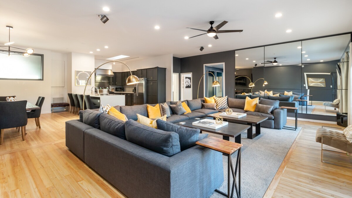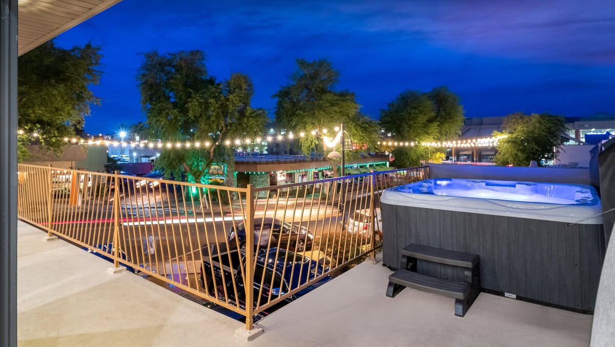 Scottsdale's Ultimate Golf Getaway & Bachelor/Bachelorette Experience Luxury 6BR Penthouse in Old Town – Sleeps 16+ | Hot Tub | Walk to Bars & Golf 🏙️ Location, Location, Location Stay in the heart of Old Town Scottsdale — just steps from the area's most popular bars, nightclubs, restaurants, and boutique shops. Whether you're planning a bachelor party, bachelorette weekend, or golf trip with friends, this is the spot. Walk to Scottsdale's best nightlife, brunch spots, and shops Minutes from top golf courses: TPC Scottsdale, Talking Stick, Papago No need for rideshares – you're already in the action 🛏️ Property Highlights 6 Bedrooms | 2 Bathrooms | Sleeps 16+ Private wrap-around balcony with hot tub Stylish, open-concept layout — ideal for group gatherings Pool table, game area, and flat-screen TVs Fully stocked modern kitchen with blue/gold designer finishes Prime location for bachelor/bachelorette parties, golf groups, and celebration weekends 🛋️ Spacious Living & Entertainment Area Oversized U-shaped sectional + large flat-screen TV Pool table for friendly group competition Two sets of French doors open to the wrap-around balcony Natural light and views of lively Old Town streets 🌇 Private Outdoor Balcony & Spa Balcony overlooks nightlife and shopping district Hot tub + artificial turf lounge area Ample seating for pre-game hangouts or post-round relaxation Perfect for morning coffee, brunch, or cocktail hour 🍽️ Modern Kitchen Designed for Hosting Blue cabinets, gold hardware, and sleek counters Full-size appliances, stocked cookware, and coffee maker Seamless connection to dining and living areas Great for cooking, mixing drinks, or ordering in 🛏️ Comfortable Bedrooms for Group Stays Master Bedroom (BR 1): King bed, flat-screen TV Shares full bath with Bedrooms 2 & 3 Bedrooms 2, 4, & 6: King beds with high-end linens Bedrooms 4 & 6 share bathroom with Bedroom 5 (tiled shower, separate toilet room) Bedroom 3: Six single beds + oversized sofa and ottoman French doors to balcony, perfect for early risers Bedroom 5 (Bunk Room): Two twin-over-full bunk beds (sleeps 6 total) Flat-screen TV, French doors to balcony 🎯 Perfect For: Bachelor & Bachelorette Parties Guys' or Girls' Trips Golf Getaways Group Celebrations Wedding Parties & Reunion Weekends 📅 Booking Details Minimum Stay Requirements: 2 nights (Mon–Wed) 3 nights (Thurs–Sun) Subject to change during holidays/seasons Discounts available for 30+ night stays – contact us for special rates 📌 Things to Know Max occupancy: 6 unrelated adults (per City of Scottsdale regulations) + dependent children AZ TPT License: #21595474 Scottsdale License: #2024270 ✅ Book with Confidence Whether you're planning a wild weekend, a relaxed golf retreat, or a luxury girls' getaway, this group-friendly Scottsdale penthouse delivers location, comfort, and unforgettable memories — all in one unbeatable space. Our prices include all fees. No hidden fees.