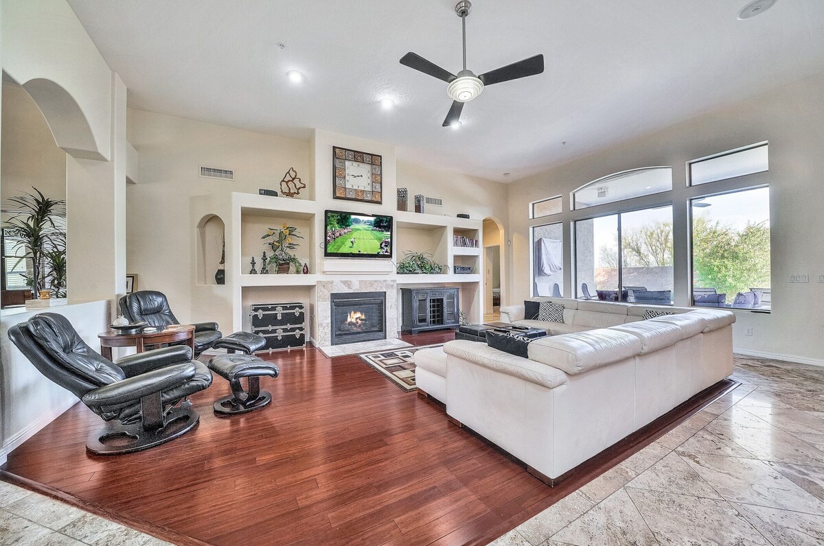 This gorgeous North Scottsdale home extends on 3000 square feet and features five bedrooms and three bathrooms. Known as much for its sophisticated urban flair as its magnificent Sonoran Desert setting, Scottsdale is a city that’s sure to fill you with pure vacation inspiration. Pinnacle Monte Estate is located on a Cul-De-Sac lot and has a privacy wall that runs along the south and west section of the backyard along with a view fence running along the east side of the yard - with great views of the desert. The southern exposure of the backyard allows you to receive sunshine all day long! The inside of the home features elegant upgrades like gorgeous stone tile and hardwood floors, wooden plantation shutters on the majority of the windows, solid granite counters in the kitchen and soaring ceilings. Starting from the entrance of the home, immediately on your left is the billiard room with four retro post-modern bar stools and a ledge for drinks. On your right, you have a formal living room with a sofa, two armchairs and a flat-screen TV. In the main living area, there is a great room which is one large room with no dividing walls where you'll find a large kitchen with dining table. The kitchen features solid granite counters, stainless steel appliances, and a gas cooktop. The formal dining table has seating for eight. This room is light and bright with high ceilings and a lot of windows facing the patio and pool. The living room has polished wood floors and is bordered by the stone tile. There is a white leather sectional sofa and two Copenhagen Stressless chair, which are ideal to rest and get cozy after a long day of hiking. Put your feet up in front of the gas fireplace and catch up on your favorite show on the flat-screen TV. In the master suite, there is a comfortable king bed, a flat-screen TV, ceiling fan and plantation shutters. The master bath has two sinks, a separate tub and shower and a small closet for master bedroom use. The master bedroom is private and split from the rest of the bedrooms. Two of the guest bedrooms have queen beds and the fifth bedroom has two twin beds. Newly redesigned, the yard features travertine paving stones and lemon and lime trees: garnish your favorite beverage or flavor your favorite dish with citrus right off the tree! The resort style backyard has it all: the covered patio features a comfortable sofa and two slipper chairs, a table, flat-screen TV, and a ceiling fan. On the raised deck, we have an umbrella, table, and chairs. Alfresco dining, anyone? Over on the spa side of the pool, there are a gas fire pit, four chairs, two cocktail tables, and a gourmet stainless steel gas grill. The pool area has chaise-lounges. With its acclaimed resorts, dining, shopping, and nightlife, Scottsdale offers everything you'd expect from a premier vacation destination, plus something delightfully unexpected – the stirring beauty of the Sonoran Desert. *Pool and spa heat is optional at an additional $75.00 per day charge. Please make arrangements and payment prior to your stay if you would like pool heat during your stay. There is a two day minimum for pool heat charges. Pool and spa are operated by an Iaqualink remote. A utility deposit of $500 or more will be collected for summer stays with a length of 21 days or more during the months of June - September. Please request further details if you are interested in booking for more than 21 days. Cancellation Policy Please verify as the cancellation policy changes with the seasons. Our prices include all fees. No hidden fees.