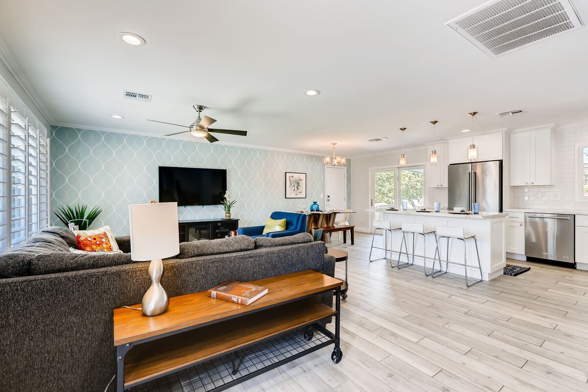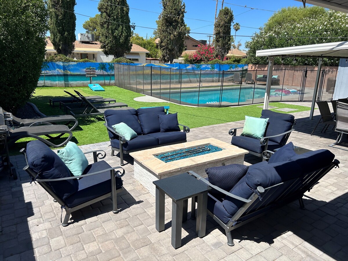 The backyard is perfect for your Scottsdale adventure featuring a fire pit, putt putt golf, bocce ball, outdoor table that seats 12. This home has two master suites with king sized beds and ensuite full bathrooms. One master is on its own private floor and the other is in the casita overlooking the pool and backyard! Our home offers 1900+ sq ft of renovated living space! The open concept kitchen, dining and living spaces allows for the family to converse while hanging out throughout the home. The casita offers a separate master suite and is attached just to the back of the house connecting to the patio area. Must be 25 years or older to rent. Renting person MUST be staying in the home. Bedroom Layout: Master in House: King with En Suite Master in Casita: King with En Suite Bedroom 3: Two Queens and One Bunk Bed Set Bedroom 4: Two Queens Pack'n'play available, bring your own sheet Guest Access: Our guests have full access to this home during their stay. We only ask that you refrain from removing or tampering with pool equipment to ensure no damage and the pool will remain clean during your stay. The home is keyless entry for a smooth check in both afternoon and night! Interaction with Guests: We are here for you, as our guest, as much or as little as you need us! We cannot fix issues without knowing about them during your stay. Please report via your appropriate channel messenger first, during business hours of 7am-7pm, if it is not an utter emergency, and we do our best to respond within an hour. If there is an emergency that needs our attention right away please contact us! Otherwise, we like to respect our guest's privacy and will leave you to enjoy your time in our home! The Neighborhood: Our neighbors are our friends! We love that we can share our home with our guests and ask that everyone abide by the quiet hours from 10pm-7am so that we can continue to serve our guests without disrupting our great neighborhood. Getting Around: We enjoy that our home is easily accessible with Ubers or Lyfts for those who do not rent a car or drive in for their family vacation! We are here to assist our guests with enjoying the city of Scottsdale, but if you're looking for a quiet time and prefer to find those items on your own we provide great info in our welcome binders! This property offers a variety of amenities to complete your stay: o Multiple USB ports in every room o Toaster, Dishwasher, Dishwasher detergent, Drip Coffee Maker, Microwave, Blender, Cooking essentials, Silverware, Plates, Bowls, Glassware o Washer, Dryer, Clothing Detergent, Iron, Ironing Board o Shampoo, Conditioner, Body Wash, Hair Dryer in each Bathroom o Bed Linens, Pillows, Blankets, Bath & Pool Towels o Outside Gas Grill o Private Pool & 8 person hot tub o Pack N Play, High Chair The following items we do NOT provide: o Condiments, Pressure cookers, Crockpots, Bottled or Filtered Water Ask your concierge about the following items and services: o Grocery Services o In-Home Experiences Other things to note: This home is fully furnished and stocked with essentials to get you started on your trip! Please plan accordingly to purchase enough paper products to last for the duration of your stay. Pets Allowed with exceptions: *$99 non-refundable fee per dog (this does not cover extra cleaning, inside or out, after your pet) House Rules: • No Cats, No parties • Check-in is anytime after 4PM This is a non smoking home. This includes Vape. Smoking is permitted outside the home. We provide you with an ash tray and expect you to pick up any butts that may find their way to the ground. Pool Heating Fee: The pool can be heated for an additional $80 per night. Please note that heating must be requested at least 4 days before your arrival to ensure the water reaches the desired temperature. CITY OF SCOTTSDALE SHORT-TERM RENTAL/VACATION RENTAL LICENSE: 2022690 Our prices include all fees. No hidden fees.