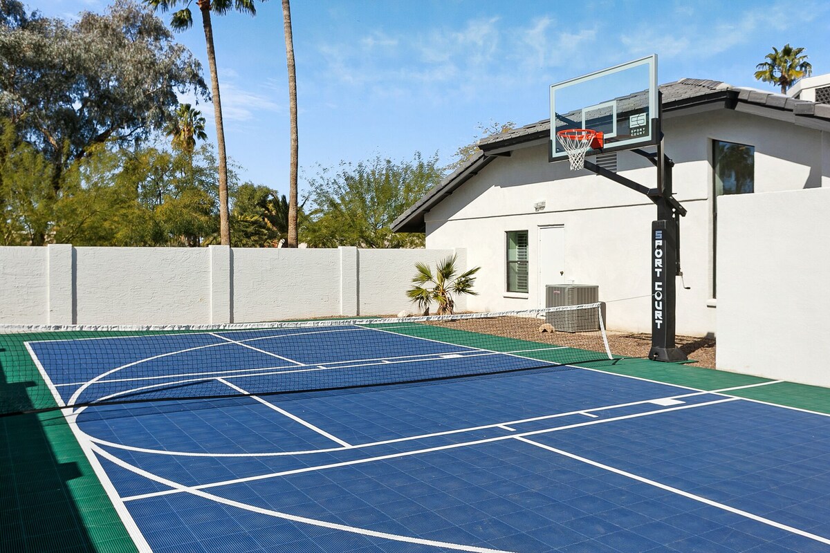 ★ SWSS LANTERN RETREAT ★ ★ Resort-Style Backyard ★ Hot Tub ★ Pickleball & Bocce ★ Game Room ★ Atrium Fire Pit ★ Chef’s Kitchen ★ Sleeps 16 ★ Book with StayWithStyleScottsdale Lantern Retreat — Nestled between Old Town Scottsdale and Kierland Commons/Scottsdale Quarter, this beautifully designed 4,400 sq ft home offers 6 bedrooms, 14 beds, and 4.5 baths on a lush private lot. Enjoy a resort-style backyard with a heated pool, hot tub, outdoor kitchen, sport courts, and fire pit. Inside, you’ll find designer interiors, a chef’s kitchen, game room, and a stunning open-air interior atrium. The Space THIS HOME IS PERFECT FOR . . . ✓ Family Getaways – Spacious, kid-friendly layout with tons of beds. ✓ Golf Trips – Centrally located near Scottsdale’s top golf courses. ✓ Group Retreats – Ideal for gatherings with up to 16 guests. ✓ Wellness Stays – Zen garden, outdoor shower, and yoga-friendly spaces. ✓ Corporate or Team Stays – High-speed Wi-Fi and a 15-seat van rental. ✓ Holiday & Celebration Escapes – A space designed for connection and comfort. ▌OUTDOOR & AMENITIES ⊙ Resort-style heated pool and hot tub ⊙ Pickleball, volleyball, basketball (equipment included) ⊙ Covered patio with outdoor dining for 14, lounge seating & outdoor TV ⊙ Pergola daybed with elevated platform and lights ⊙ Bocce ball court, putting green, and cornhole ⊙ Outdoor shower off the primary suite ⊙ Built-in BBQ with propane, outdoor kitchen setup ▌BEDROOMS - 6 Bedrooms / 14 Beds / Sleeps 16 ⊙ Primary Suite (Bedroom 1): King + 2 Twin trundles, seating area, TV, fireplace, luxury en suite with tub, shower, backyard access + outdoor shower ⊙ Bedroom 2: King bed, smart TV, shares hallway bath ⊙ Bedroom 3: 2 twin bunk sets + daybed with trundle (sleeps 6), shares hallway bath ⊙ Bedroom 4 (Office/Bedroom): Triple stacked twin bunks (3 beds, kids only), shares hallway bath ⊙ Bedroom 5: King bed, ensuite bath with shower/tub combo, smart TV ⊙ Bedroom 6: Queen bed, en suite bath with walk-in shower ▌BATHROOMS - 4.5 ⊙ Bathroom 1: Luxurious spa-style primary ensuite with freestanding tub + dual vanities ⊙ Bathroom 2: Shared hallway bath for bedrooms 2, 3 and 6, with double sinks and tub/shower combo ⊙ Bathroom 3: Ensuite with shower/tub combo for bedroom 4 ⊙ Bathroom 4: Ensuite with walk-in shower for bedroom 5 ⊙ Bathroom 5: Pool/hallway bath ⊙ Outdoor shower for pre/post-swim rinse or spa vibes ▌LIVING & DINING ⊙ LIVING: Open-concept great room with sectional seating, TV, and fireplace ⊙ KITCHEN: Chef’s kitchen with marble island (seats 4), double ovens, glass cooktop, fully stocked with essentials ⊙ DINING: Formal dining for 8 + kitchen breakfast table for 6 ⊙ ATRIUM: Accordian doors that open to the atrium with fire pit and lounge seating ⊙ GAME ROOM: Poker table, shuffleboard, smart TV, dry bar, wine & beverage fridge ▌TOP FOOD & FUN NEARBY ★ Old Town Scottsdale – 10 min | Nightlife, art galleries, dining ★ Kierland Commons/Scottsdale Quarter – 10 min | Upscale shopping and dining ★ TPC Scottsdale – 12 min | Golf lovers' dream ★ Scottsdale Airport – 10 min | Private/regional flight convenience ★ Talking Stick Resort & Casino – 15 min | Games, spa, shows ★ Desert Botanical Garden – 15 min | Nature and scenic walks ★ PHX Sky Harbor Airport – 20 min | Direct airport access ▌REAL GUEST EXPERIENCES ❝ We had the best family reunion here! The kids loved the bunk room and sport court, while the adults relaxed in the pool and hot tub. Highly recommend! ❞ — Jennifer, August 2025 ❝ Beautiful house, perfect layout for large groups. The chef’s kitchen and game room made our stay next level. We’ll be back! ❞ — Kevin, July 2025 ❝ This was our third time booking with SWSS and The Lantern Retreat was flawless — clean, well-appointed, and so peaceful. ❞ — Olivia, June 2025 ❝ Loved the outdoor spaces for morning yoga and evening wine around the fire. Felt like a private resort! ❞ — Matt, May 2025 ▌THE STAYWITHSTYLESCOTTSDALE TEAM ● LUXURY MADE EASY 100% cotton linens, premium mattresses, and thoughtful extras in every room ● LOCALLY MANAGED Our family-owned team is just 5 minutes away for 24/7 assistance ● FULLY STOCKED From pool towels to kitchen staples and bath amenities — we’ve got you covered ● ENHANCE YOUR STAY WITH PREMIUM SERVICES ✓ Private Chefs & Food Delivery ✓ Yoga Sessions & In-Home Massages ✓ 2020 15-Seat Van + other rental cars ✓ Baby/Toddler Equipment ✓ Event Planning & Custom Experiences Guest Access ⊙ Full access to home, backyard, and all amenities ⊙ Self check-in with smart lock + check-out instructions provided ⊙ Early check-in/late check-out may be available upon request with applicable fee Other Things to Note ⊙ Quiet hours enforced after 10 PM (Scottsdale city ordinance) ⊙ Optional propane pool heating available (inquire for pricing) ⊙ Pets considered — pet fee applies, inquire ⊙ Signed rental contract required for all bookings ⊙ No commercial use, events, or parties allowed per city regulations ⊙ Must be 28 years old to book ⊙ Scottsdale Short-Term Rental License: #2031566 | TPT: #21406598 Our prices include all fees. No hidden fees.
