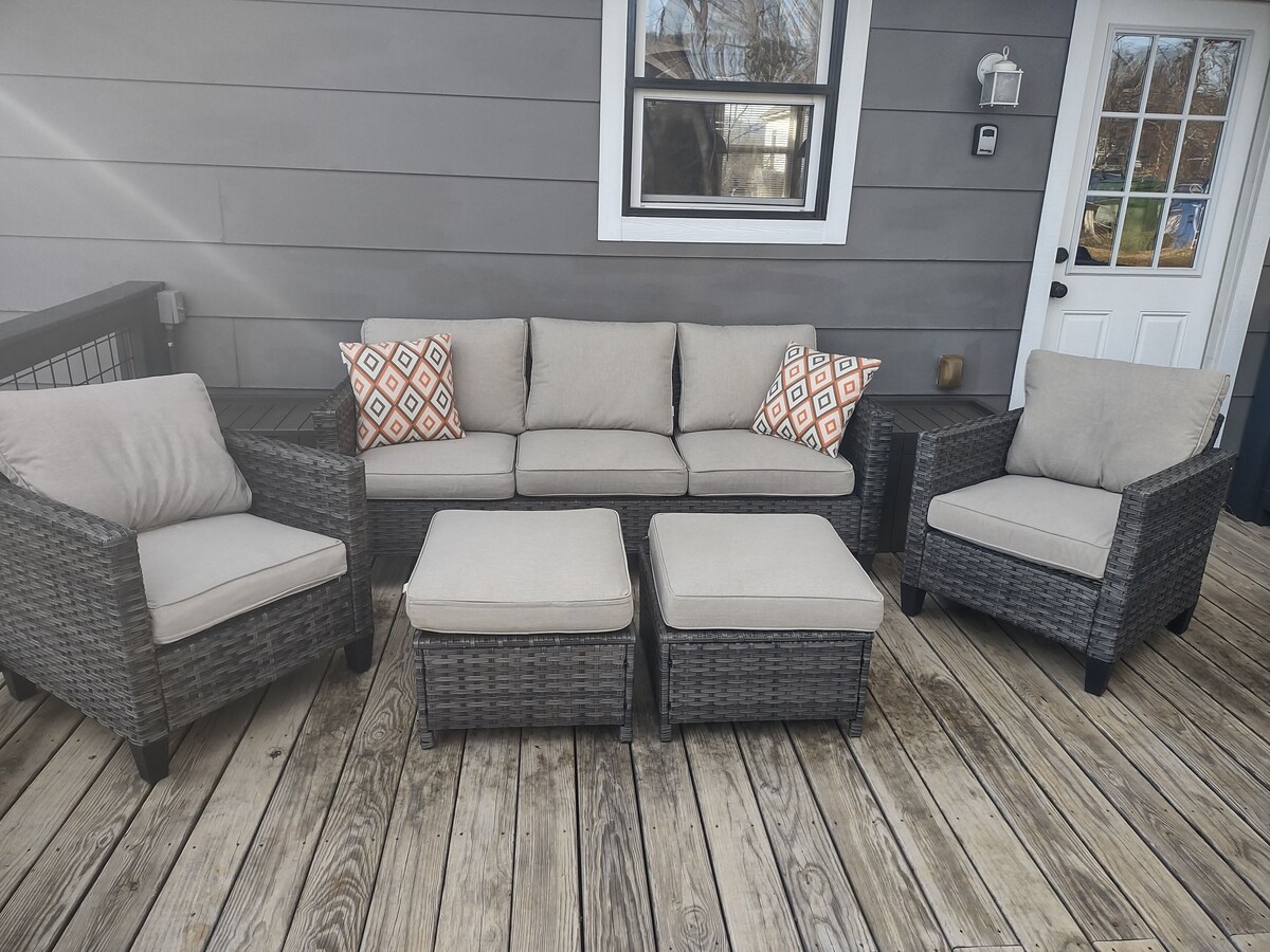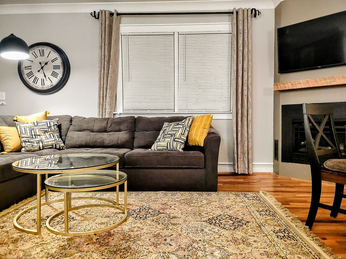 RIVER ARTS HOME - Cozy, comfortable, close to everything you’re coming to Asheville to see. This newly renovated home is close to everything! Walk to Downtown Asheville, the South Slope Brewery District and the Depot Street Arts District. The Biltmore Estate is only 2 miles away (5-minute drive.) The right half of the house is the peaceful bedroom wing. The left side has an open plan living/dining/kitchen with center island where friends and family can gather. Just outside the kitchen is a large deck (with gas grill) that overlooks the peaceful quarter-acre grassy back yard. Nighttime views of distant city lights wrap around all sides of the deck. A short walk brings you to Depot Street with all its art studios, shops, coffeehouses, breweries, restaurants, bars and music halls. Downtown and the South Slope (15-20 minute walk, or a short drive) are famous for restaurants and bars and breweries, shops and museums – and too many things to list here. When you reserve a stay at High Ridge Home, you’ll get an extensive list of all the things in and around Asheville that you will want to see and do, as well as a list of favorite restaurants. * * * * * * * * * * * * * * * * * * * * * * * * * * * * * * * * * * Enjoy the best of Asheville in this meticulously renovated home located in the heart of a lovely mountain city. The BILTMORE ESTATE is two miles away (a 5-minute drive to the 1 Lodge Street entrance) and Asheville’s restaurants, coffeehouses, museums, art galleries, and live entertainment are even closer. It’s a 20-minute walk or a 3-minute drive to DOWNTOWN. Depot Street is just a 5-minute walk. The house is CLOSE TO EVERYTHING, so you can take a break from sightseeing or shopping to relax at home. Chill out in the over-stuffed outdoor furniture on the deck that overlooks a large back yard or dine al fresco. This is the place to gather on balmy summer evenings to watch the moon rise and to soak up the relaxing atmosphere (the deck is illuminated by low-voltage lighting.) The living room has a large-screen smart TV over the fireplace. Stay in touch with high-speed WiFi. The kitchen has gorgeous granite countertops, all new appliances and a gas grill just outside – perfect for preparing gourmet meals. The kitchen is stocked with coffee and tea, condiments & spices. Enjoy breakfast at home in your jammies or walk/drive to a nearby art café for a full breakfast. Fido is welcome – there’s a large back yard. The home also has baby equipment available on request – pack n play crib, high chair, infant bath. Dozens of amazing antique stores (bargain prices!) are 5-10 minutes away. This central location in a vibrant city neighborhood is within easy reach of everything you want to see and do. Keep fit by walking to one of the best clay tennis courts in the US or at the YWCA (award-winning architectural design.) Golf courses are a short drive away. Shop daily at nearby farmers markets or at various organic grocery stores. The Owner is always available to answer any question you might have. Our prices include all fees. No hidden fees.