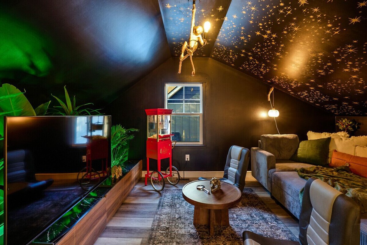 Welcome to The Heart of AVL, a one-of-a-kind retreat in Asheville’s trendiest neighborhood! This stylish home offers the ultimate mix of relaxation and entertainment, just minutes from downtown and within walking distance to West Asheville’s best restaurants, breweries, and music venues. Whether you’re here to unwind, explore, or work remotely, this stay has it all. 🔥 Why You’ll Love It: • 🛁 Private Hot Tub & Sauna – Detox, unwind, and recharge • 🎥 Jungle-Themed Cinema – Your private in-home movie experience • 💪 Workout Room – Stay on track with your fitness routine • 🔥 Outdoor Fire Pit & Lounge Area – Cozy up under the stars • 🌆 Prime Location – Walk to West Asheville, 5 min to Downtown AVL • 🏡 Modern & Cozy Interiors – Thoughtfully designed for comfort • 🍳 Fully Equipped Kitchen – Cook meals with ease • 🏞️ Near Blue Ridge Parkway & Hiking Trails – Adventure awaits! 🎟️ What’s Nearby? 🍻 Breweries & Dining – 5 min 🚶 | Funky bars & local eats 🌿 Downtown Asheville – 5 min 🚗 | Art scene, live music & nightlife 🏞️ Hiking & Waterfalls – 15-20 min 🚗 | Blue Ridge Parkway & Pisgah Forest ✨ Whether you’re here for a romantic getaway, a foodie adventure, or a weekend exploring the mountains, The Heart of AVL is your perfect home base. Book now and experience all that Asheville has to offer!✨ In Asheville, short-term rentals are only allowed if they operate as a licensed homestay. This means that a host must reside on-site in an adjacent unit, ensuring compliance with city regulations while allowing guests to stay in some of the best locations in town! As your host, I live in a completely separate studio apartment on the property, giving you and your group full privacy while still being available if you need anything. Because this home is a licensed homestay, you get to experience a prime Asheville location that wouldn’t otherwise be available for short-term rental! Our prices include all fees. No hidden fees.