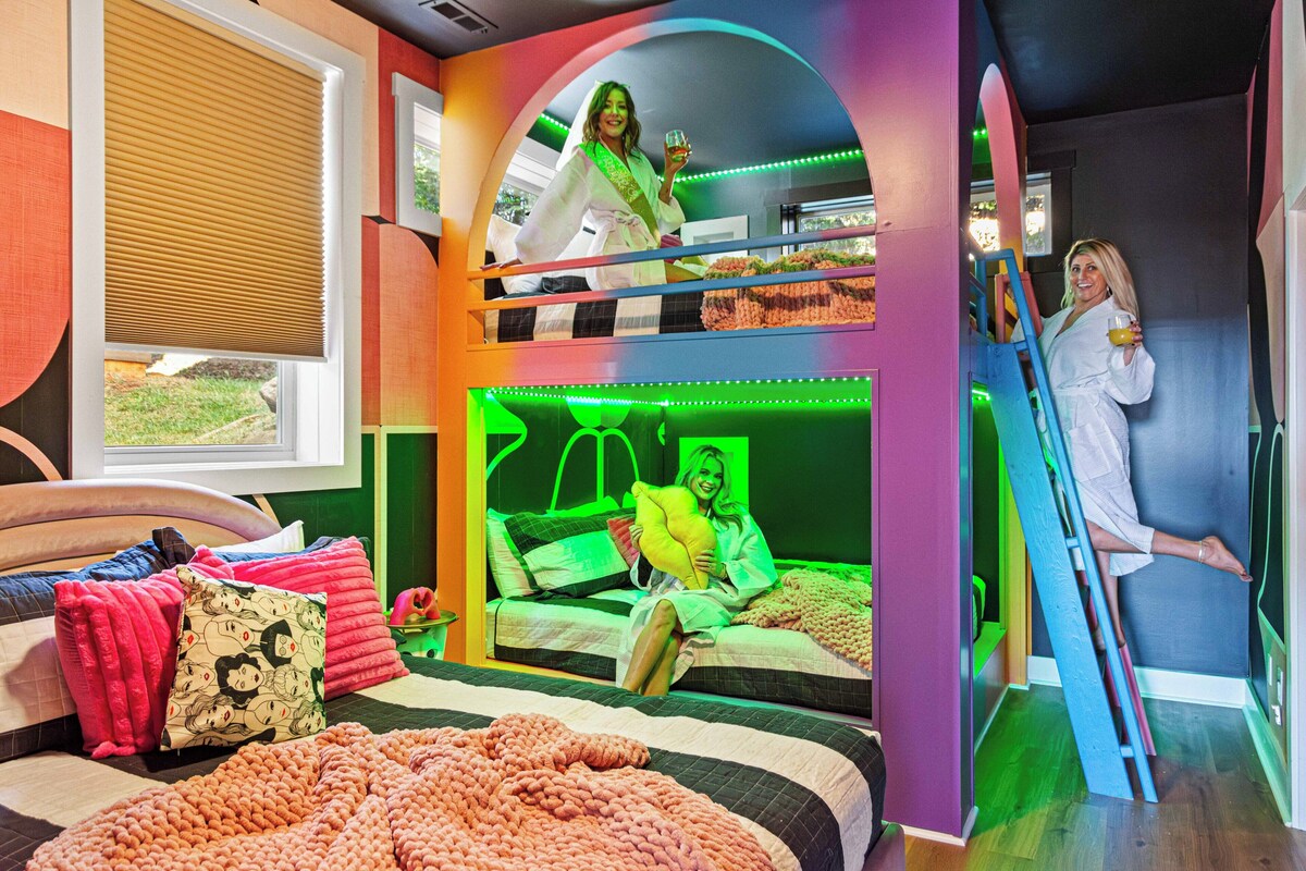 Welcome to The Luxury Asheville Affair, the ultimate escape for unforgettable bachelorette and bachelor parties, friend gatherings, and celebrations! This spacious retreat comfortably accommodates up to 19 guests and is designed for fun, luxury, and relaxation. Located minutes from Downtown Asheville, the Biltmore House, and West Asheville, this home offers breathtaking French Broad River views, a rooftop hot tub, a private DJ booth, and a fully stocked entertainment room. THE ULTIMATE PARTY & ENTERTAINMENT HOME This home was designed for bachelorette and bachelor parties, groups of friends, and families with mature teens or college-age kids. The modern, open-concept design provides multiple indoor and outdoor spaces to celebrate, relax, and create lifelong memories. WOW-WORTHY FEATURES: *DISCO LOUNGE – Neon lights, mirror balls, and Netflix-ready party vibes *CASINO VIBES GAME ROOM – Poker table, plush seating, and vintage Vegas energy *ROOFTOP HOT TUB – Soak under the stars with breathtaking mountain & river views *DJ STATION – Pump up the music & set the ultimate party mood *ECLECTIC MURALS & BOLD DECOR – Every space is Insta-worthy & uniquely designed *OUTDOOR ENTERTAINMENT SPACES – Balcony, deck, BBQ grill, & sunset seating SPACIOUS LIVING | DESIGNED FOR GROUPS With a layout crafted for socializing and comfort, this home offers plenty of room for everyone to spread out or come together. *EXPANSIVE LIVING ROOM w/ cozy seating, vibrant décor & smart TV *MULTIPLE GATHERING AREAS to mix & mingle, from lounges to the outdoor patio *LARGE DINING TABLE & BREAKFAST BAR – enough seating for the whole crew. PRIME LOCATION | CLOSE TO ASHEVILLE’S BEST Stay in the heart of Asheville with easy access to breweries, nightlife, hiking trails, and historic landmarks. Whether you want to explore downtown or retreat into nature, you’re just minutes away from it all! ✔ 10 min → Downtown Asheville – Arts, music, nightlife & top restaurants ✔ 15 min → Biltmore Estate & Winery – A must-visit for wine lovers ✔ 20 min → Blue Ridge Parkway – Scenic drives & breathtaking hikes ✔ 5 min → Local Breweries & Food Hotspots in the epicenter of culture, West Asheville ✔ 2 min → Carrier Park with miles of biking and running greenways, boat ramp and a large dog park SLEEPING ARRANGEMENTS | VIBRANT & COZY BEDROOMS (sleeps 19) Every bedroom is uniquely themed, luxuriously furnished, and designed for a great night’s sleep. ‘Slay All Day’ – The Ultimate Bachelorette Suite (sleeps 4) *1 King and 1 Queen Beds | Vibrant pink décor, neon signage & plush bedding ‘Glitz, Glam & Casino Vibes’ – The Chic Game Room Retreat (sleeps 6) *1 Queen Bed, custom King over King bunk beds | Vegas-inspired style, poker table & luxurious touches ‘WOW-Worthy Vibes’ – The Neon Mural Room (sleeps 4) *2 King Beds | Striking artwork, cozy bedding & a bold aesthetic ‘Whimsical Treehouse Vibes’ – The Cozy Bunk Room (sleeps 3) *3 twin beds with playful ceiling art & enchanted décor and one pull-out couch ‘Music Lounge Hideaway’ – A Relaxing Sofa Retreat (sleeps 2) *1 Queen Sofa Bed | Cozy seating, hanging chair & outdoor views OUTDOOR ADVENTURES & RELAXATION Step outside and enjoy Asheville’s natural beauty with thoughtfully designed outdoor spaces. Whether you're sipping wine on the balcony oasis or grilling with a view, the options are endless. *ROOFTOP HOT TUB with stunning sunset & river views *SUNNY DECK with shaded and stylish seating *Alfresco dining with a CHAR-BROIL GRILL overlooking rolling hills *COZY HANGING CHAIR NOOK for peaceful mountain-view moments NEON-LIT DISCO LOUNGE & DJ BOOTH Turn up the music and dance the night away in your private nightclub! This space is decked out with vibrant neon lighting, a high-end sound system, a DJ booth, and a dance floor—perfect for unforgettable nights. *DJ BOOTH W/ MIXER & SOUND SYSTEM – Take over as DJ or let a pro spin *LED & NEON MOOD LIGHTING – Set the vibe with dynamic color effects *BLUETOOTH XL PARTY SPEAKERS – Blast your favorite dance anthems *SPACIOUS DANCE FLOOR – Room for all your best moves *BAR CART & LOUNGE SEATING – Mix drinks & take a breather KARAOKE CORNER Sing your heart out in this karaoke-ready space, complete with a high-quality mic, speakers, and a massive song selection. Whether you’re belting out 90s classics or today’s hits, this is your stage to shine! *WIRELESS MICROPHONE & HIGH-QUALITY SPEAKERS – Crystal-clear sound *TV DISPLAY FOR LYRICS – Never miss a word *DISCO BALL & STAGE LIGHTING – Feel like a true performer *COZY LOUNGE SEATING – Perfect for your audience or backup singers GAMING NOOK & POKER TABLE Step into the ultimate game room, where classic arcade nostalgia meets high-stakes poker nights. Whether you’re challenging friends to a poker showdown or diving into retro video games, this space has something for everyone. *RETRO ARCADE MACHINE – Play classic favorites like Pac-Man & Street Fighter *FULL-SIZE POKER TABLE – Host poker nights with friends, complete with cards & chips *COMFY GAMING CHAIRS – Relax and get in the zone *BOARD GAMES & CARD GAMES – Perfect for casual fun & friendly competition VIBRANT & ARTISTIC DÉCOR | PIC-WORTHY & BOLDLY DESIGNED This home is a work of art, with eye-catching murals, neon signs, and playful aesthetics. Every corner is designed to be photographed, shared, and remembered. *PICWORTHY NEON ART & MURALS – Perfect backdrops for group photos *VEGAS-INSPIRED GAME ROOM – A touch of luxury & high-stakes fun *ECLECTIC & LUXE TOUCHES – Stylish furniture, bold colors & mood lighting FULLY EQUIPPED KITCHEN & DINING SPACE Whether you're prepping a feast or making cocktails, the modern chef’s kitchen has everything you need to keep the party going. *HIGH-END APPLIANCES – Stove, oven, refrigerator, dishwasher & microwave *KEURIG & FRENCH PRESS – A coffee station for all caffeine lovers *COOKING ESSENTIALS – Spi