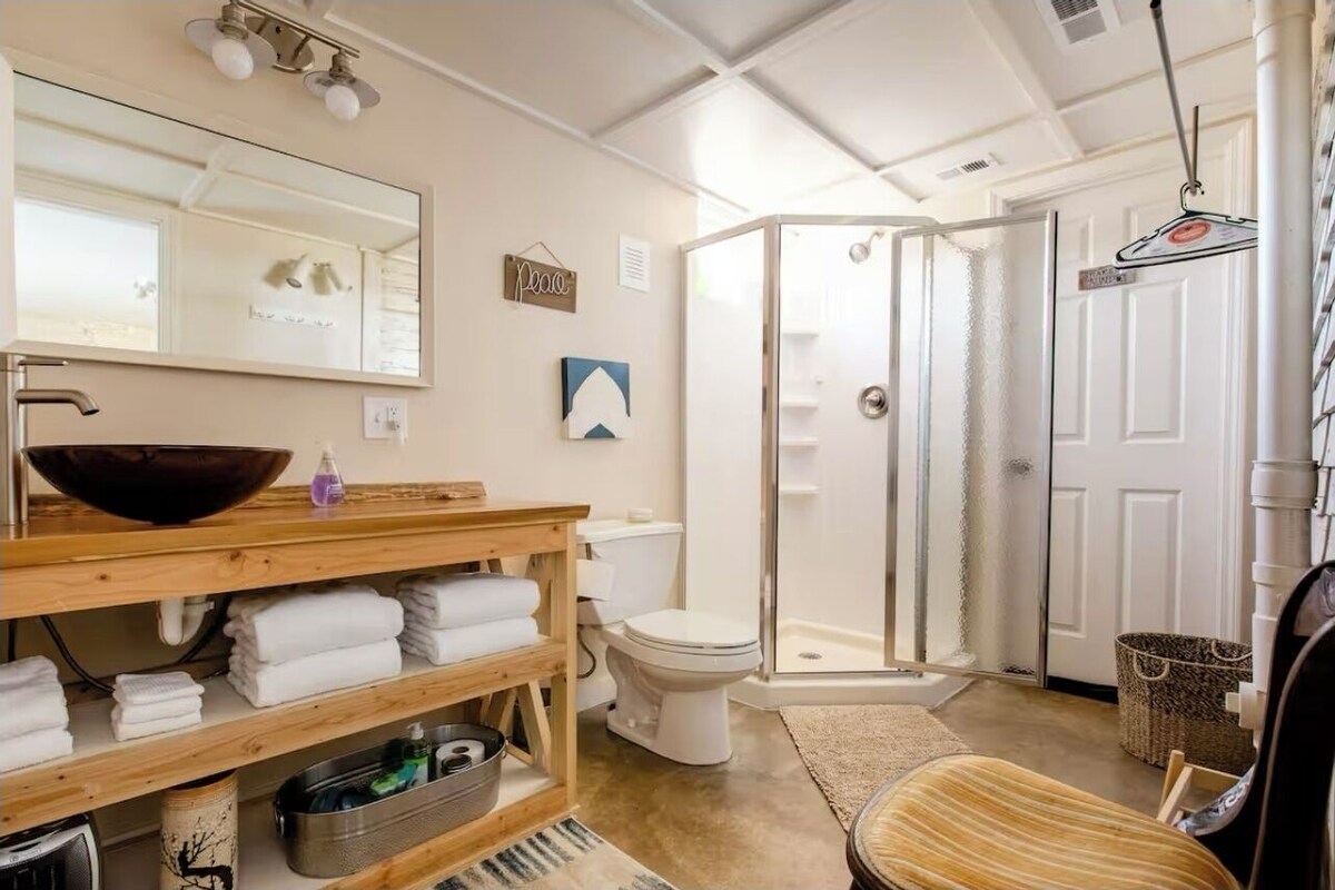 We have a GERM GUARDIAN air purifier helping to kill airborne viruses, bacteria and mold spores, amongst other things! I couldn’t be happier. We ventilate the space before, during, and after cleaning. We clean and disinfect all surfaces, paying special attention to frequently touched surfaces. We vacuum and mop the floors. Shower mats are washed between guests. We have always taken pride in the way that we clean and have further enhanced such cleaning because we want you to feel safe to relax and enjoy your stay with us! This beautiful customized studio is adorned with a wood slab bathroom vanity and office space, a unique rock wall and original outside wood wall. Creative touches throughout the space. Both charming and classy. Super clean and equipped with a shared laundry room and big bathroom. The kitchenette has everything you could need to feel at home when you're away from home, including a beautiful customized concrete countertop. It is equipped with a small refrigerator, hot plate, toaster oven, microwave and a coffee maker (coffee and creamer also provided). Hulu streaming is available and will be logged in via Roku and mounted flat screen TV. You are welcome to choose from a variety of other streaming channels to log in with your own personal account. Just don’t forget to log out! What else could you need?! :) Plenty of privacy with a separate entrance. Beautiful French doors let in lots of light and allow guests to enjoy the fresh air on nice days. Outside space with table and chairs for guests to relax the day away. Lots of space on this double lot on our small mountain leaves you feeling away from it all even though you're merely minutes from downtown. We are super convenient to grocery stores and tons of restaurants downtown. Porch swing and other outside seating. Beautiful fire pit area available for guest use. Suitable for two adults; children are welcome as well although the space is not child proof and I don't have separate sleeping arrangements. This space is one of two rentals on the lower level of my home. Each rental has a private entrance on either side of the house and my entrance is at the front of the house so privacy coming and going is not an issue. If this space does not fulfill your needs please check out my other listing. I will send instructions when it gets close to your reservation. Please read them carefully to be sure you choose the correct apartment upon arrival. Our prices include all fees. No hidden fees.