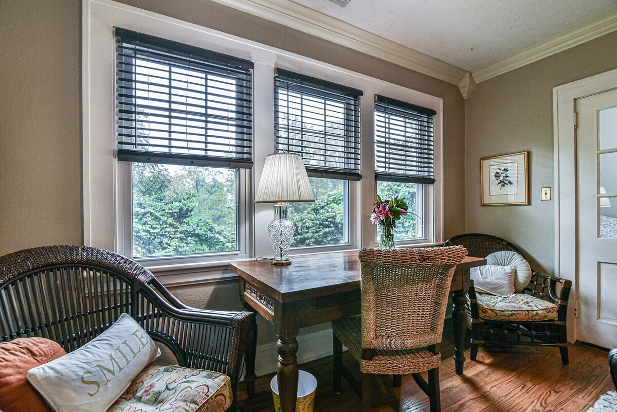 Escape to this wonderful apartment in picturesque Asheville. This cozy retreat features 1 bedroom with a comfortable king bed, a fully equipped office space with an additional twin bed, and essential amenities like a hair dryer and iron. Guests can relax in the nice living area or explore the vibrant city just steps away. Enjoy your time in Asheville at our lovely apartment. Historic apartment in the Grove Park area of Asheville. Convenient to downtown and Charlotte Street eateries. Classically decorated, this unit has a full kitchen, dining room, living room, sunroom, queen size bed and full bath. What this place offers Fully stocked kitchen Wifi Free parking on premises Pets allowed TV with standard cable Coin-op washer/dryer (shared) Air conditioning Patio Indoor fireplace Our prices include all fees. No hidden fees.