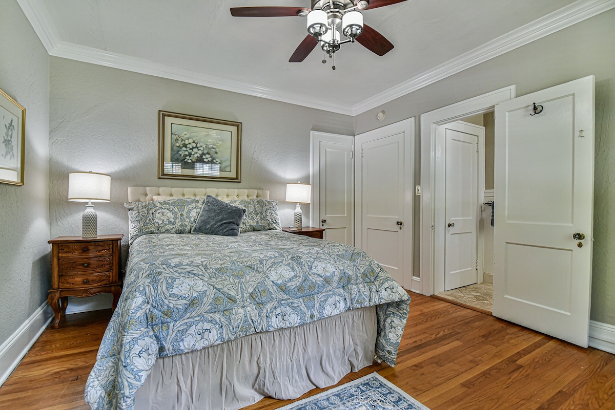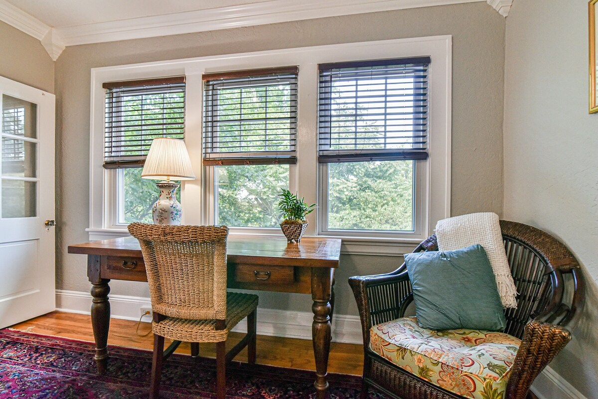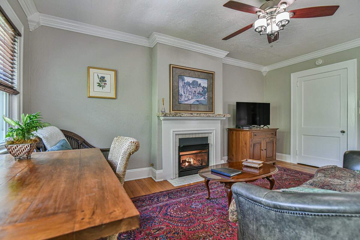 Escape to this wonderful apartment in picturesque Asheville. This cozy retreat features 1 bedroom with a comfortable queen bed, and an additional twin bed in a c comfy sunroom, and essential amenities like a hair dryer and iron. Guests can relax in the nice living area or explore the vibrant city just steps away. Enjoy your time in Asheville at our lovely apartment. Historic apartment in the Grove Park area of Asheville. Convenient to downtown and Charlotte Street eateries. Classically decorated, this unit has a full kitchen, dining room, living room, sunroom, queen size bed and full bath. What this place offers: Fully stocked kitchen Wifi Free parking on premises Pets allowed Smart TV Coin-op washer/dryer (shared) Air conditioning Patio Indoor fireplace Our prices include all fees. No hidden fees.