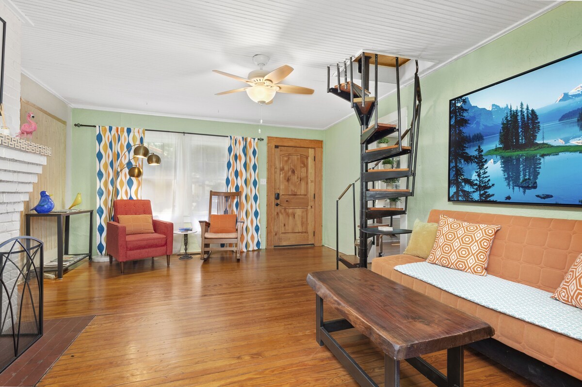 Beautiful spacious cottage attached to 100 year old historic Appalachian home, less than one mile from the heart of downtown Asheville. Large bedroom with New Cal King Tuft & Needle bed, living room with fireplace, clawfoot bath tub in bathroom. Dogs stay free! We follow all CDC cleaning protocols! Microwave, medium fridge, coffee maker and toaster provided. home, less than one mile from the heart of downtown. Large bedroom with New Cal King Tuft & Needle bed, living room, claw foot bath tub in bathroom- great neighborhood! Only a mile to the Grove Park Inn. Dog friendly! Free WIFI! Safe and quite neiborhood and great friendly hosts to assist you with your stay in our loving city of Asheville. Ask any questions you wish! Always dog friendly. (Dogs must be well behaved and not have aggression issues with humans or other dogs! ) The spiral staircase is for decoration only. Everything is on first floor so don’t worry about having to climb stairs! Fire pit in front yard for your use. Microwave, medium fridge, coffee maker and toaster provided. Outdoor fire pit! Duraflame logs available for purchase at $5.00 each We are licensed and inspected by the City of Asheville! Beware of listing that are not licensed! We follow all CDC recommended cleaning protocols! Carbon neutral: Your stay with us with be carbon neutral as we purchase carbon offsets for our energy needs! Our above & beyond promise... If you are past the refund period and need to cancel, we will allow you to rebook your trip for future dates with us for equal or lesser value of your reservation up to one year after the date of your original reservation as long as we can rebook your original dates. Our prices include all fees. No hidden fees.