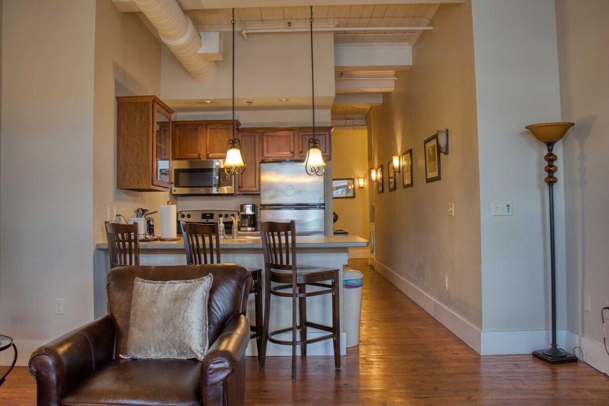 We are pet owners who love to travel with our dogs and are pleased we can provide this pet friendly condo. This second-floor condo has one bedroom with a queen bed. It features a full kitchen, a large den area, a large deck with unobstructed views of downtown Asheville and Beaucatcher Mountain. It also includes a washer and dryer. It is easy to walk your dog on this street. There are plenty of grassy areas, just be sure to bring a bag to clean up after your pet and there is a city provided trash container on the curb next door. There is a $25/night Pet Fee. Please let us know if you are bringing a pet when you book your stay. The Altamont Condos is located on historic Church Street in the heart of downtown. The street is tree lined and full of beautiful old buildings including three historic churches. The location is ideal, being close to everything downtown and the street is off the high traffic streets, so it is quieter than nearby Patton Avenue. This building was originally constructed in 1895 and renovated in 2010. The historic character of the building was preserved so it continues to fit in on Church Street while adding modern features to make the property environmentally friendly, convenient and extremely safe. There is high-capacity internet coming into the building and extensive Wi-Fi coverage so you can work remotely during an extended stay. For entertainment we provide a smart TV with Sling and local TV channels, and the Wi-Fi has enough capacity to stream on personal devices. The building features a large elevator that makes getting luggage in and out extremely easy. There are solar panels on the roof that are behind the original parapet that preheat the building's hot water and electric water heaters in each unit are only used for backup. Heating and cooling are provided by high efficiency heat pumps that automatically bring in fresh air from the outside so indoor air never seems stale. The building also meets the same safety standards as a hotel. There is a sprinkler system, emergency lighting and fire rated emergency exits. You can enjoy the charm of an old structure on a historic street and know that if there is an emergency in the middle of the night you can safely exit the building. Parking is available in the new Buncombe County public garage on Coxe Ave, it's behind the church across the street and a very short walk. There is another public garage under the A-Loft hotel on Biltmore Avenue. The NC Vacation Rental Act requires a written agreement between guests and hosts. It is meant to provide transparency and protection for you and the host. We are aware that not all hosts send agreements, but we do. If you have any questions please lookup the NC Vacation Rental Act. Our prices include all fees. No hidden fees.