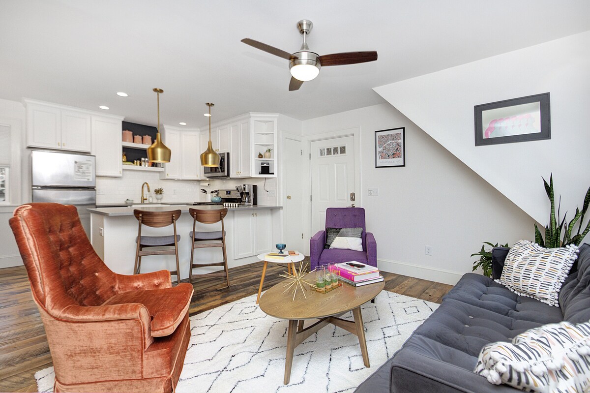 Welcome to our North Asheville FROG! The space is bright and airy, and you will want to extend your stay in our cozy neighborhood. Located just 1.6 miles north of downtown, you are a short drive/lyft/bike ride into town or West Asheville! Or if you want to stay north you are within walking distance to local eateries, one of Asheville's staple breweries, grocery stores, drug stores, parks, and the university! The FROG is perfect for a long weekend, or an extended stay of several months! The FROG is located on the second floor, with a private entrance, accessible through an outdoor stairway. You will have the entire guest suite to yourself with a keyless entry so you can come and go as you please. The space is bright and modern with some mid-century charm. You will be welcomed into the FROG with a bright, airy, open space that includes the living room, dining area and kitchen. The living room has a comfy couch that can be used for sleeping a third person and a large smart-TV (which includes Netflix). We provide a blue tooth soundbar speaker so you can play your tunes while getting ready for a big night out. The fully equipped kitchen has a refrigerator (with ice maker), dishwasher, microwave, farmhouse sink with garbage disposal, gas range, coffee maker and includes cookware and utensils if you want to prepare and enjoy a meal in. We’ve designed the kitchen with beautiful quartz countertops and a large peninsula that serves as a breakfast bar. We've installed beautiful hardwood floors throughout the apartment that are made from reclaimed barn wood. The bedroom has an amazingly comfortable queen size bed, a dresser and a large walk-in closet to store your clothes during your stay. We have equipped the FROG with it’s own tankless water heater so you can enjoy long, hot showers in your own full sized bathroom. While we do have private WiFi available to all guests, we do not have cable TV. You will also have access to a full size washer and dryer. The FROG is 100% solar powered! We also have an electric vehicle (EV) outlet for guests of the FROG. It is a NEMA 14-50 outlet that is a 50 Amp 240 Volt at the parking spot dedicated to the FROG - this allows your EV to be fully charged overnight during your stay - and it’s solar powered! Our prices include all fees. No hidden fees.