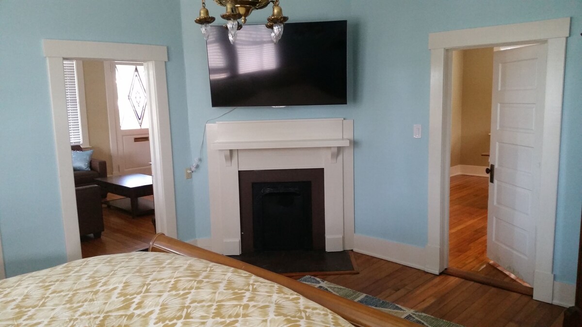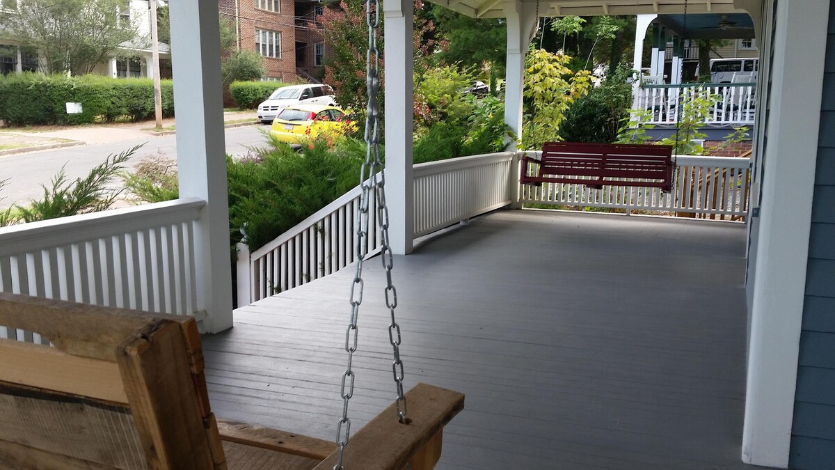 Centrally located in the heart of Asheville, this 3 bedroom, 2 bathroom house is a perfect choice for anyone looking to be walking distance to all the fun! With its refinished, all original floors, high ceilings, forced air gas, central air conditioning, gas barbecue, lots of parking, and wrap around porch, the house has a historical feel with modern comforts. The porch provides two hanging swings and a beautiful view of the sunset over the mountains, along with the feel of a gentle breeze on a hot summer day. This is a family neighborhood. Guests are required to be respectful of neighbors and keep noise at a reasonable level, especially in the evening. Will ONLY Consider dogs that do not shed (allergies). Do not request to book if your dog sheds. Main floor: Living room, dining room, open concept kitchen, full laundry. The kitchen has a gas stove, all new Kraft Made Cabinetry, Silestone countertops, and all new stainless steel appliances including dishwasher. Main floor bedroom 1: En-suite with king bed. Upstairs bedroom 2: Shared en-suite with king bed. Upstairs bedroom 3: New queen chaise daybed and new single pull-out love seat. With home entertainment and views of the mountains, this room is also used as a second living room. Upstairs office: Large desk and new queen pull-out couch. Both bathrooms have all new floors and fixtures, the bathroom on the main floor holds a 8'x3' shower with a glass door, and the upstairs bathroom contains refinished, antique claw-foot tub with shower. For home entertainment, the house contains two new 55'' widescreen TVs with Netflix and HDMI cable to plug your computer into the TV. Our prices include all fees. No hidden fees.