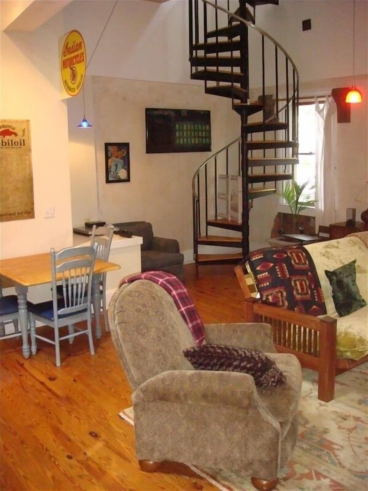 This amazing loft is located on Broadway Street, in the heart of downtown Asheville. You will literally be walking distance to all the best shopping, dining and entertainment Asheville has to offer. The Loft makes the ideal luxurious getaway for a romantic weekend or comfortable hangout for a family vacation. The loft is located in a renovated 2 story historic building, but retains original features, like hardwood floors, doors & trim work, and high ceilings. It has been tastefully decorated with original artwork from around the world. There is a total of ***1500 square feet*** living area, with a spacious common area for living room and kitchen. Access is from the street level stairwell to the main living floor. The stairwell entrance is protected with a security camera. The main living floor consists of the large open combination living area and kitchen, with 2 private bedrooms, each with a queen size bed and separate entrances to the bathroom, and a private sink in the master bedroom. Each bedroom has its own LCD TV with cable service. The kitchen is recently remodeled with beautiful maple cabinetry, gorgeous granite counters, high-end SS appliances, and comes fully stocked with enough cookware, dishes, and utensils to cook for a large family. There is a full bath, full size front loading washer and dryer, and plenty of storage and closet space in each bedroom. Large groups will appreciate the tank-less water heater, that will deliver continuous hot water on demand. Everyone will get a hot shower, even while running the dishwasher and a load of laundry. The large living room has plenty of comfortable seating, with a queen size futon and a queen size sleeper sofa, and several cushioned chairs. Do note that guests using the sleeping arrangements in the living area access the bathroom through one of the bedrooms. The home theatre system consists of a 42' LCD flat screen TV with cable service. This is viewable from anywhere in the living area. This system can also wirelessly connect via bluetooth to your tablet or smartphone for streaming your personal music collection. There is also a set of outdoor speakers on the rooftop deck. WiFi internet service is also included. Unique to this Loft is the HUGE PRIVATE rooftop deck. This is a true full size deck, not a balcony. Access by spiral staircase, with amazing views of downtown to enjoy, and plenty of people watching. There is patio furniture, a large 11 foot umbrella and an electric grill for pleasant summer night cookouts. Dedicated off-street parking for up to 2 cars is inclusive. The parking lot is located on the back of the building on Carolina Lane. Thanks for considering our loft for your vacation! FAQs: 1) What is the physical address? Answer: 53 1/2 Broadway Street, Asheville, NC 2) Is this located in downtown Asheville? Answer: YES! this a ground zero downtown Asheville. Any downtown hotspot is only a short walk away. 3) Are there any restrictions on start days of weekly rentals? No, your rental period can begin on any day of the week. 4) What are check-in and check-out times? Answer: Standard check in: 4pm, and standard check out: 11am. 5) Can we have an early check-in, or late check-out? Answer: absolutely, provided the cleaning service allows, and other guests are not arriving(departing) the day you are departing(arriving)... inquire for specific dates and we will confirm. 6) What is the parking situation? Answer: A dedicated parking stall is provided in the back, on Carolina Ln. The stall is 2 cars deep. If more than 2 vehicles, there a several parking decks nearby that have reasonable per diem. 7)are linens and towels provided? yes. There is also a starter supply of paper products: napkins, paper towels, bath tissue and tissue boxes. 8)cleaning supplies are provided, such as dishsoap, dishwashing liquid, laundry detergent, windex. Personal items (such as bath soap, shampoo, etc..) are not provided. __________________________________ Did I miss anything? just ask :) Keywords: Loft, downtown, condo, luxurious Our prices include all fees. No hidden fees.