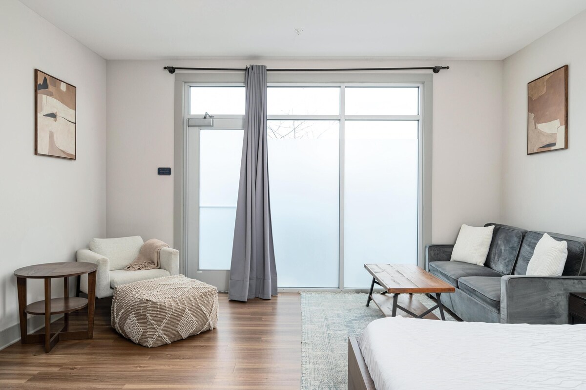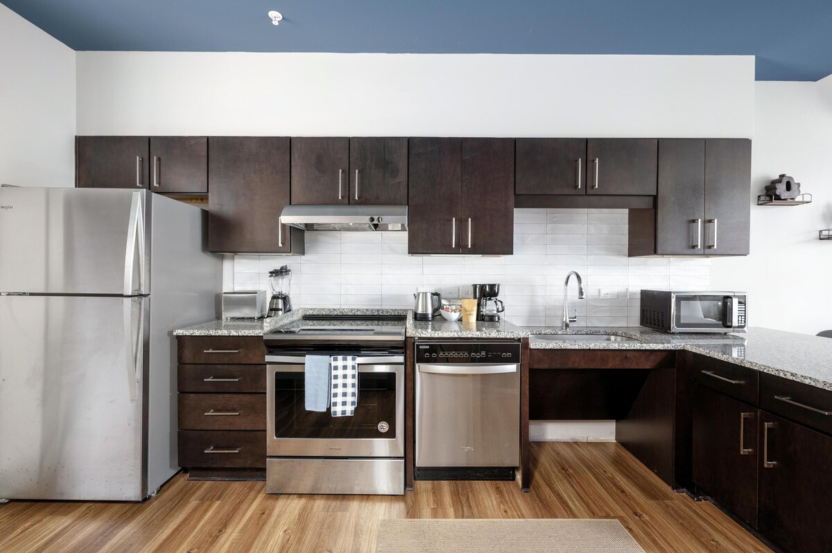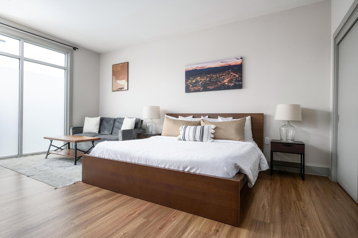 This room offers: One King bed One queen-size pull-out sofa A full kitchen with full-sized oven and range, refrigerator and dishwasher A complete set of cookware, dishes and utensils Dish soap and dishwasher detergent A toaster, coffee maker, iron, electric tea kettle, and microwave A full set of linens and towels A shower dispenser with Paya brand shampoo, conditioner and body soap An under-sink water filtration system A smart TV with Netflix and Hulu streaming capabilities. Just link to your account Cable television and high-speed WiFi A starter bag of local PennyCup coffee Personal door code Crib and high chair at no extra charge (contact property manager for availability) ADA wheelchair accessibility This unit is Pet Friendly with a $50.00 Pet Fee For your convenience, a coin-operated laundry room is located on-site. Our prices include all fees. No hidden fees.