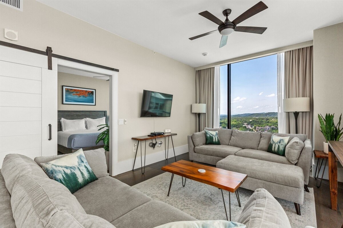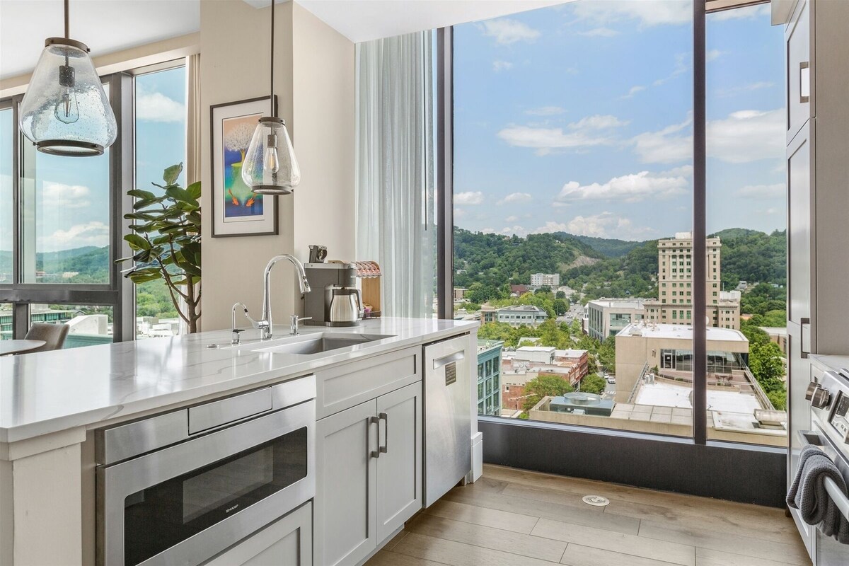 Enjoy 15% Off Your Stay! Save 15% on any stay booked from now until October 31, 2025, for stay dates through October 31, 2025. No promo codes, no extra steps—the discount is already built into the price you see. Just book and save! You’ve heard of ‘being on Cloud 9,’ so elevate your stay and enjoy a state of euphoric bliss on Cloud 10. Settle into this heavenly corner condo facing north and east with 120-degree skyline views of downtown Asheville and the awe-inspiring Blue Ridge Mountains beyond. This one-bedroom, one-bath condo comes fully equipped with all the comforts of home and will have you floating. As you walk through the front door, you will be greeted with an entrance hallway with access to the fully stocked bathroom to your left, which leads to the bedroom. On the right, nestled behind a door, is the stacked washer and dryer and an initial stock of free and clear laundry pods. Continuing down the hallway, you will find an open concept kitchen and breakfast bar overlooking the dining space and living room. This kitchen is fully stocked, perfect for entertaining with all the amenities you could ask for, including a refrigerator/freezer, five-burner gas range, microwave, dishwasher, Keurig K-Duo coffee maker, electric tea kettle, toaster, and blender. Below the sink you will find an initial stock of dish soap, dishwasher detergent, Finish dish rinse, along with trash bags, recycling bags and paper towels. To help give you a taste of Asheville, we’ve stocked your coffee station with a small supply of local coffee and tea from Dynamite Roasting Co and Asheville Tea Company. The dining table which seats four is adaptable so you can work from home by day and transition to an intimate home cooked dinner by night. Additionally, Cloud 10 also seats three at the breakfast bar. The living room features two sleeper sofas, which each sleep two, and a high-top table situated in front of the sliding glass window in the living room, creating a comfortable solace for watching the sunrise over downtown Asheville with your favorite morning beverage in hand. For entertainment, there is a 55” cable TV and 500+ Mbps high speed wi-fi so you can stream the latest binge worthy shows. Off the living room is a separate bedroom where you will find a comfortable King bed complete with linens, a chaise lounge and a 55” cable TV. Sit and relax with the sweeping views of north Asheville. An additional set of linens for the bed and the sleeper sofas are stored in the bedroom closet along with an extra blanket. Enjoy a restful night’s sleep courtesy of the white noise machine next to the bed with a range of relaxing sounds and noise volumes to choose from. The bathroom, which is located off the bedroom, is where you will find a variety of complimentary amenities including shampoo and conditioner, lotion, hand soap, cotton balls and swabs, hair dryer, towels, facial tissue, and toilet paper. The toilet room is closed off from the rest of the bathroom allowing for extra privacy. Cloud 10 is located on the 10th floor of the Arras Building, just an elevator ride away from an array of Asheville’s award-winning breweries and restaurants. Don’t forget to visit the many boutique shops and local artists that truly makes Asheville exceptional during your stay. Cloud 10 is pet-friendly with a weight limit of 20 pounds per dog, two dog maximum limit. There is a non-refundable $150 one-time pet fee. Additionally, long-term stays are welcome at Cloud 10. Access After you book your stay in Cloud 10, you will receive a confirmation email and a text message. Our lease agreement will be sent to you separately via Adobe Sign for easy completion. We require this to be signed and returned before we release the access code to the lockbox outside of the condo with the keys. The access code will be texted to you the evening prior to your arrival. These text messages will include a link to our digital guidebook of Asheville and a property guide for the condo. This guide was compiled by our team with information and recommendations from locals created to help you get the most out of your visit to Asheville, as well as housekeeping items like building information, how to access the valet deck, and arrival and departure instructions. We welcome you to save that phone number and use it to easily communicate with us surrounding any questions or comments regarding your stay. Parking When you book your stay at Cloud 10, one of the convenient amenities we offer is valet parking at just $32 a night. You will have full access to come and go as you please. You also have the option to self-park in the city. If you are ride sharing into town, please let us know after booking so we can remove the parking charge for you. Please note that self-parking in Asheville is always first-come, first-served and the closet parking garage is right across the street at 16 Broadway Avenue, attached to the AC hotel. Valet parking does have access to electric car charging stations; please inform the valet team upon arrival of the need to charge your vehicle. There is an additional cost to use the charging station which ranges from $10-$20. Building Amenities Included in your stay at Cloud 10 is access to the building’s gym, which is located on the 3rd floor of the building. The gym is fully outfitted with Peloton bikes, leading edge treadmills, rowing machines, rogue strength and conditioning equipment, and space for yoga and stretching. To reset your muscles or to relax on your vacation, schedule an appointment at our in-house massage room, Urban Exhale Massage, conveniently located next to the gym on the 3rd floor. Please note, massage services are not included in the cost of your booking. With amazing views, access to valet parking, our state-of-the-art gym and relaxing massage offerings, we’re here to ensure your time away from home is as relaxing and stress-free as possible. An additional amenity available to you when booking Cloud 10 ar