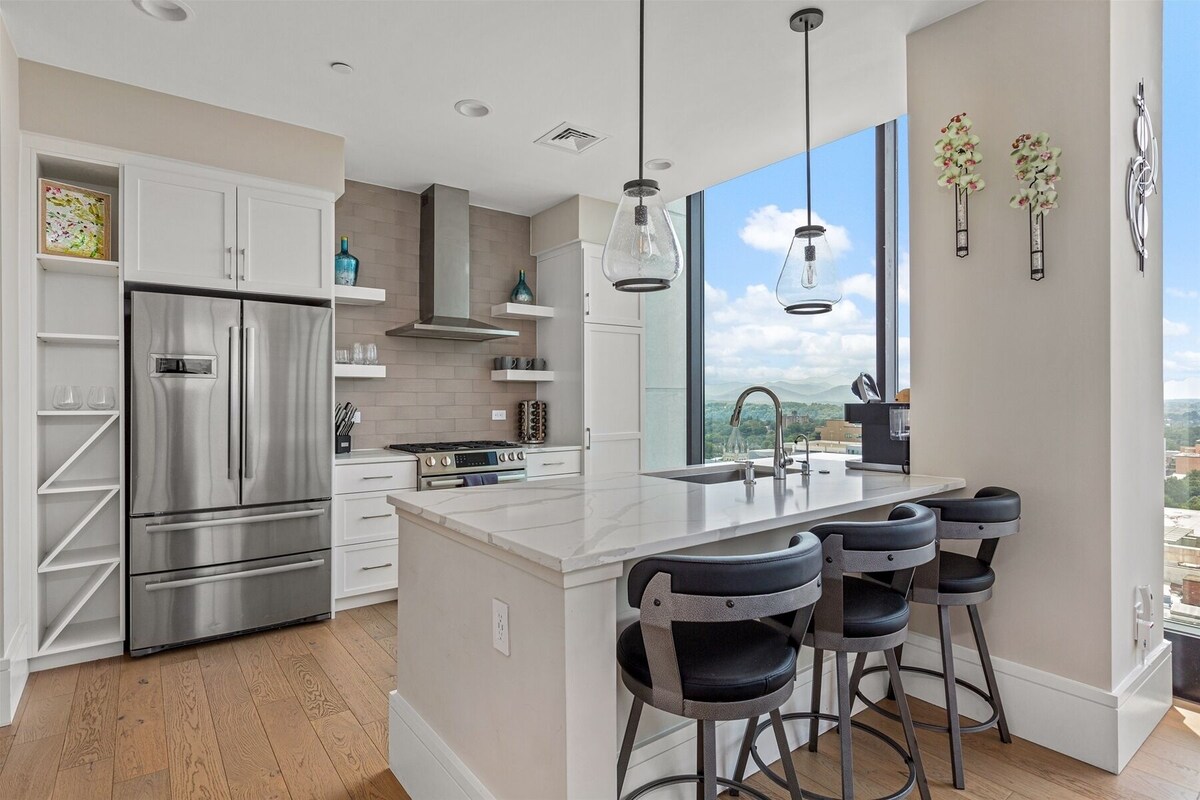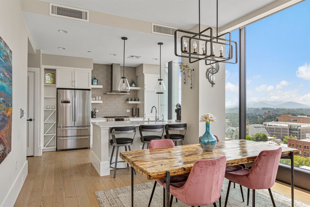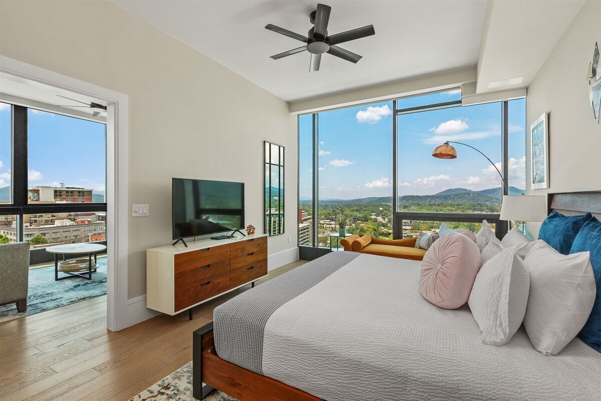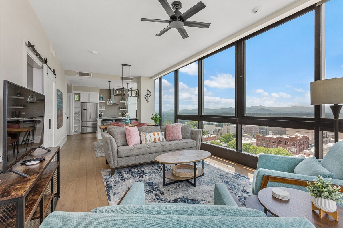 Enjoy 15% Off Your Stay! Save 15% on any stay booked from now until October 31, 2025, for stay dates through October 31, 2025. No promo codes, no extra steps—the discount is already built into the price you see. Just book and save! If you are looking to break free of your daily routine and explore all that Asheville has to offer, make a run for Blue Ridge Escape. This west-facing one-bedroom, one-bath condo with 120-degree skyline views of the Blue Ridge Mountains in the heart of downtown Asheville and comes fully equipped with all the comforts of home. As you walk through the front door, you will be met with an awe inspiring view of the Blue Ridge Mountains and an open concept kitchen and breakfast bar overlooking the dining space and living room. The kitchen, which is perfect for entertaining, features all the amenities you could ask for, including a refrigerator/freezer, five-burner gas range, microwave, dishwasher, Keurig K-Duo coffee maker, electric tea kettle, toaster, and blender. Below the sink you will find an initial stock of dish soap, dishwasher detergent, Finish dish rinse, along with trash bags, recycling bags and paper towels. To help give you a taste of Asheville, we’ve stocked your coffee station with a small supply of local coffee and tea from Dynamite Roasting Co and Asheville Tea Company. The dining table seats four, providing ample space to work remotely or connect over dinner. In addition to the dining table, Blue Ridge Escape also seats three at the breakfast bar. The living room has a sleeper sofa for two, and two accent chairs, providing a romantic haven to snuggle with your significant other or furry friend and witness the sunset with your favorite evening beverage in hand. For entertainment, enjoy a 55” cable TV and 500+ Mbps high speed wi-fi to stream your favorite binge worthy shows. Blue Ridge Escape features a sliding glass window in the living room which opens, allowing in fresh mountain air and unobstructed views of the city and mountains beyond - a perfect way to wake up in the morning and wind down in the evening. Off the living room is a separate bedroom where you will find a comfortable King bed complete with linens, a chaise lounge for reading or regarding the sweeping views of north Asheville and the mountains beyond, and a 55” cable TV. An additional set of linens for the bed and the sleeper sofa are stored in the bedroom closet along with an extra blanket. Enjoy a good night’s sleep courtesy of the white noise machine next to the bed with a range of relaxing sounds and noise volumes to choose from. The bathroom, which is located off the bedroom, is where you will find a variety of complimentary amenities including shampoo and conditioner, lotion, hand soap, cotton balls and swabs, hair dryer, towels, facial tissue, and toilet paper. The toilet room is closed off from the rest of the bathroom allowing for extra privacy. Also located off the bathroom is a stacked washer and dryer including an initial stock of free and clear laundry pods. Blue Ridge Escape is located on the 10th floor of the Arras Building, just an elevator ride away from an array of Asheville’s award-winning breweries and restaurants. Don’t forget to visit the many boutique shops and local artists that truly makes Asheville exceptional during your stay. Blue Ridge Escape is pet-friendly with guests permitted to bring a maximum of two pets. There is a non-refundable $150 one-time pet fee. Additionally, long-term stays are welcome at Blue Ridge Escape. Access After you book your stay in Blue Ridge Escape, you will receive a confirmation email and a text message. Our lease agreement will be sent to you separately via Adobe Sign for easy completion. We require this to be signed and returned before we release the access code to the lockbox outside of the condo with the keys. The access code will be texted to you the evening prior to your arrival. These text messages will include a link to our digital guidebook of Asheville and a property guide for the condo. This guide was compiled by our team with information and recommendations from locals created to help you get the most out of your visit to Asheville, as well as housekeeping items like building information, how to access the valet deck, and arrival and departure instructions. We welcome you to save that phone number and use it to easily communicate with us surrounding any questions or comments regarding your stay. Parking When you book your stay at Blue Ridge Escape, one of the convenient amenities we offer is valet parking at just $32 a night. You will have full access to come and go as you please. You also have the option to self-park in the city. If you are ride sharing into town, please let us know after booking so we can remove the parking charge for you. Please note that self-parking in Asheville is always first-come, first-served and the closet parking garage is right across the street at 16 Broadway Avenue, attached to the AC hotel. Valet parking does have access to electric car charging stations; please inform the valet team upon arrival of the need to charge your vehicle. There is an additional cost to use the charging station which ranges from $10-$20. Building Amenities Included in your stay at Blue Ridge Escape is access to the building’s gym, which is located on the 3rd floor of the building. The gym is fully outfitted with Peloton bikes, leading edge treadmills, rowing machines, rogue strength and conditioning equipment, and space for yoga and stretching. To reset your muscles or to relax on your vacation, schedule an appointment at our in-house massage room, Urban Exhale Massage, conveniently located next to the gym on the 3rd floor. Please note, massage services are not included in the cost of your booking. With amazing views, access to valet parking, our state-of-the-art gym and relaxing massage offerings, we’re here to ensure your time away from home is as relaxing and stress-free as possible. An 